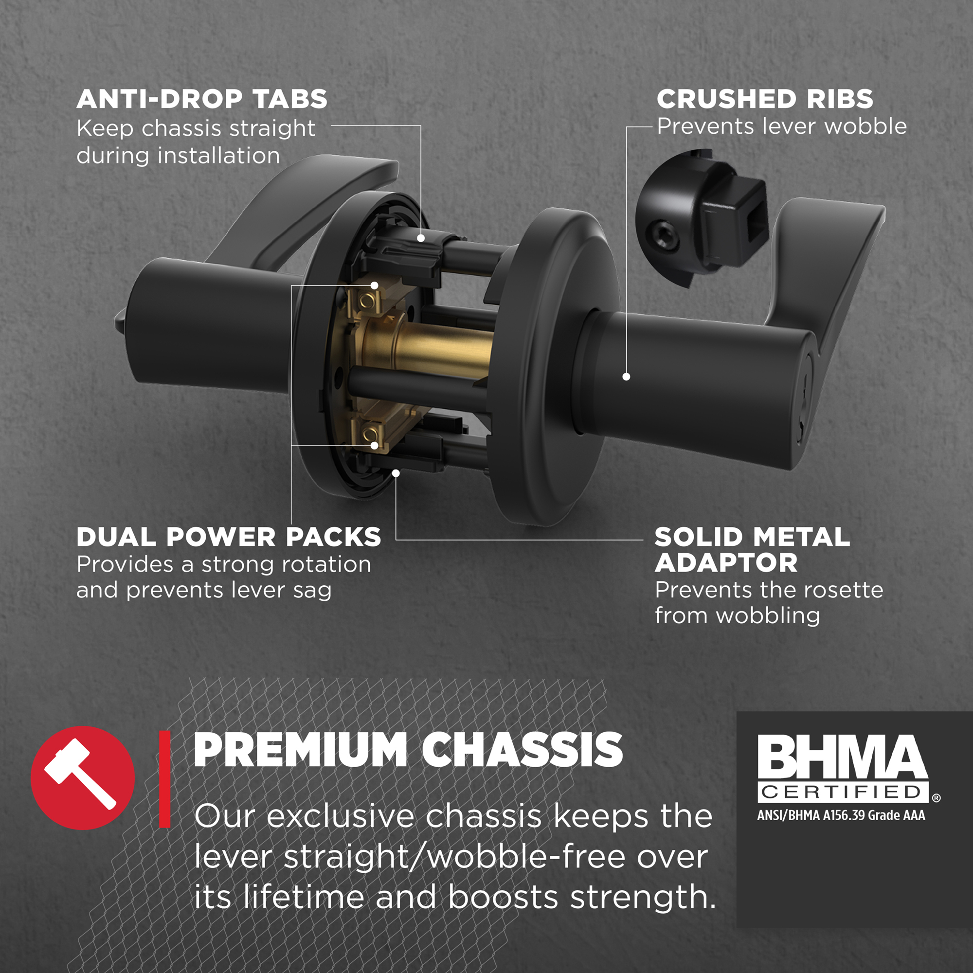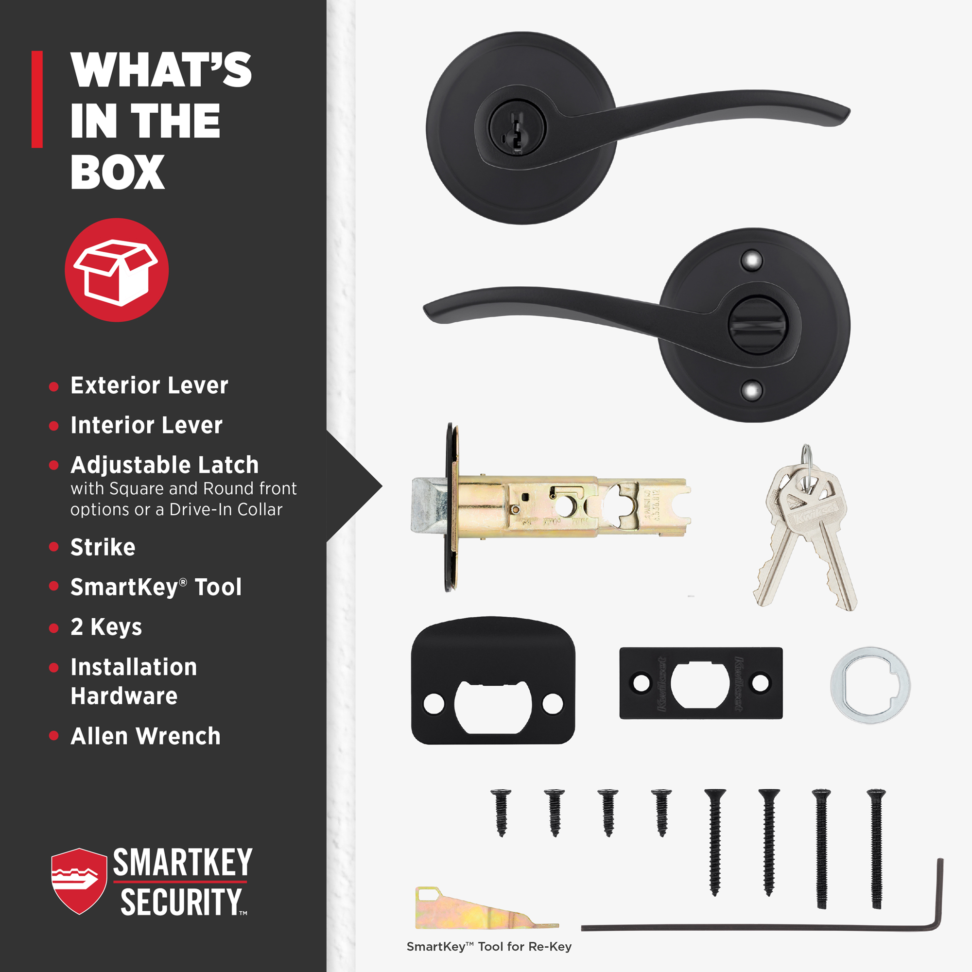Sedona Keyed Entry Door Lever in Matte Black featuring SmartKey Security