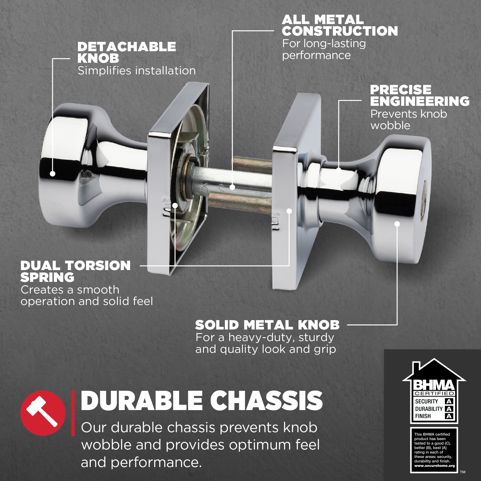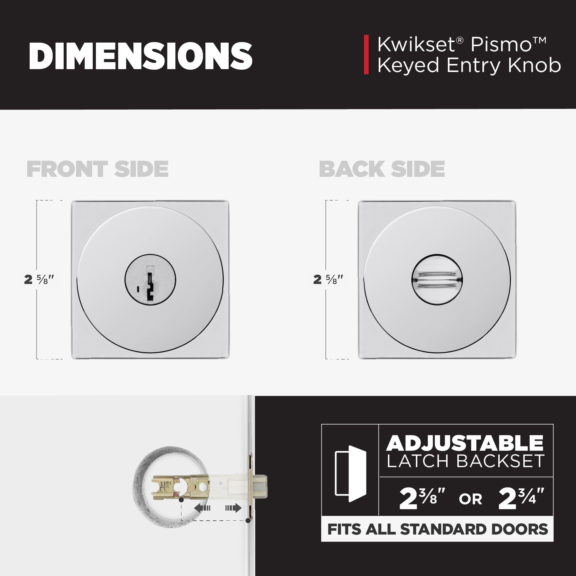 When it comes to contemporary design, Pismo™ door knobs hit the mark with clean lines, smooth surfaces and a sleek, minimalist aesthetic. The square profile adds to the modern look and aligns with today’s design trends. Elevate your space with Pismo™ and turn every door into a chic style statement.