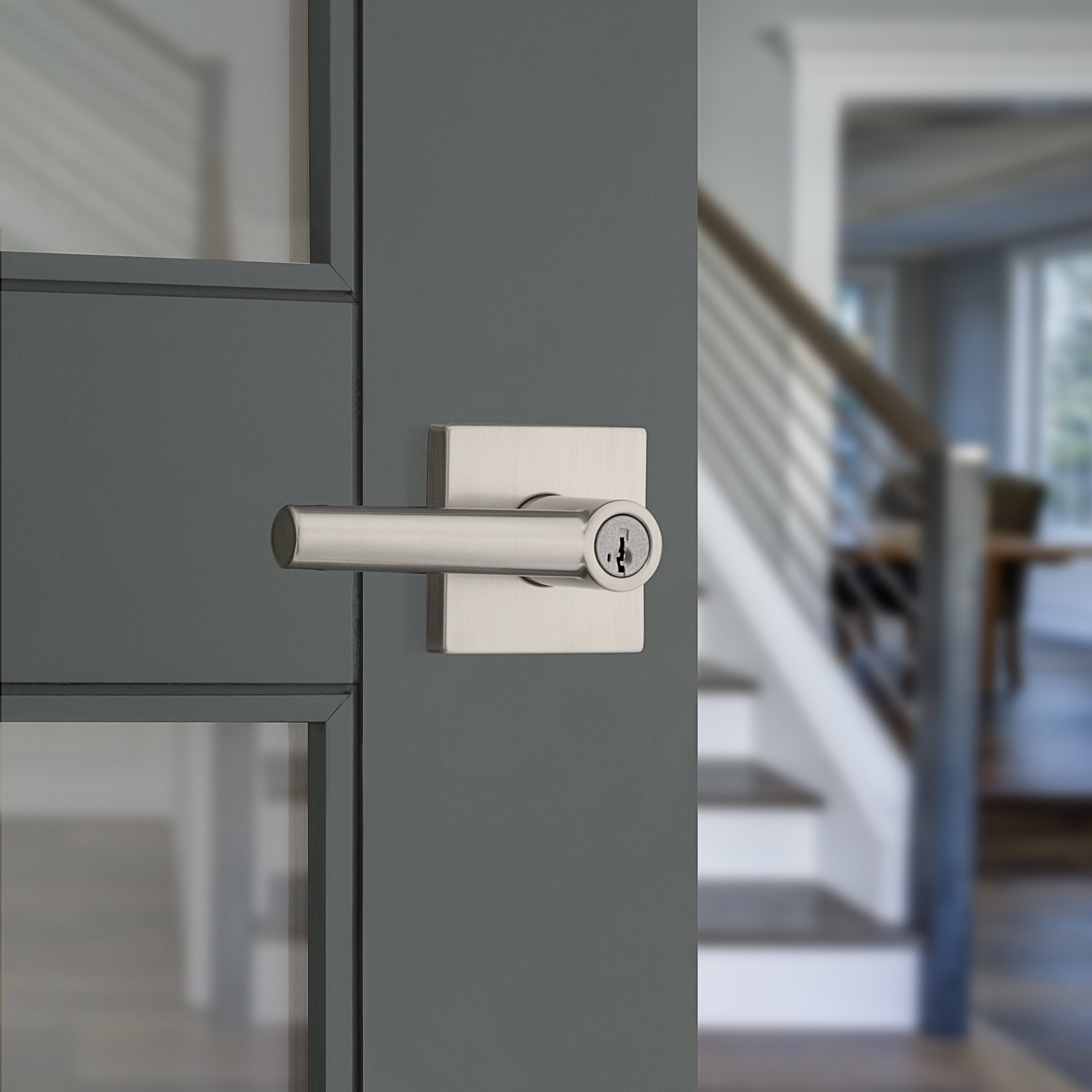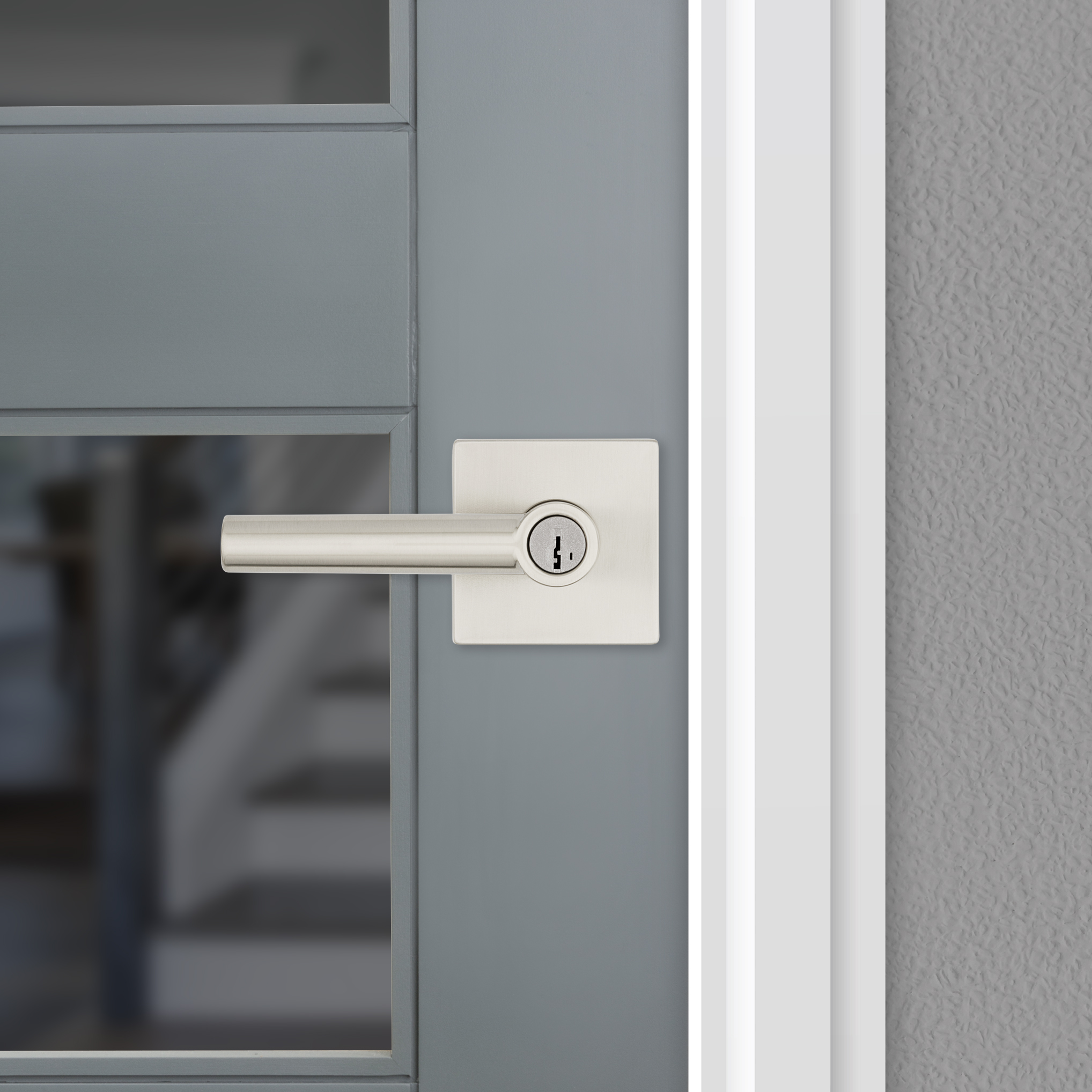 Milan Keyed Entry Lever in Satin Nickel featuring SmartKey Security