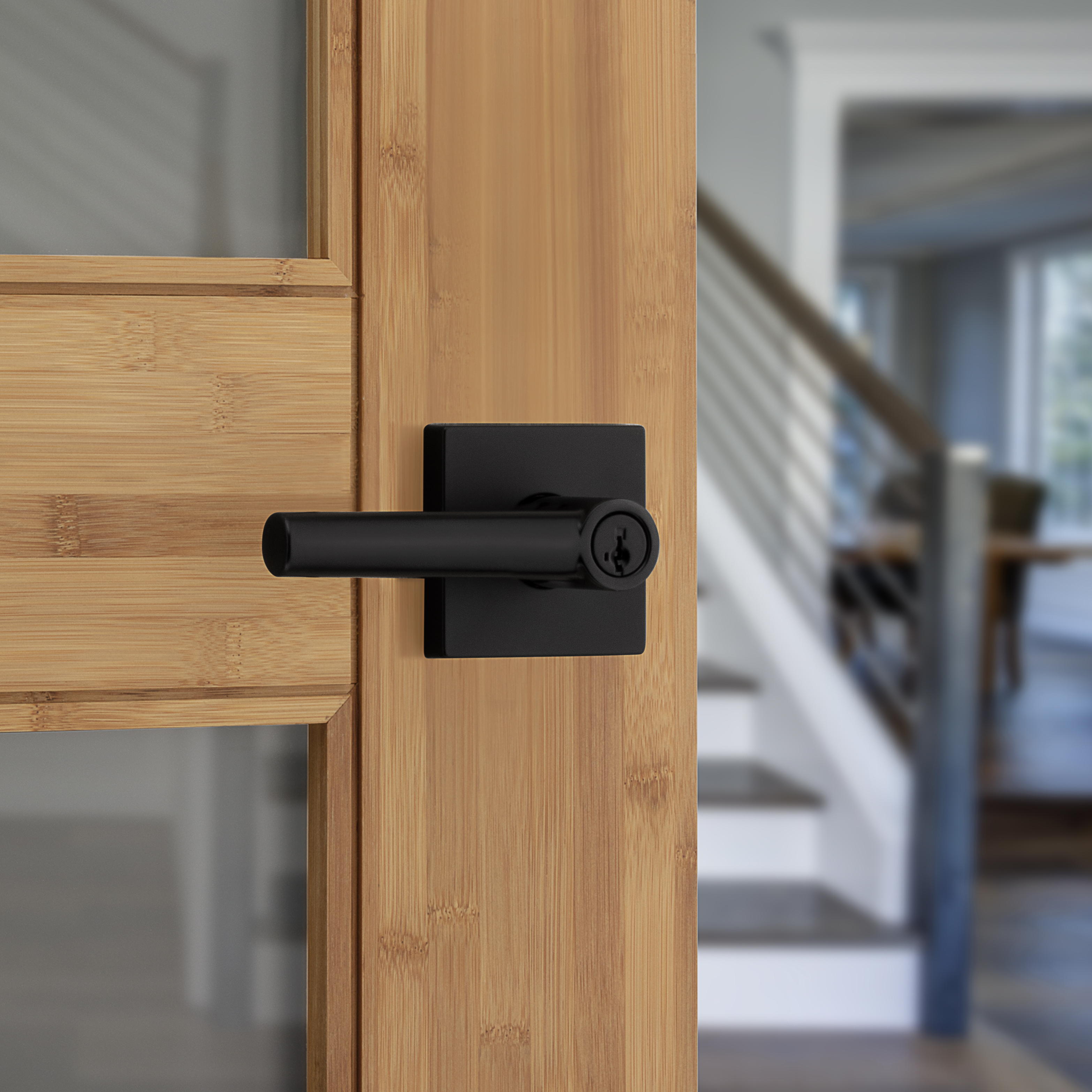 Milan Keyed Entry Lever in Matte Black featuring SmartKey Security