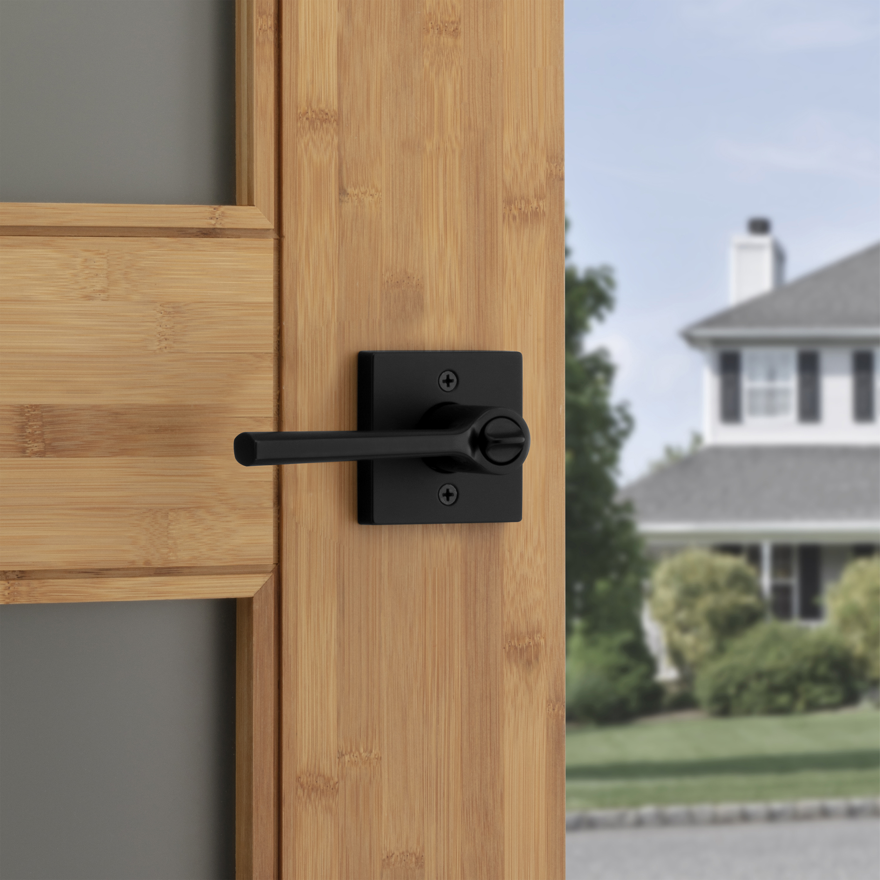 Lisbon Keyed Entry Lever in Matte Black featuring SmartKey Security