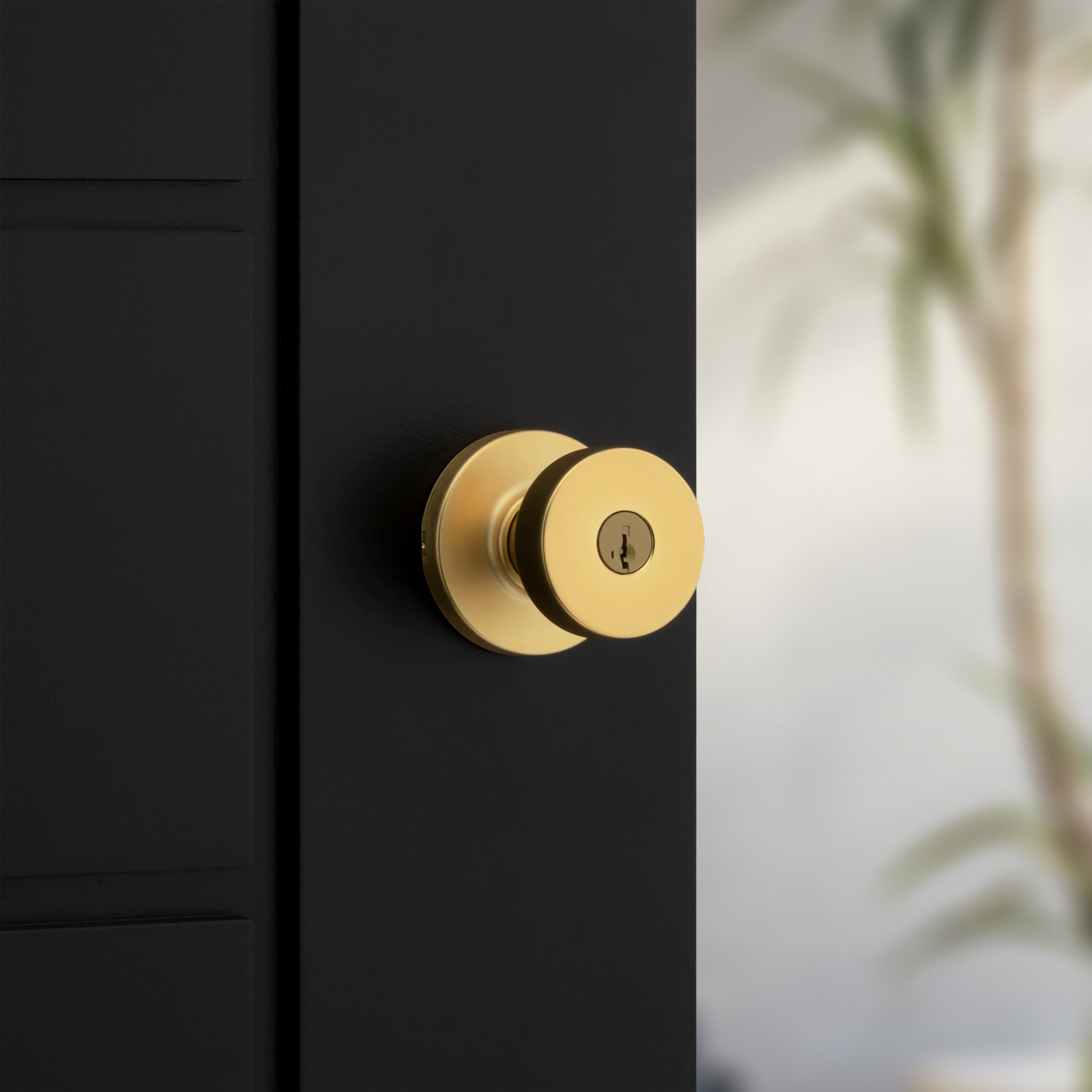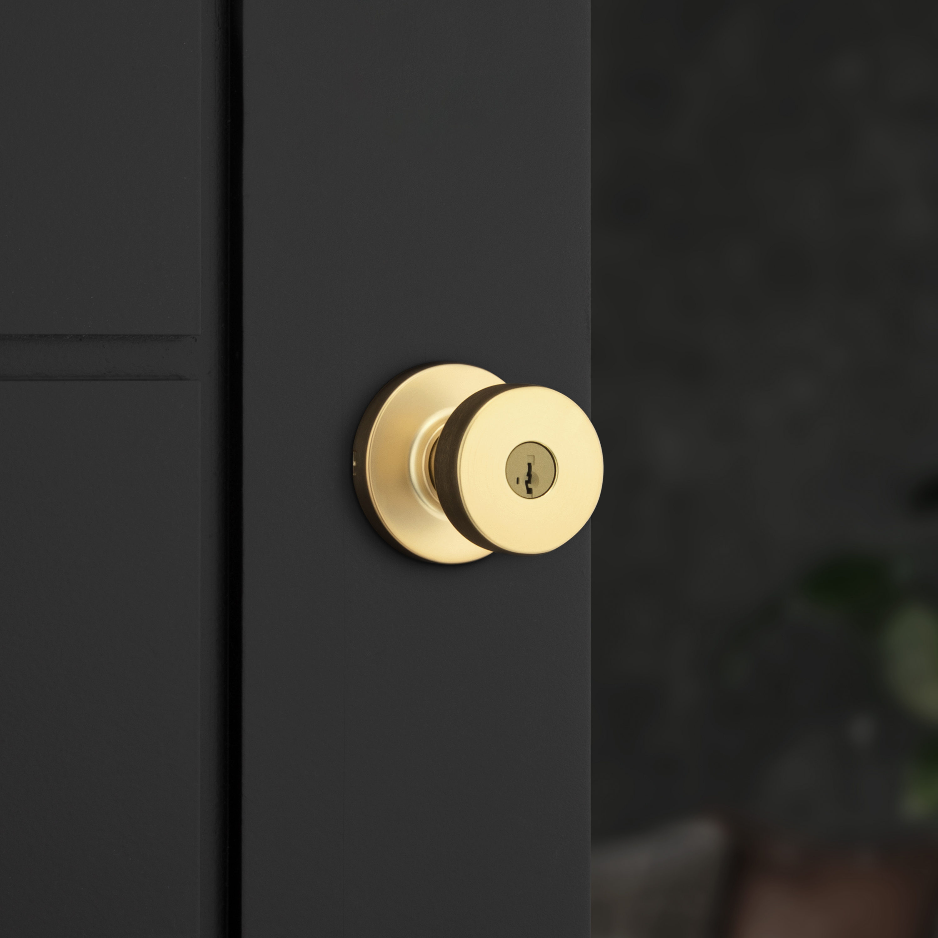 Pismo Round Keyed Entry Door Knob featuring SmartKey Security™ in Satin Brass