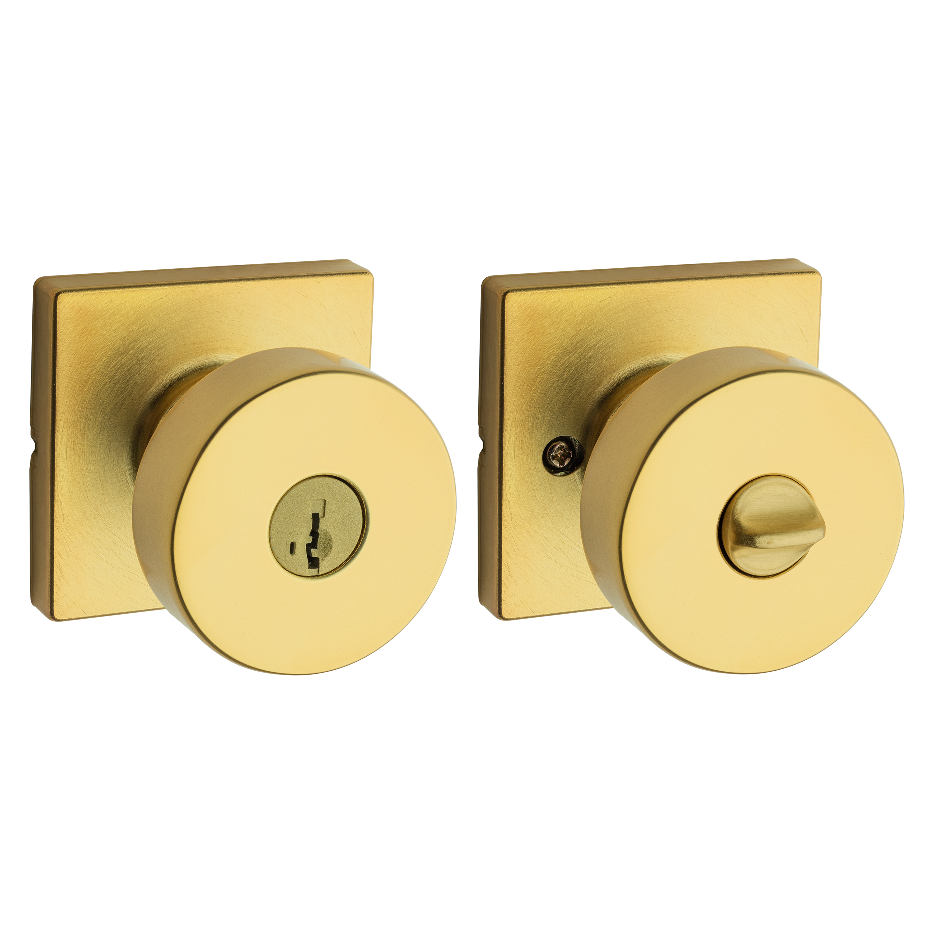 Pismo Square Keyed Entry Door Knob featuring SmartKey Security™ in Satin Brass