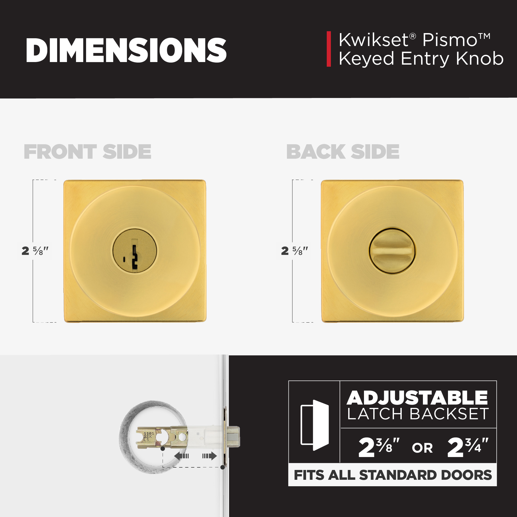 - Fits Standard Doors: Fits standard size doors 1-3/8" to 1-3/4" thick, latch backset adjusts to either 2-3/8" or 2-3/4" with just a twist during installation