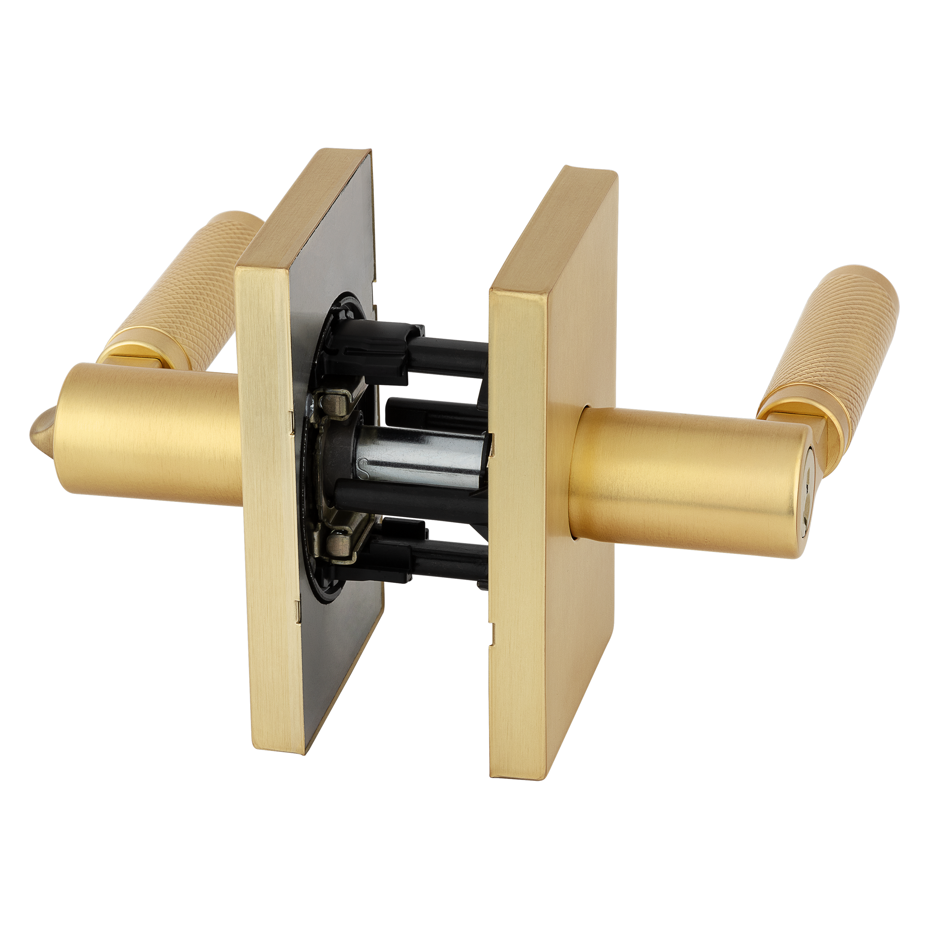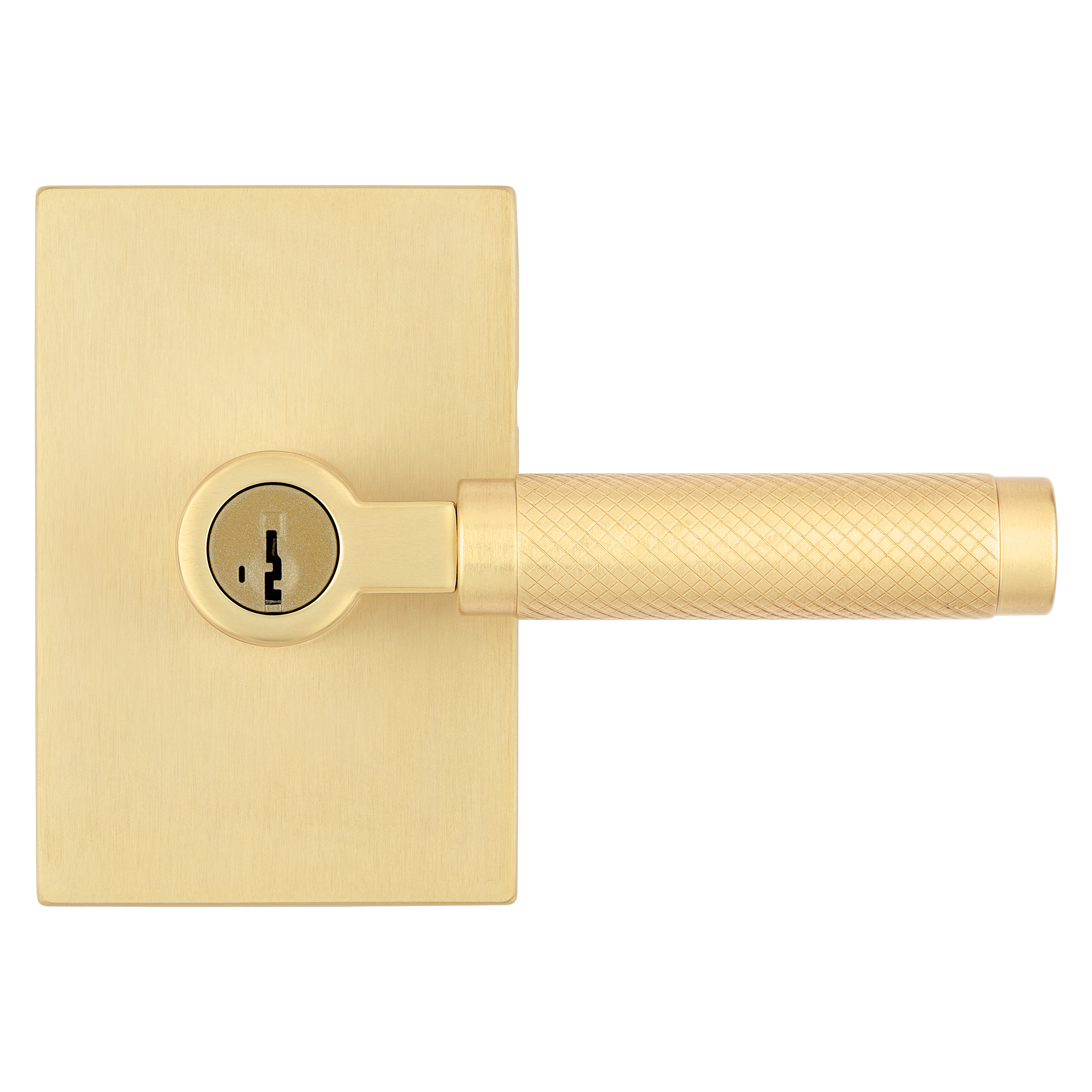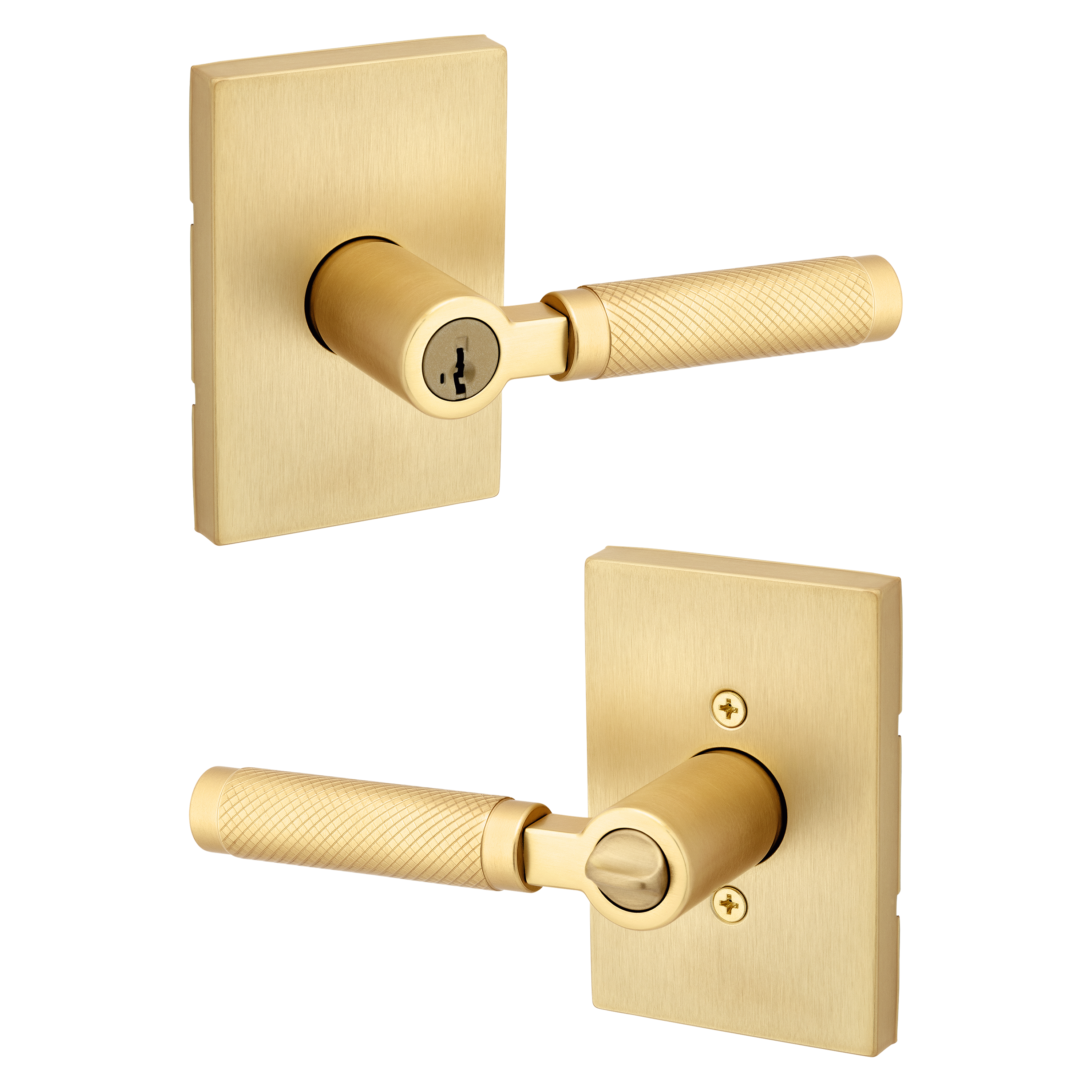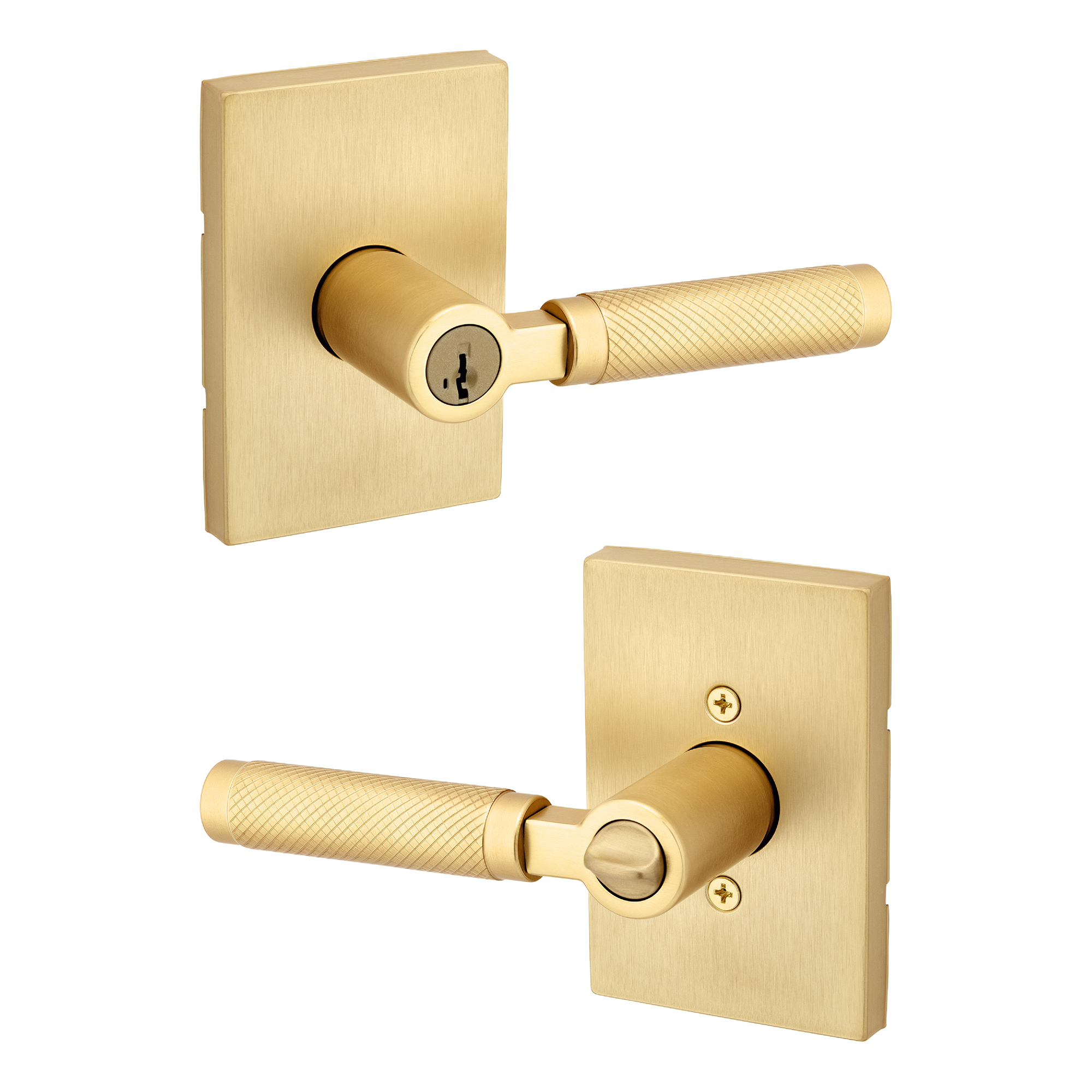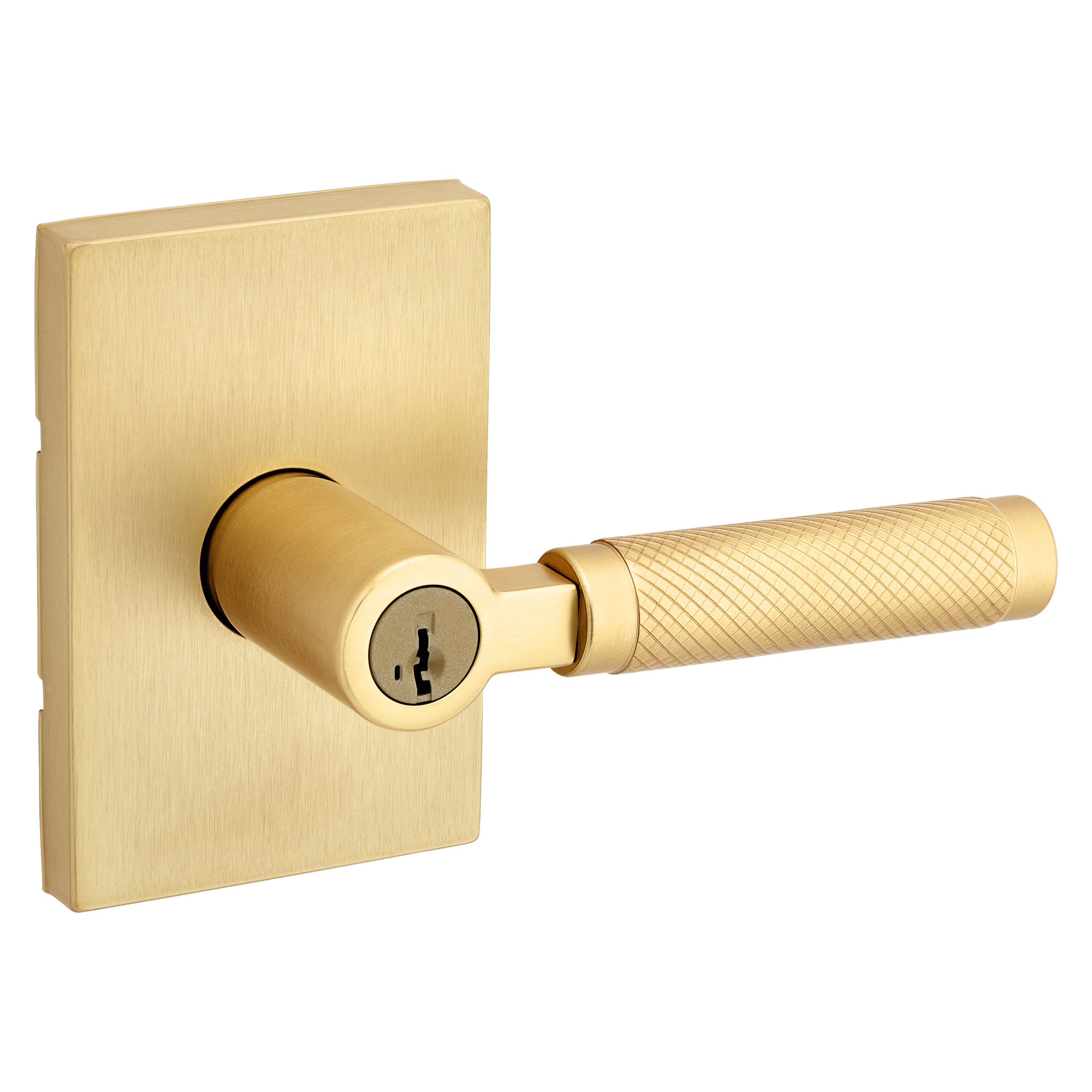 Prava Knurled Keyed Entry Door Lever in Satin Brass featuring SmartKey Security