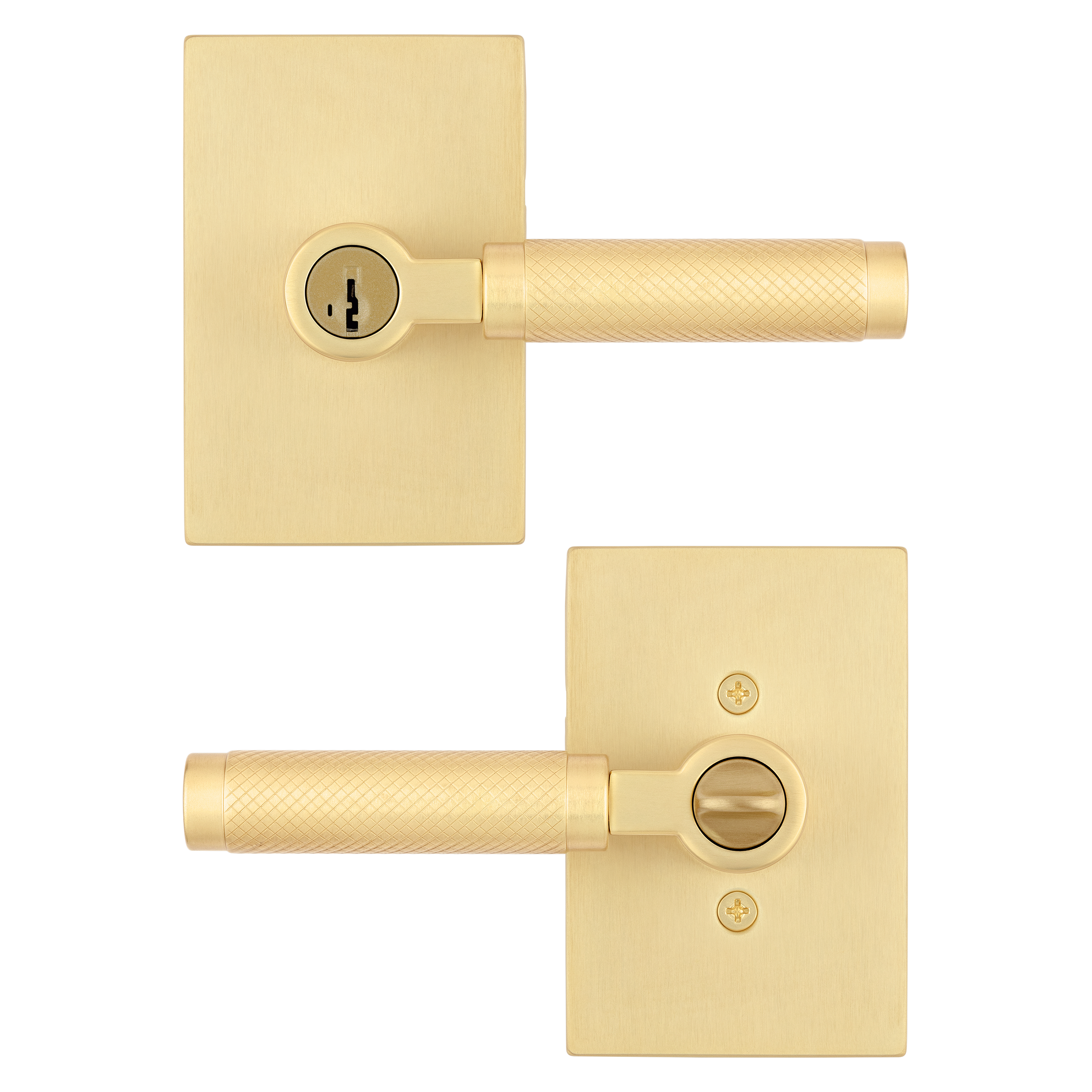 Keyed Entry: Use on doors where extra security is needed, turn piece interior locking, exterior locking using a key. Recommended for exterior-facing doors