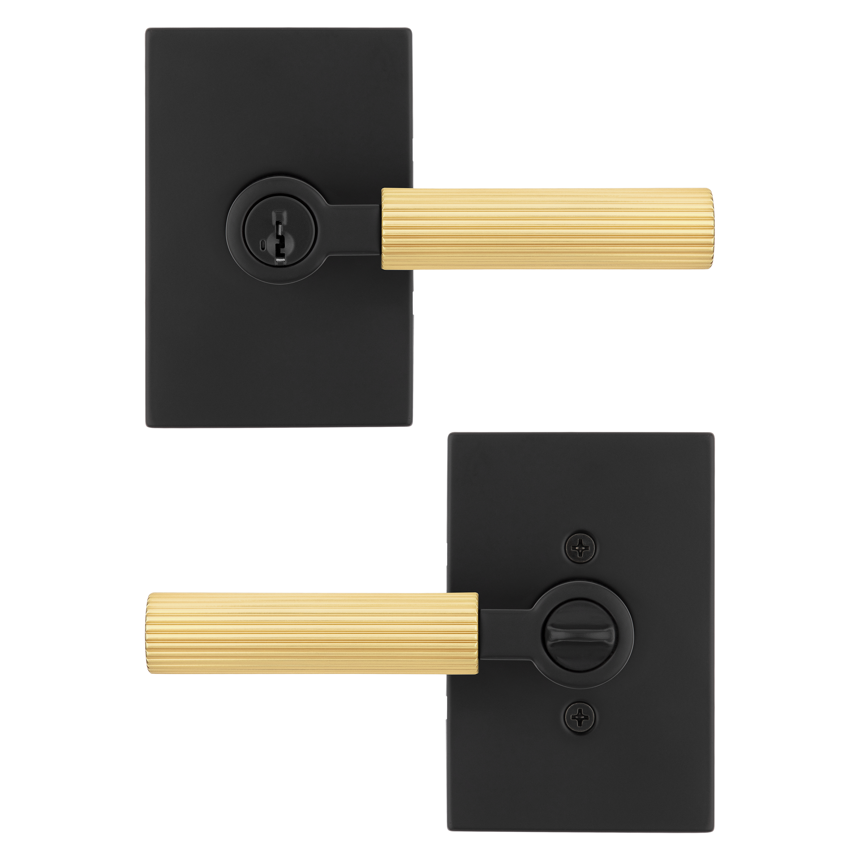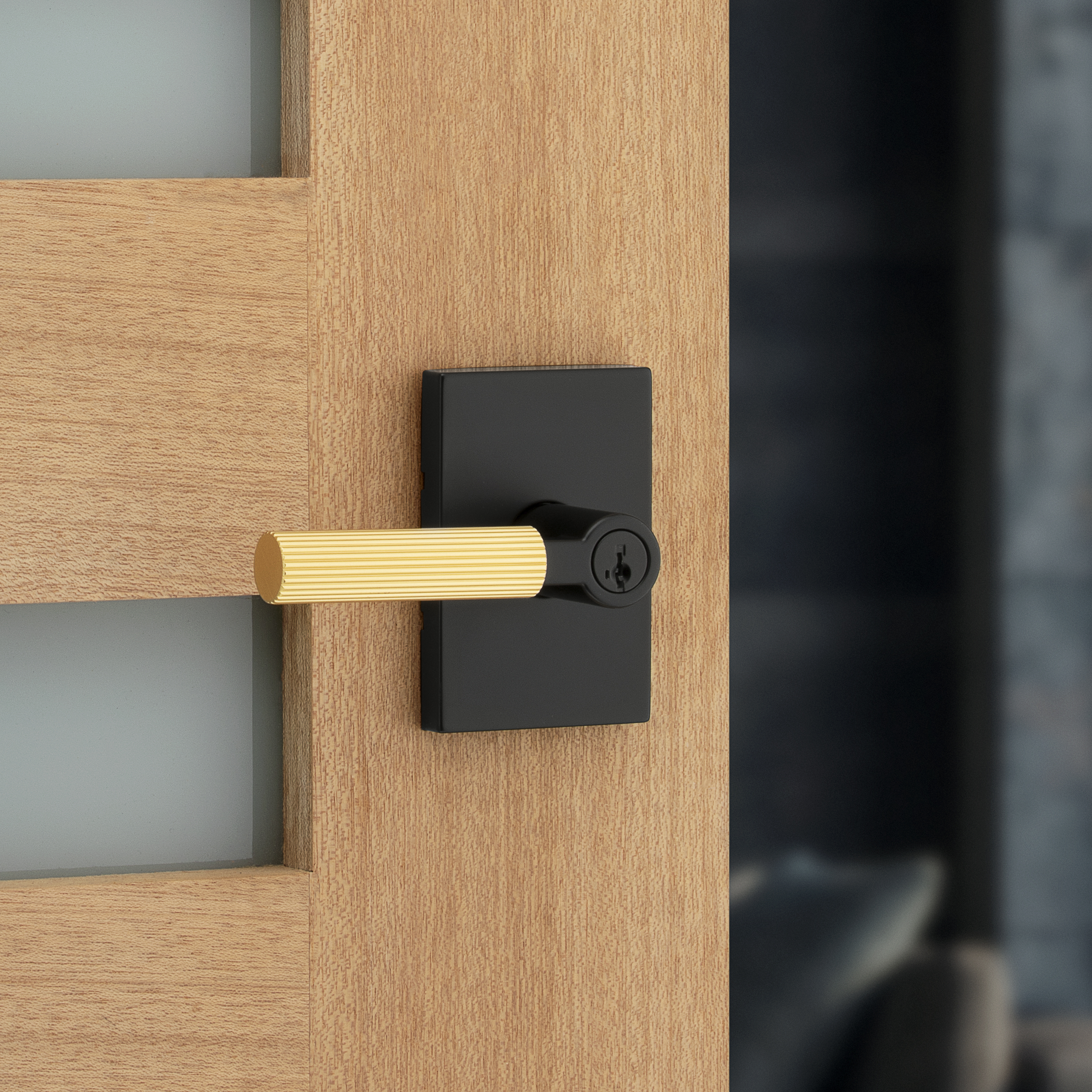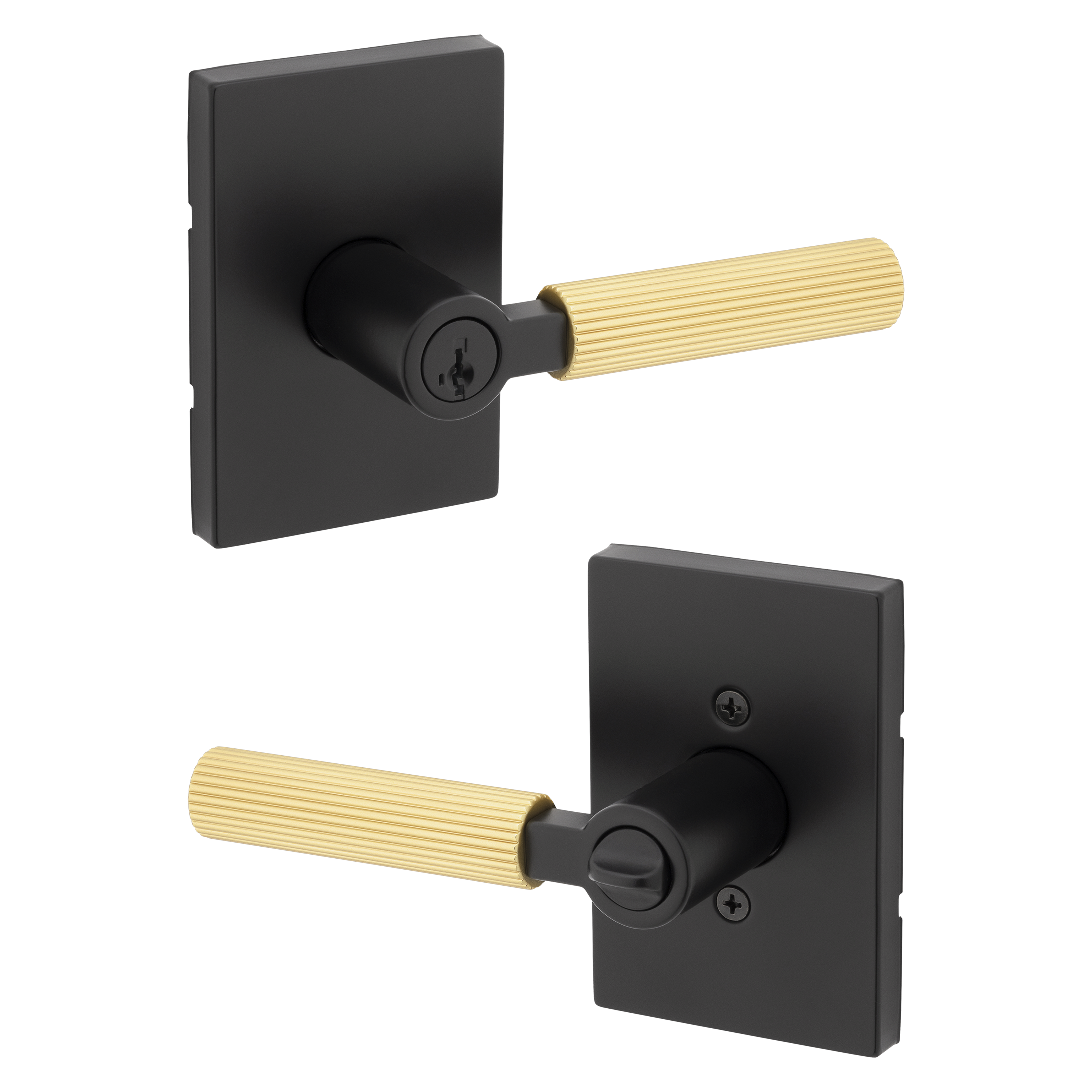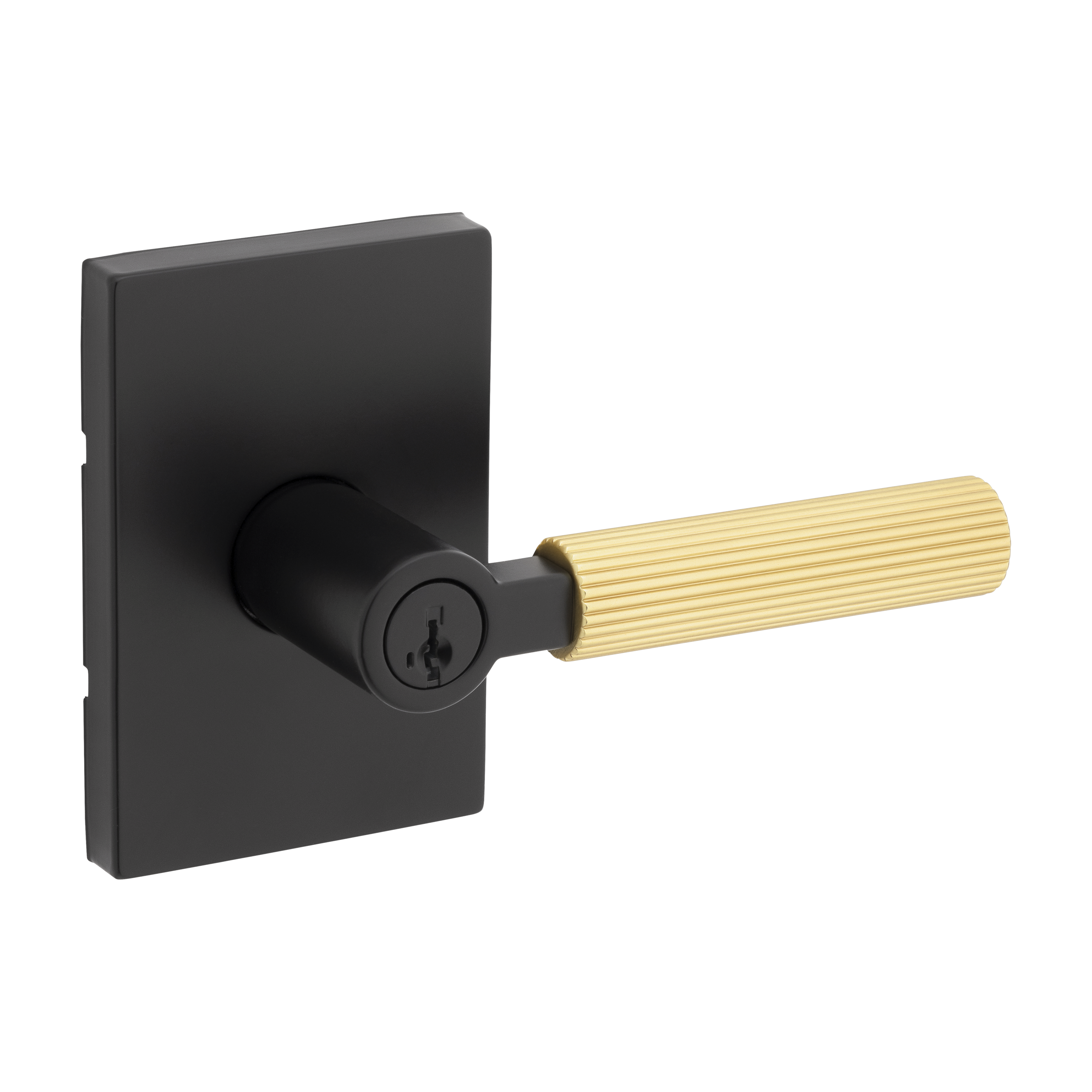 Mirada Reeded Keyed Entry Lever featuring SmartKey Security™ in Matte Black & Satin Brass