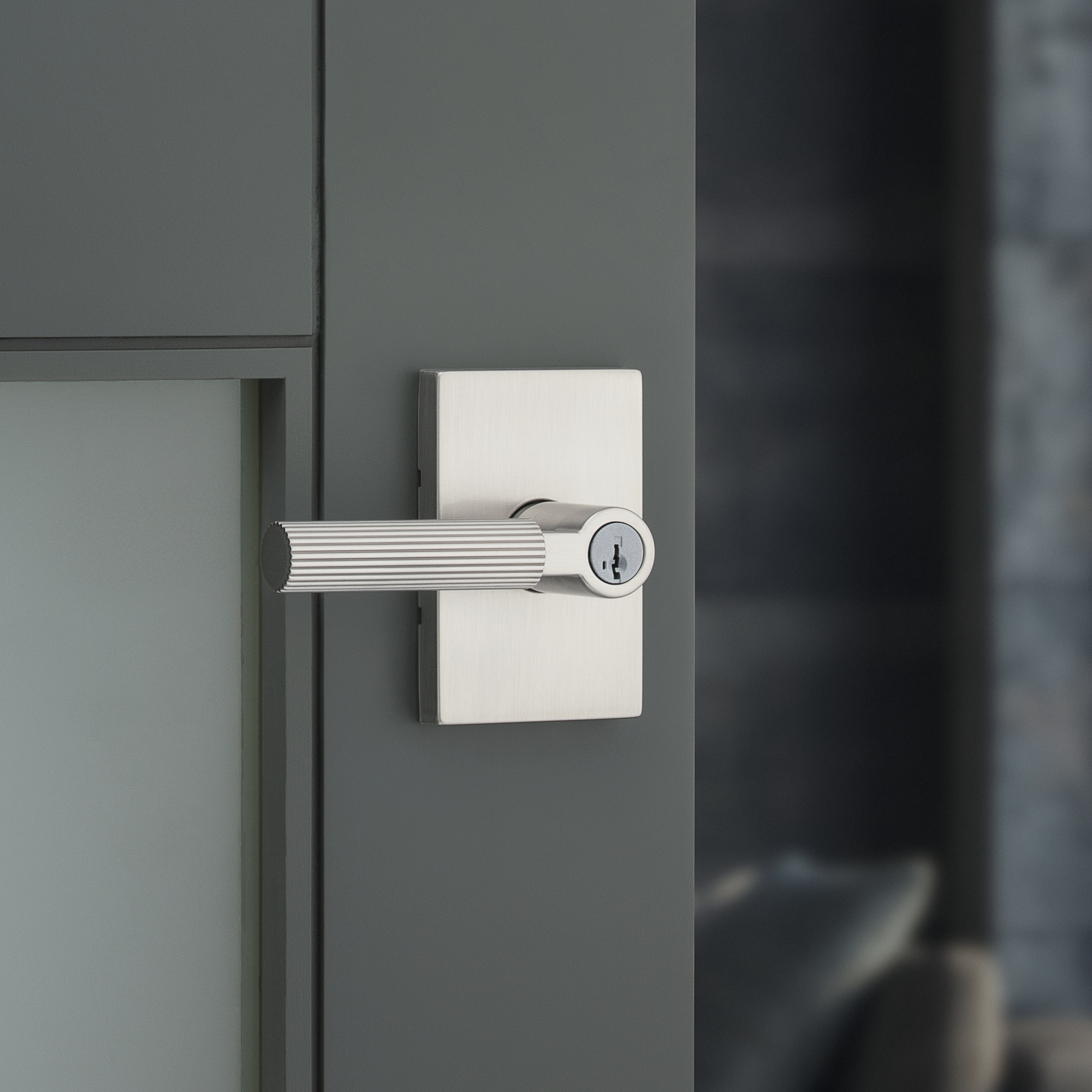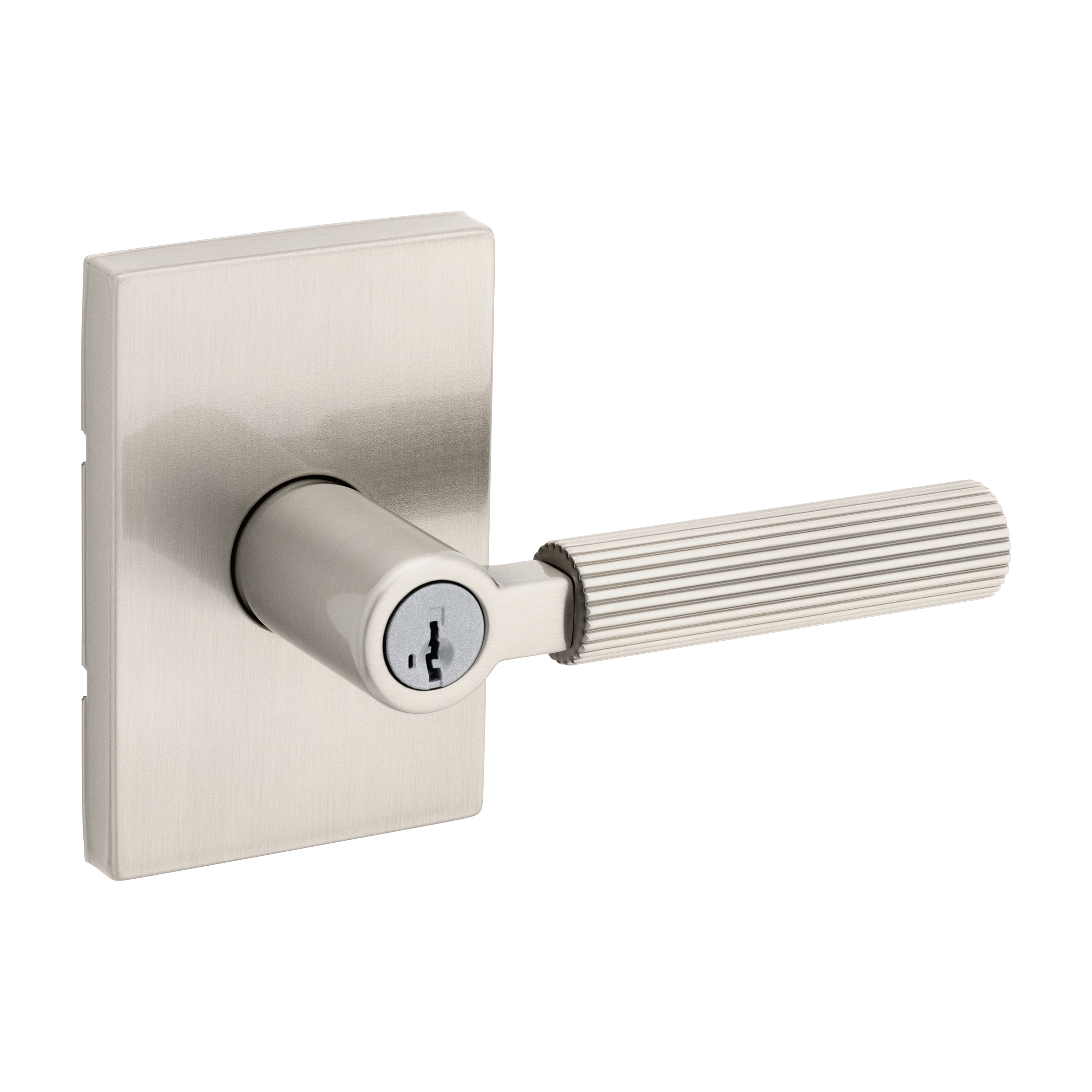 Mirada Reeded Keyed Entry Lever featuring SmartKey Security™ in Satin Nickel