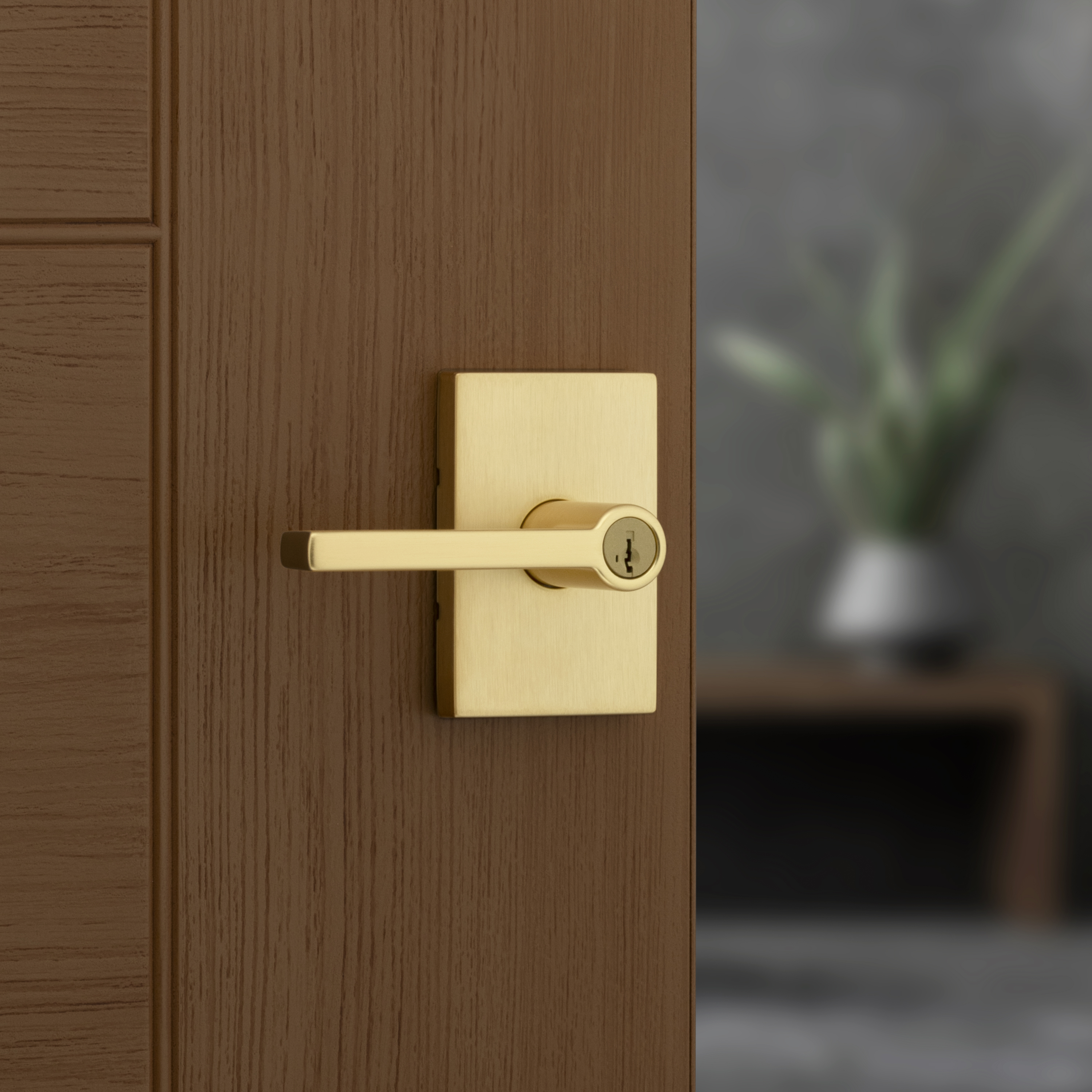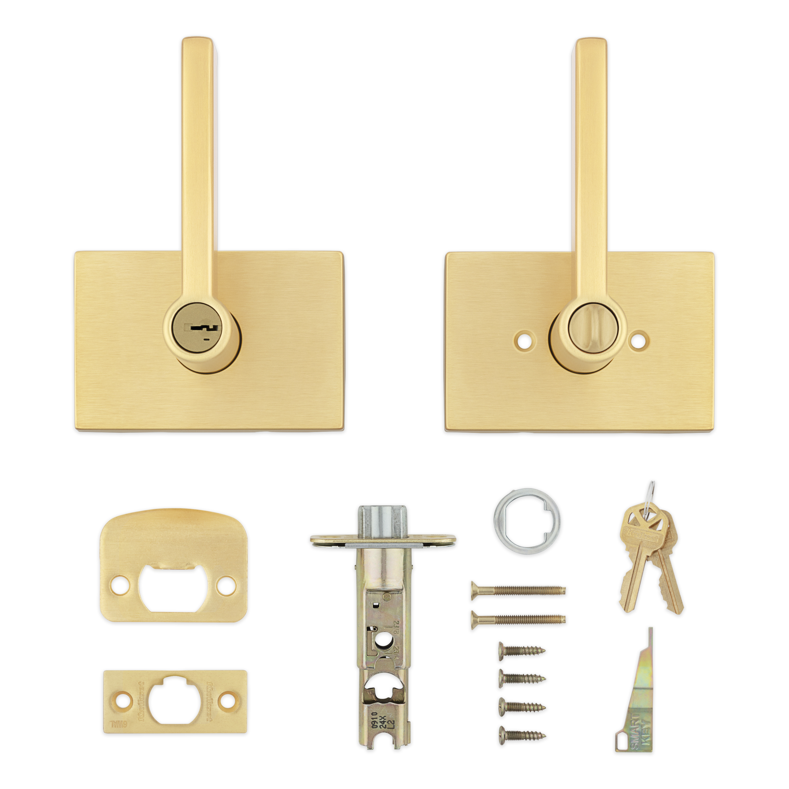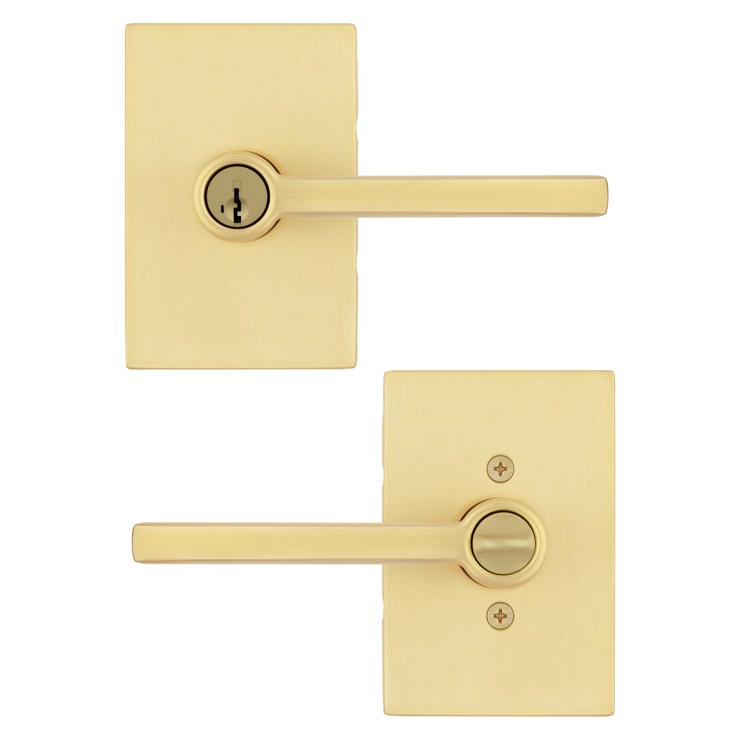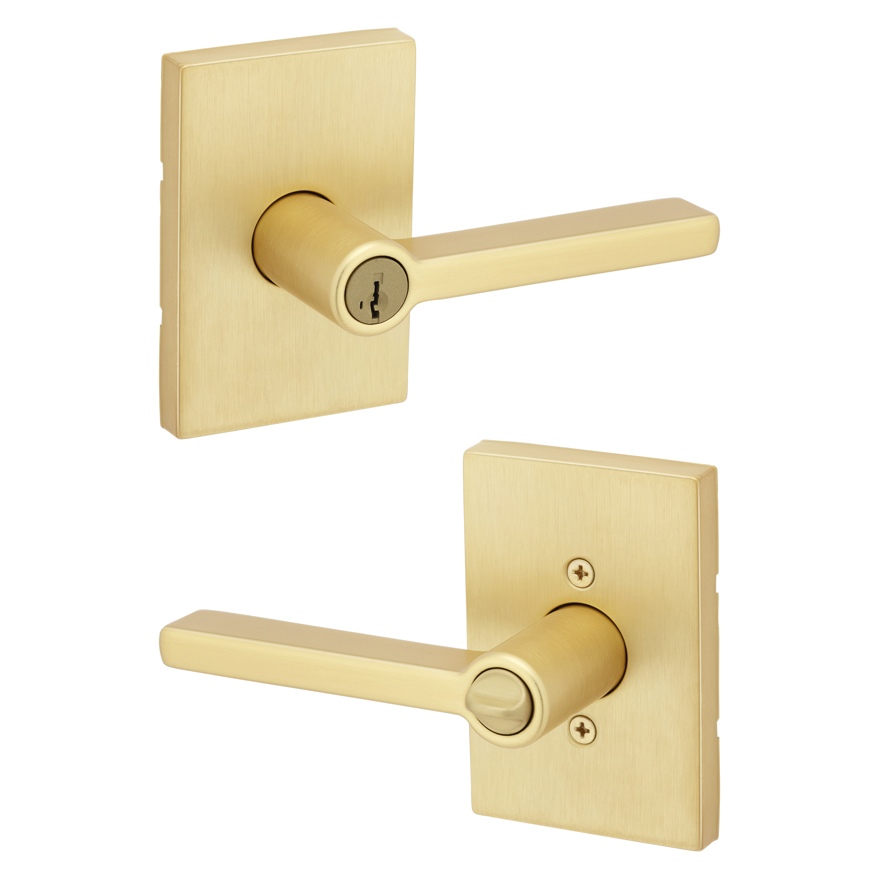 Halifax Keyed Entry Lever in Satin Brass featuring SmartKey Security