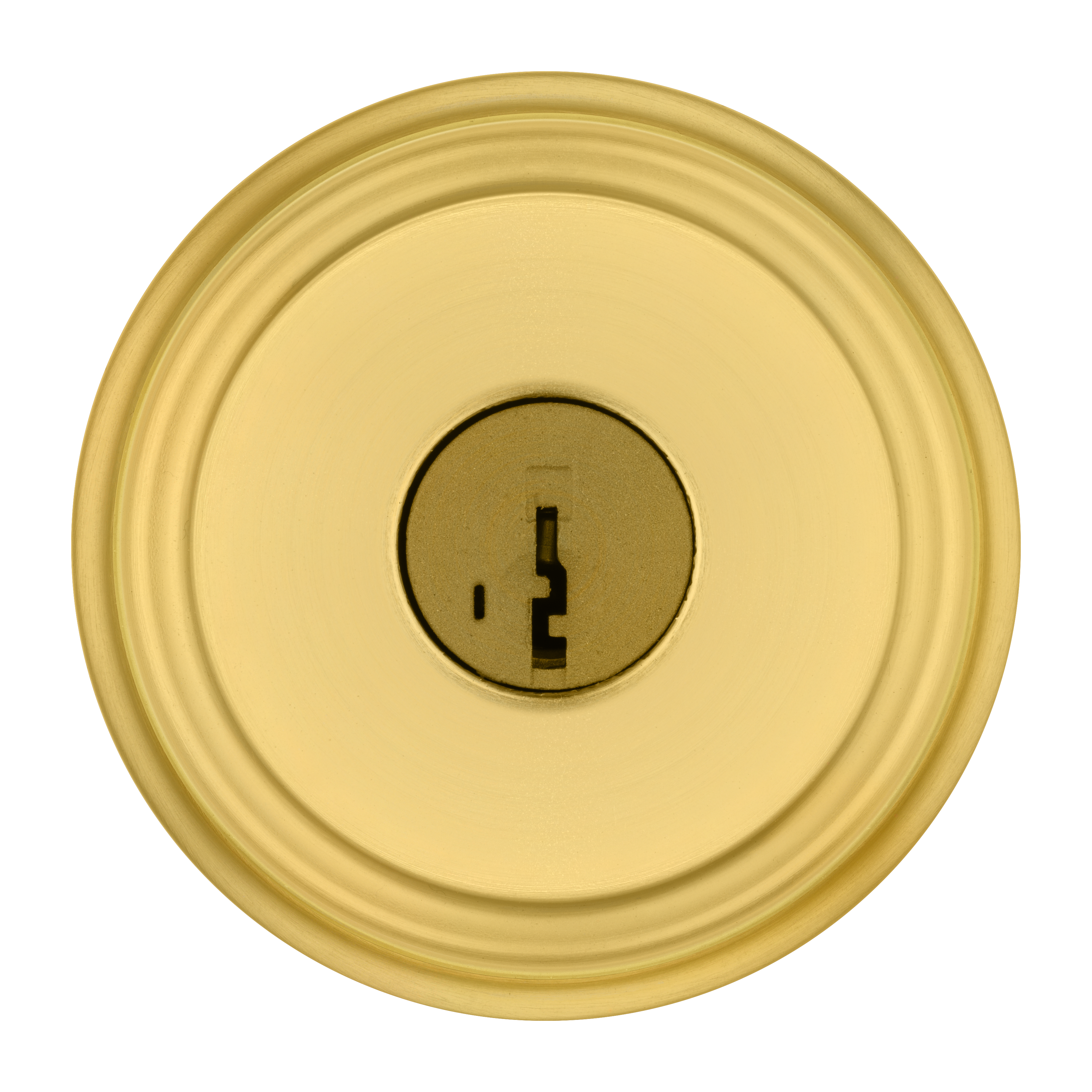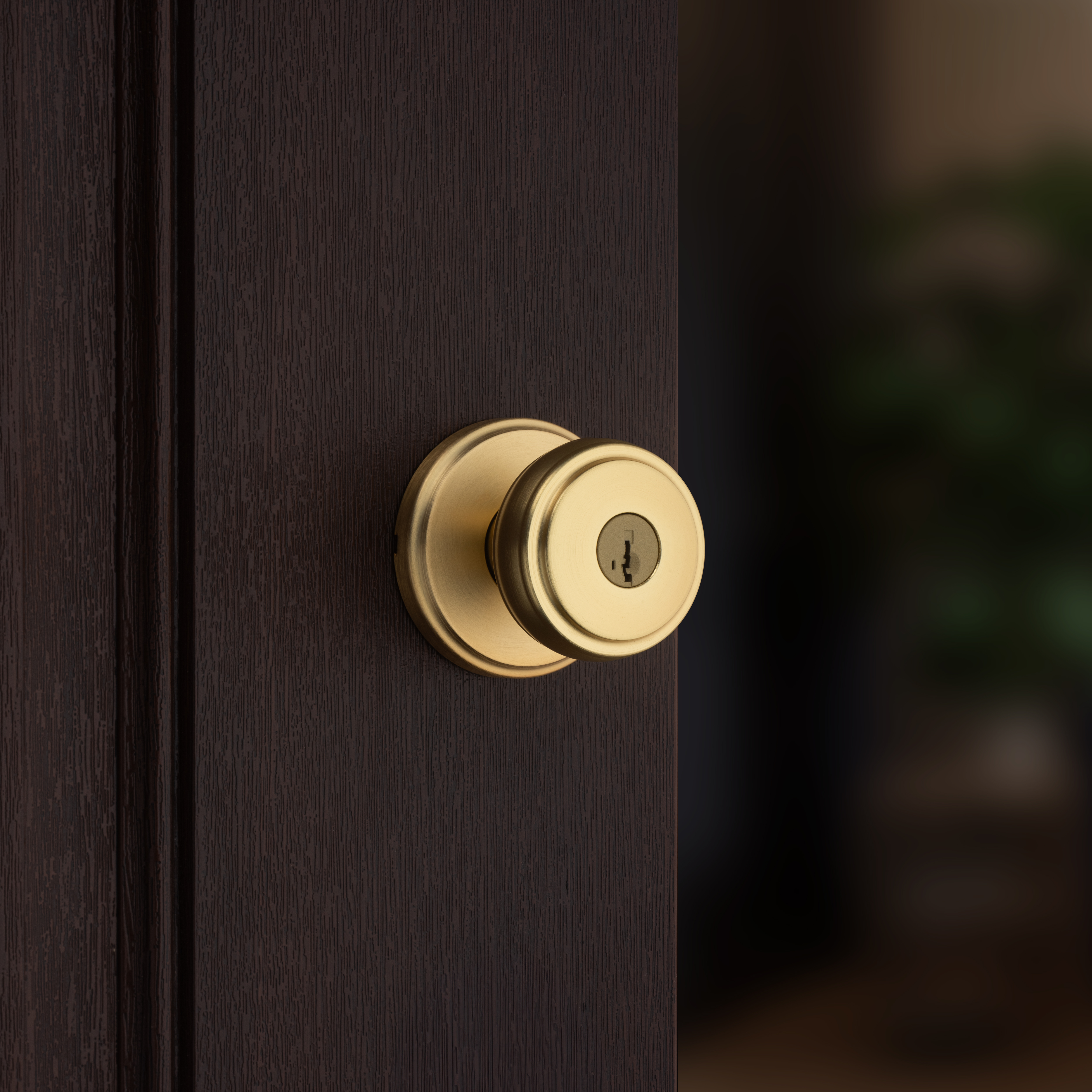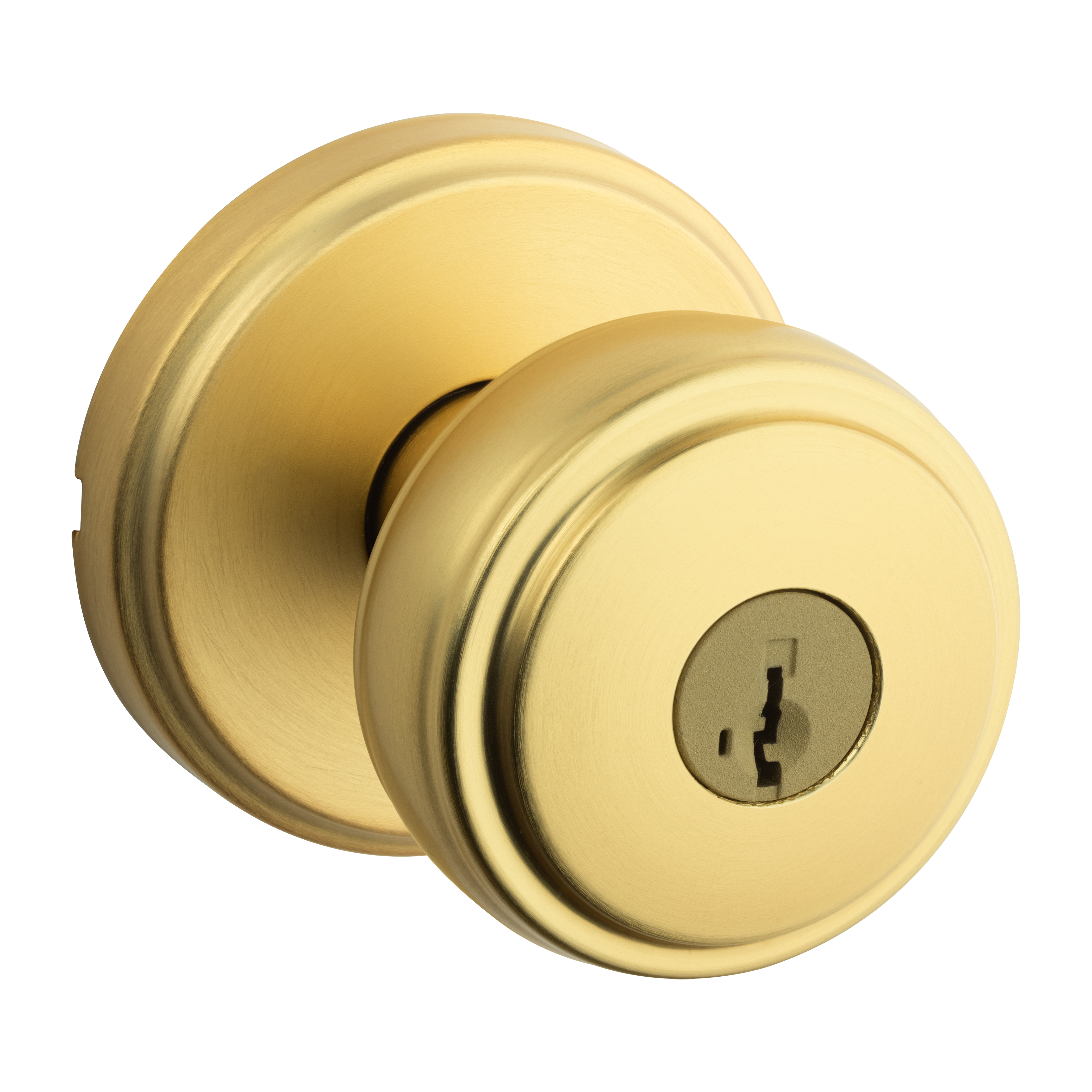 Sora Keyed Entry Knob w/ Round Rose featuring SmartKey Security™ in Satin Brass