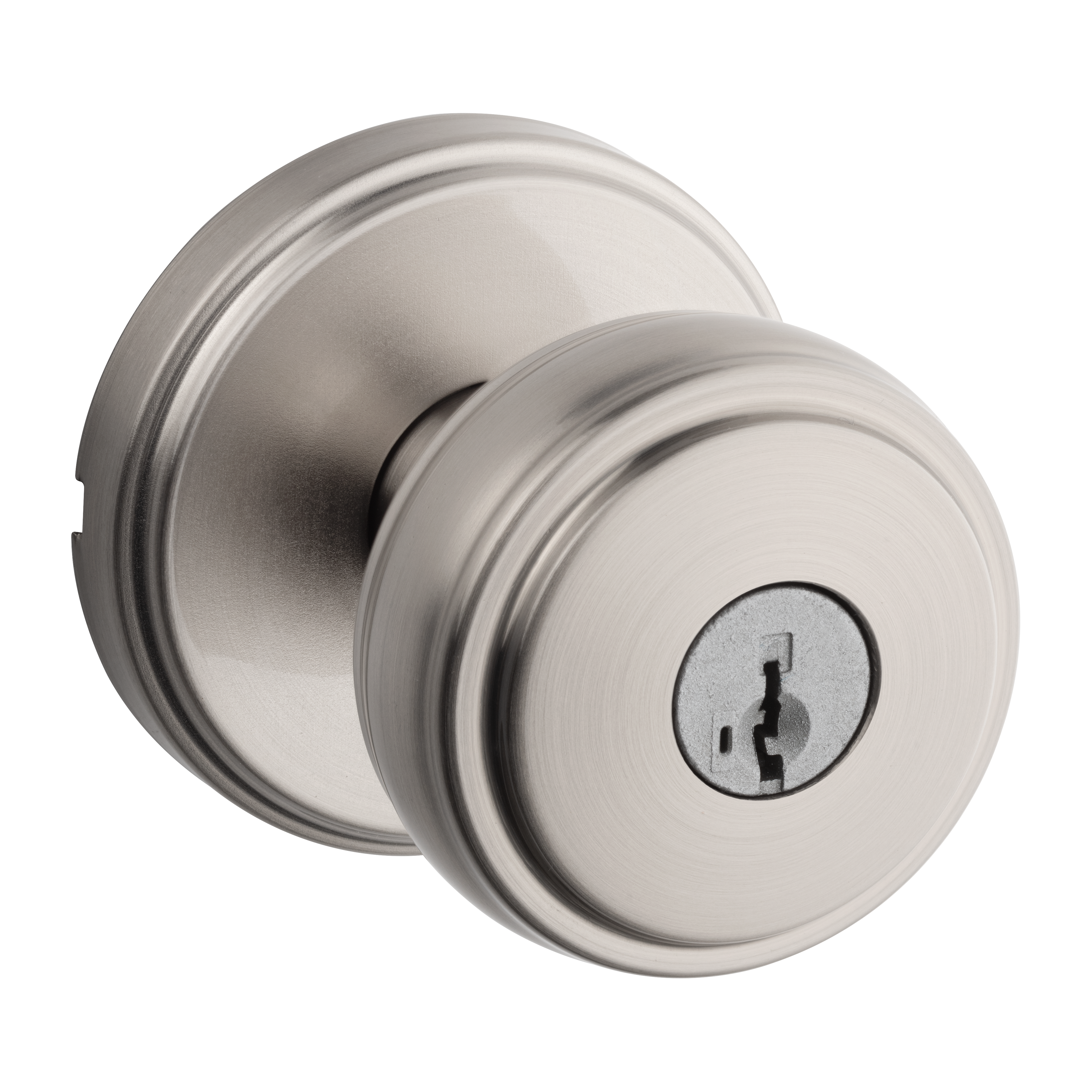 Sora Keyed Entry Knob w/ Round Rose featuring SmartKey Security™ in Satin Nickel