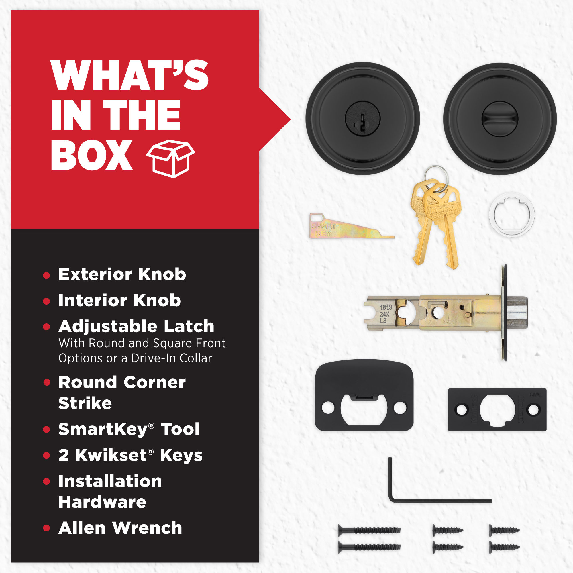 SmartKey Security™ re-key technology is compatible with Kwikset (KW1) keyway or (SC1) keyway options