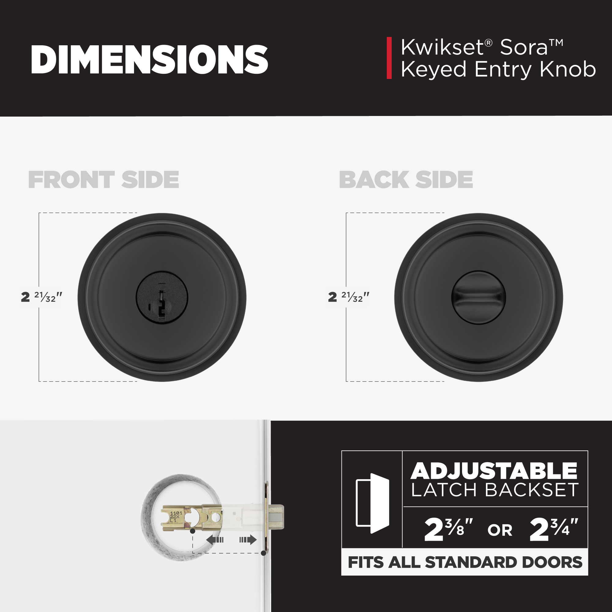 Sora Keyed Entry Knob w/ Round Rose featuring SmartKey Security™ in Matte Black