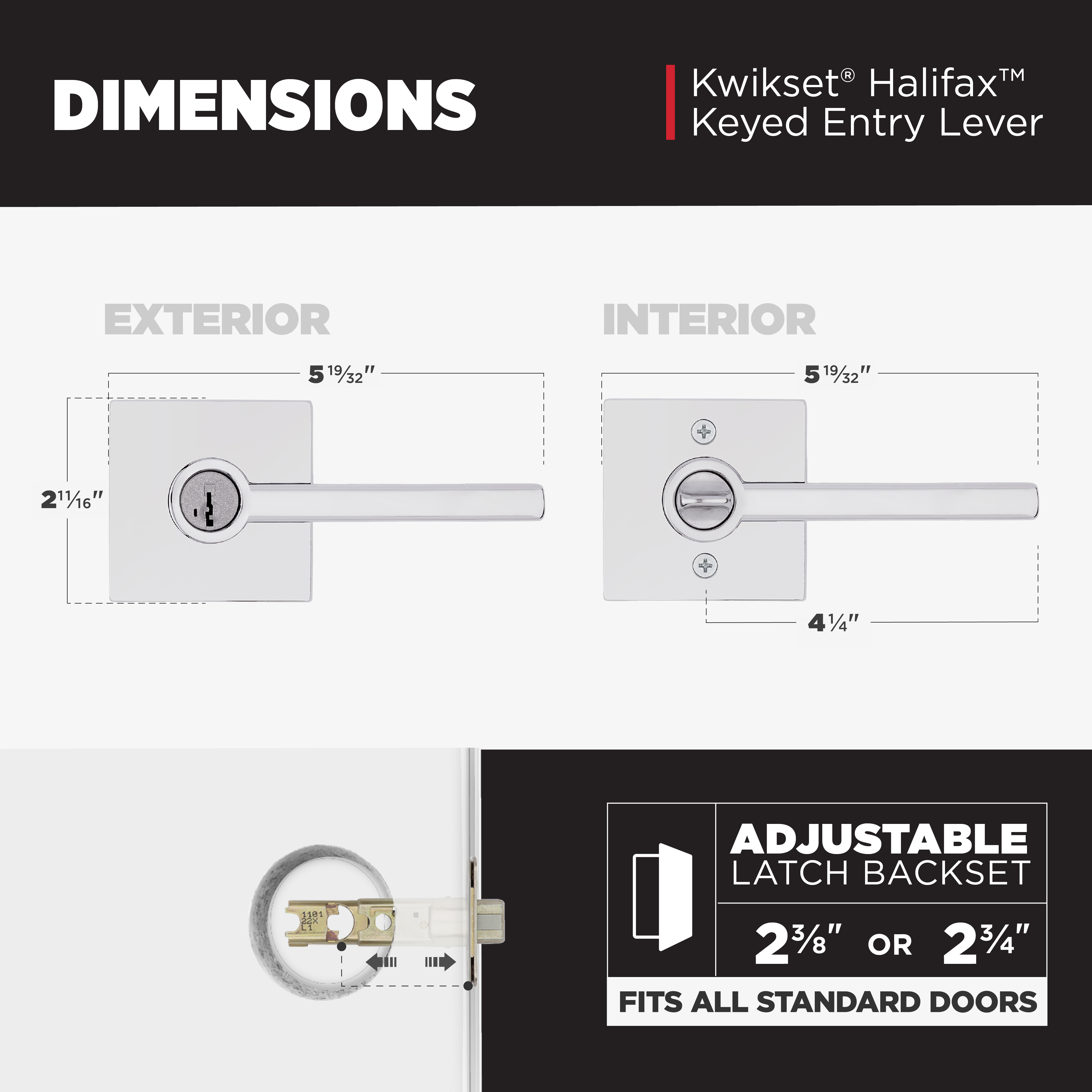 Halifax Keyed Entry Lever featuring SmartKey Security™ in Polished Chrome 4 Pack