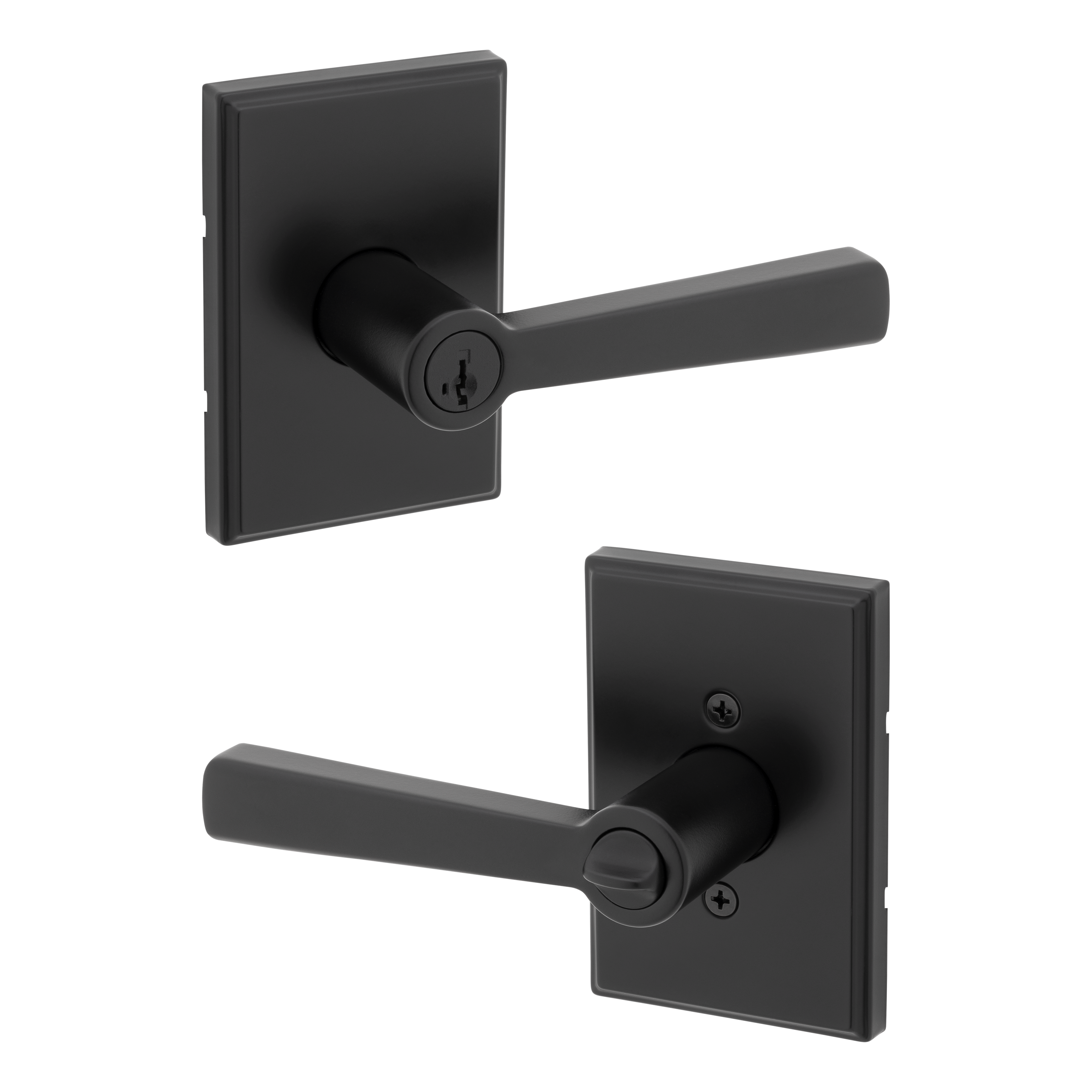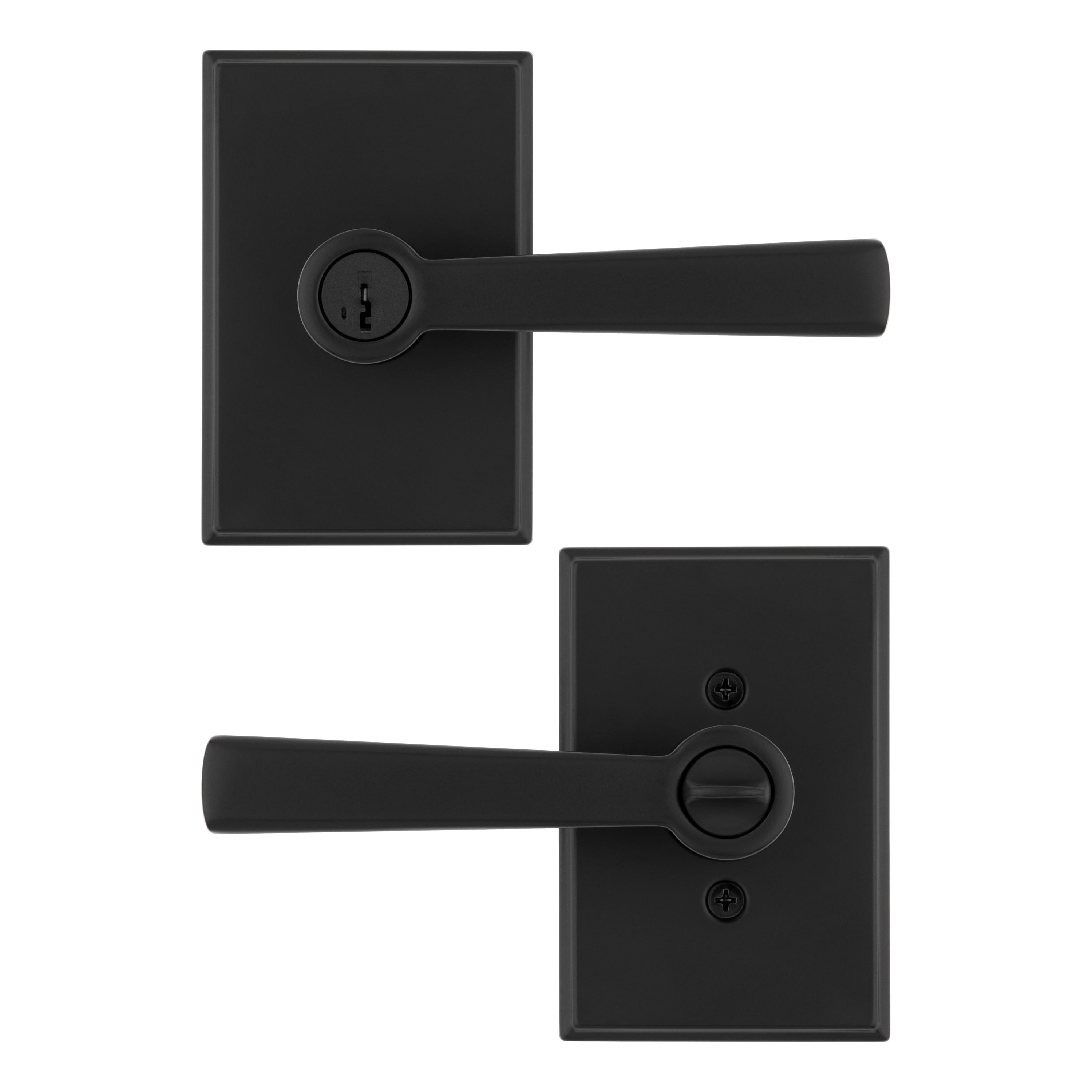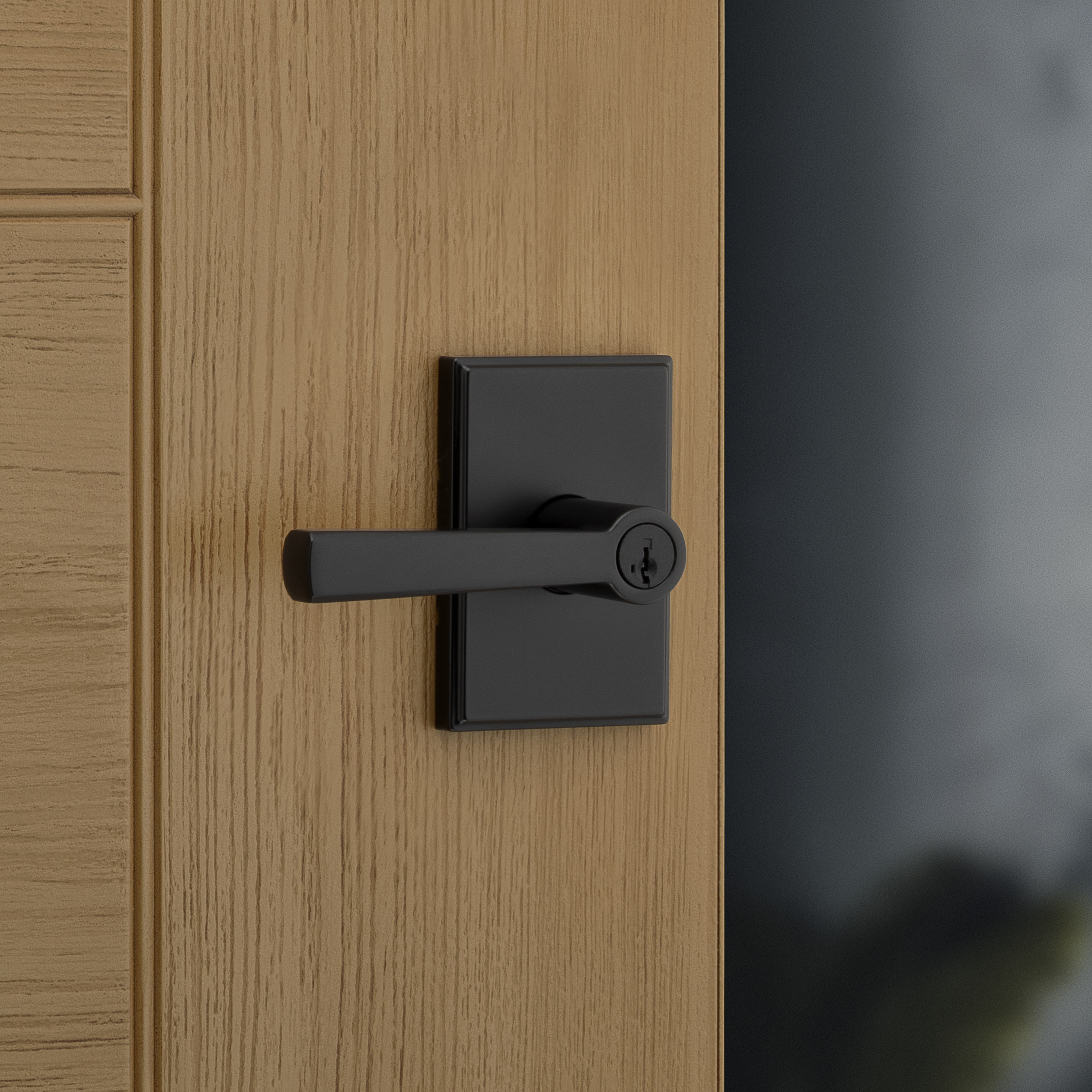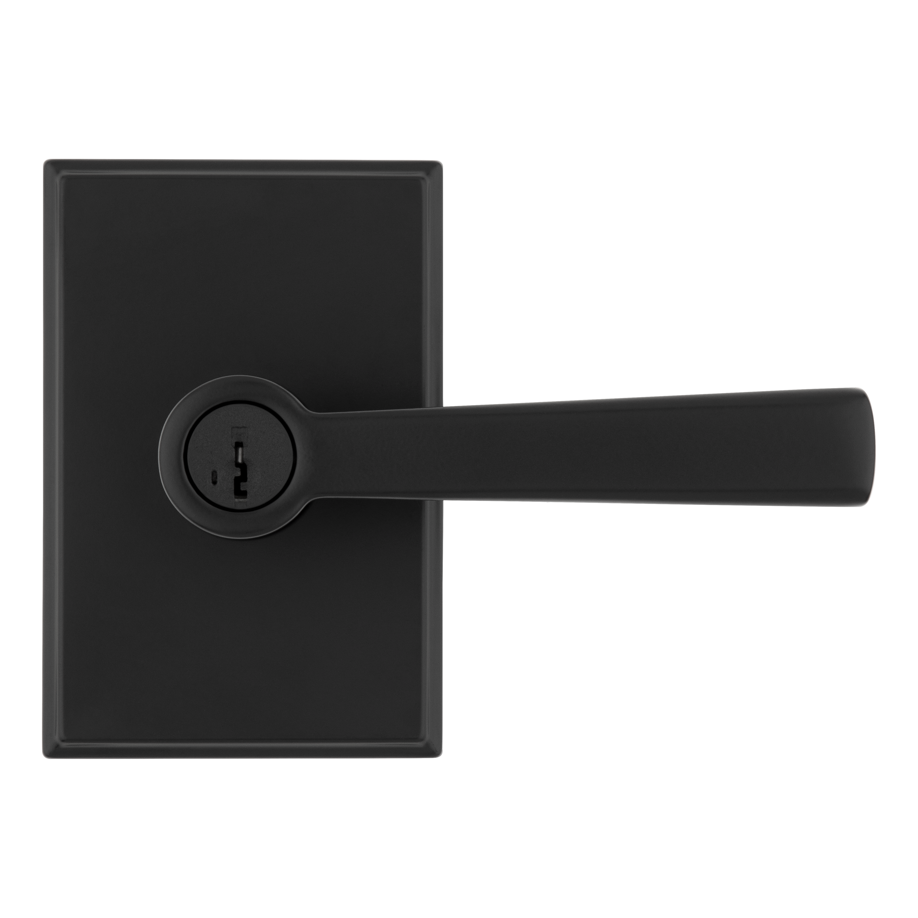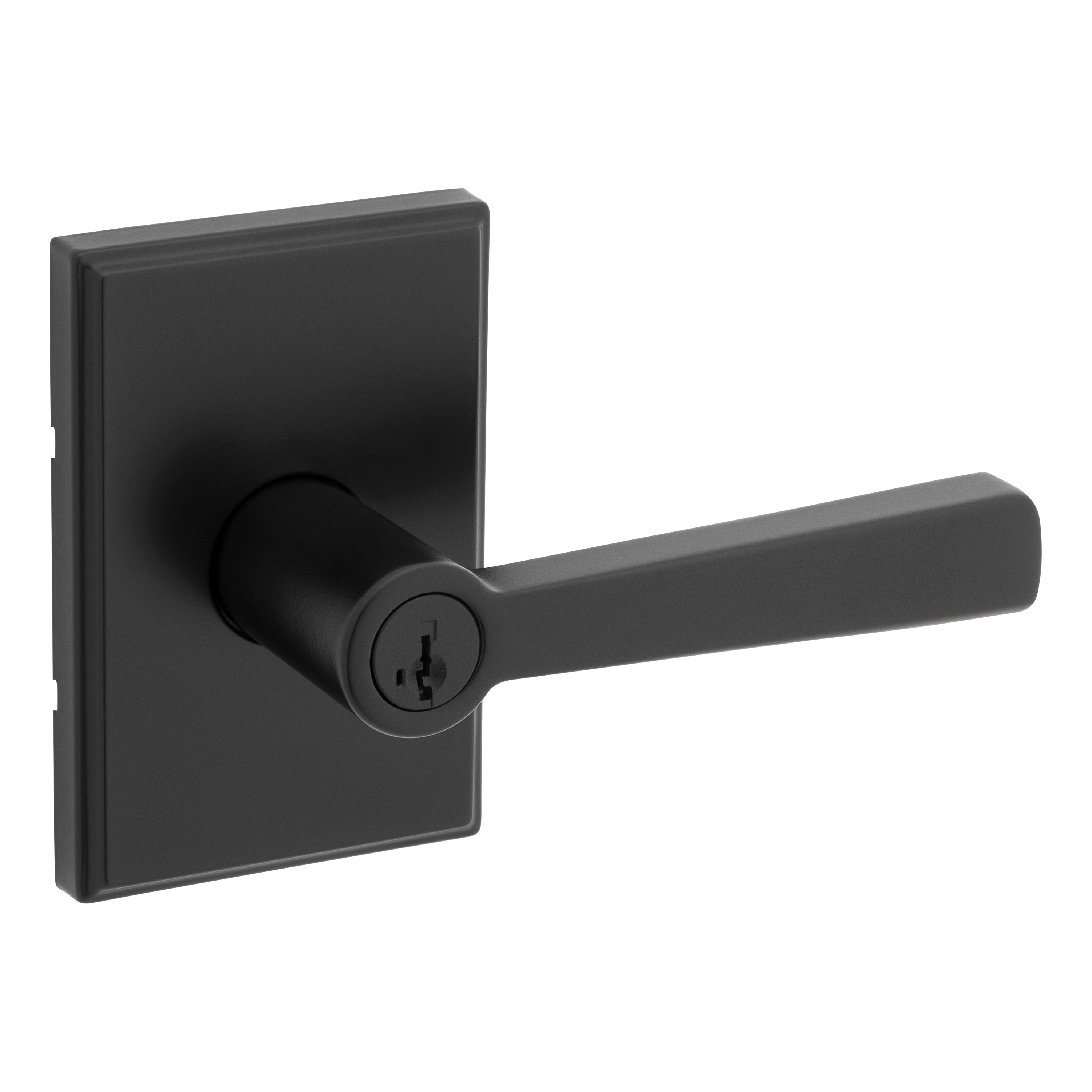 Trafford Rectangle Rose Keyed Entry Door Lever in Matte Black featuring SmartKey Security