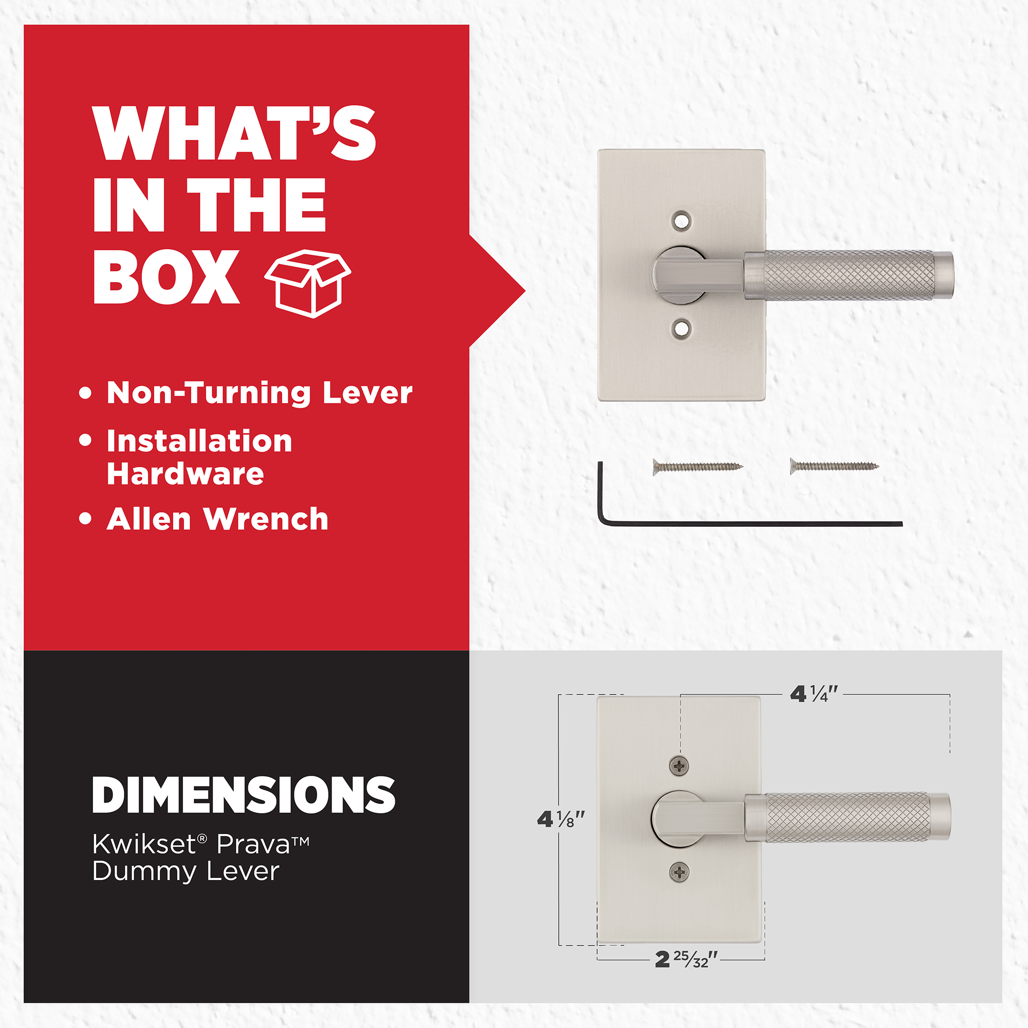 - Box Includes: Non-turning lever, installation hardware and Allen wrench