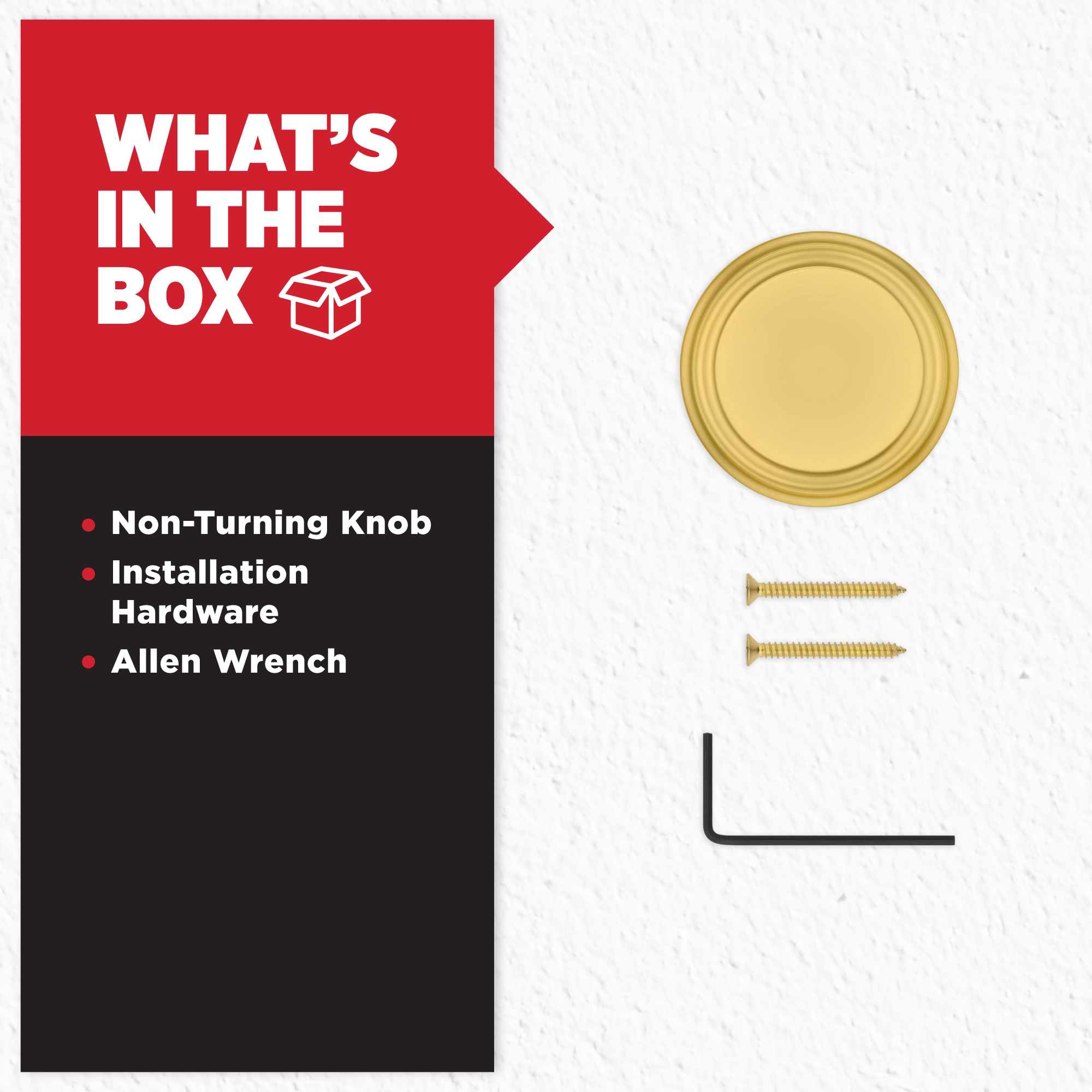- Box Includes: Non-turning knob, installation hardware and Allen wrench