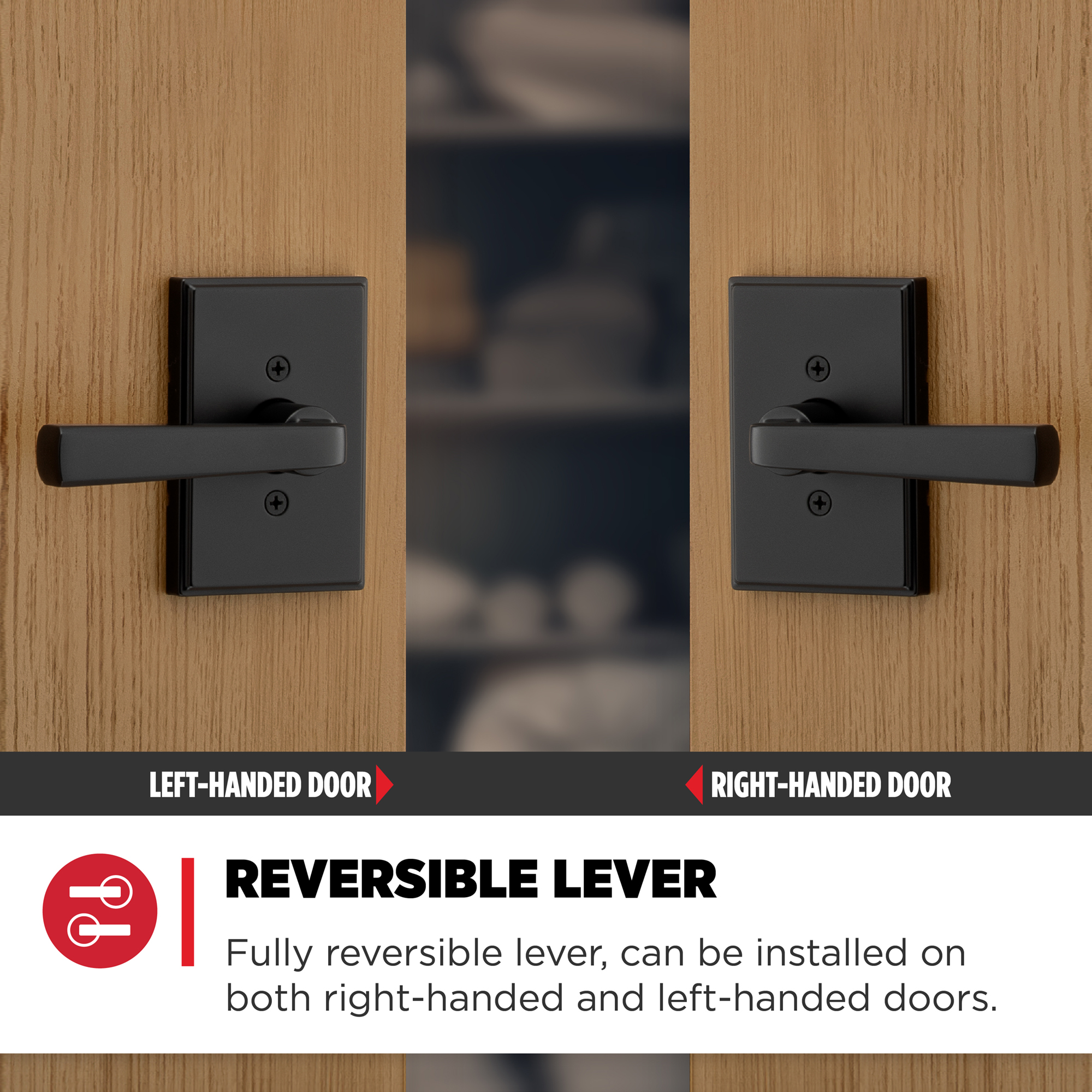 Easy Install Reversible Lever: Do it yourself, installs in minutes with just a screwdriver. Reversible handle for left- or right-handed doors, detailed directions provided
