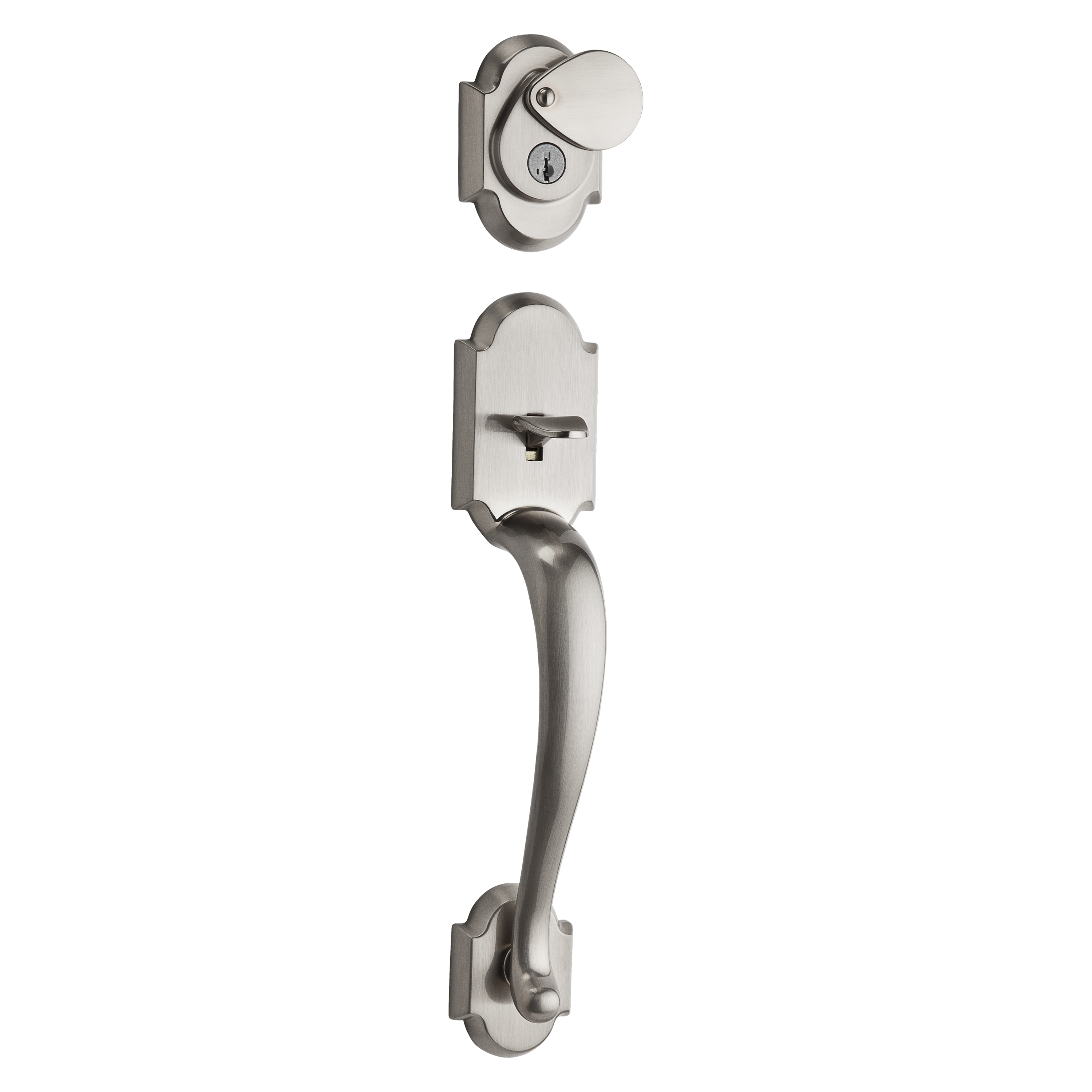 Austin Single Cylinder Exterior Only Handleset featuring SmartKey Security™ in Satin Nickel