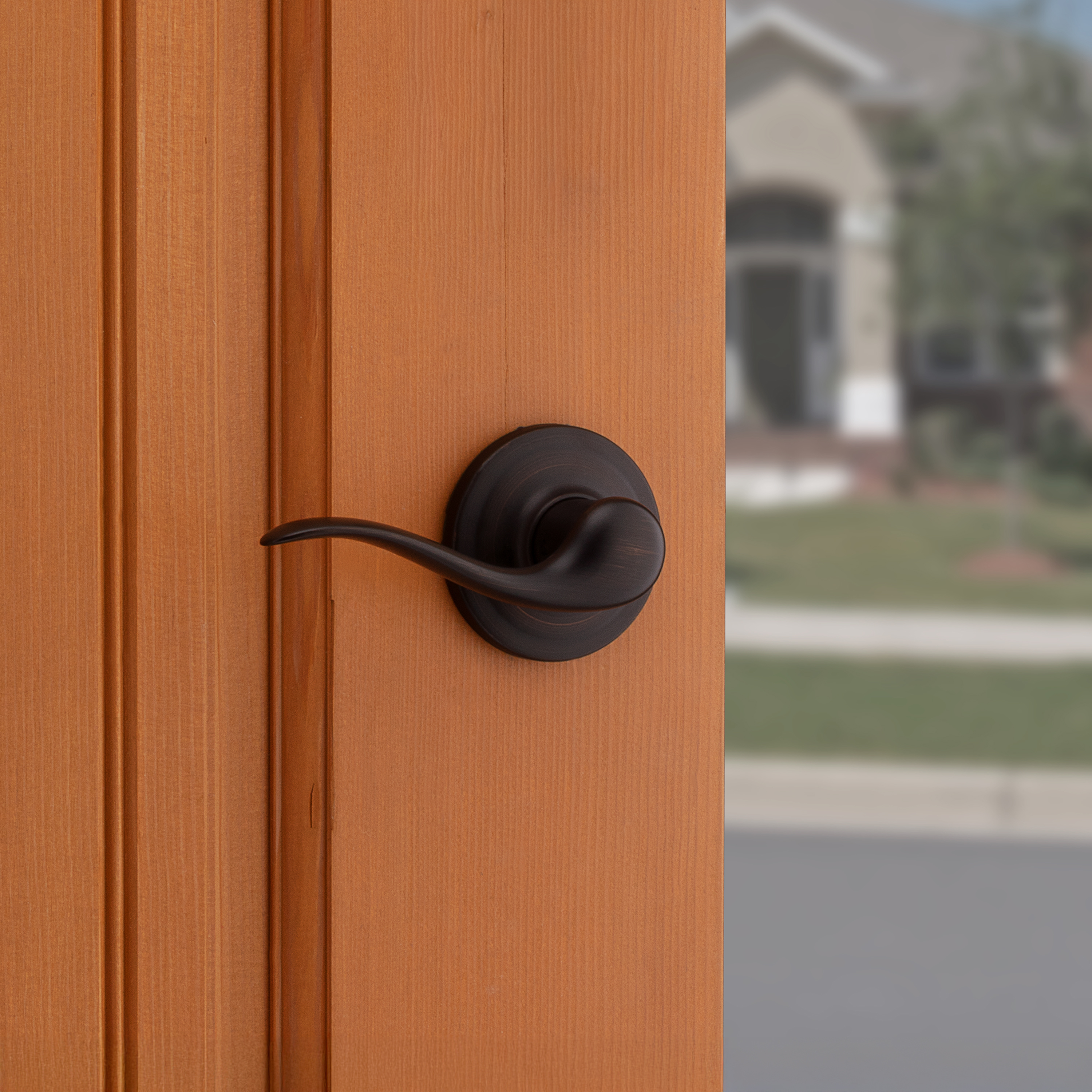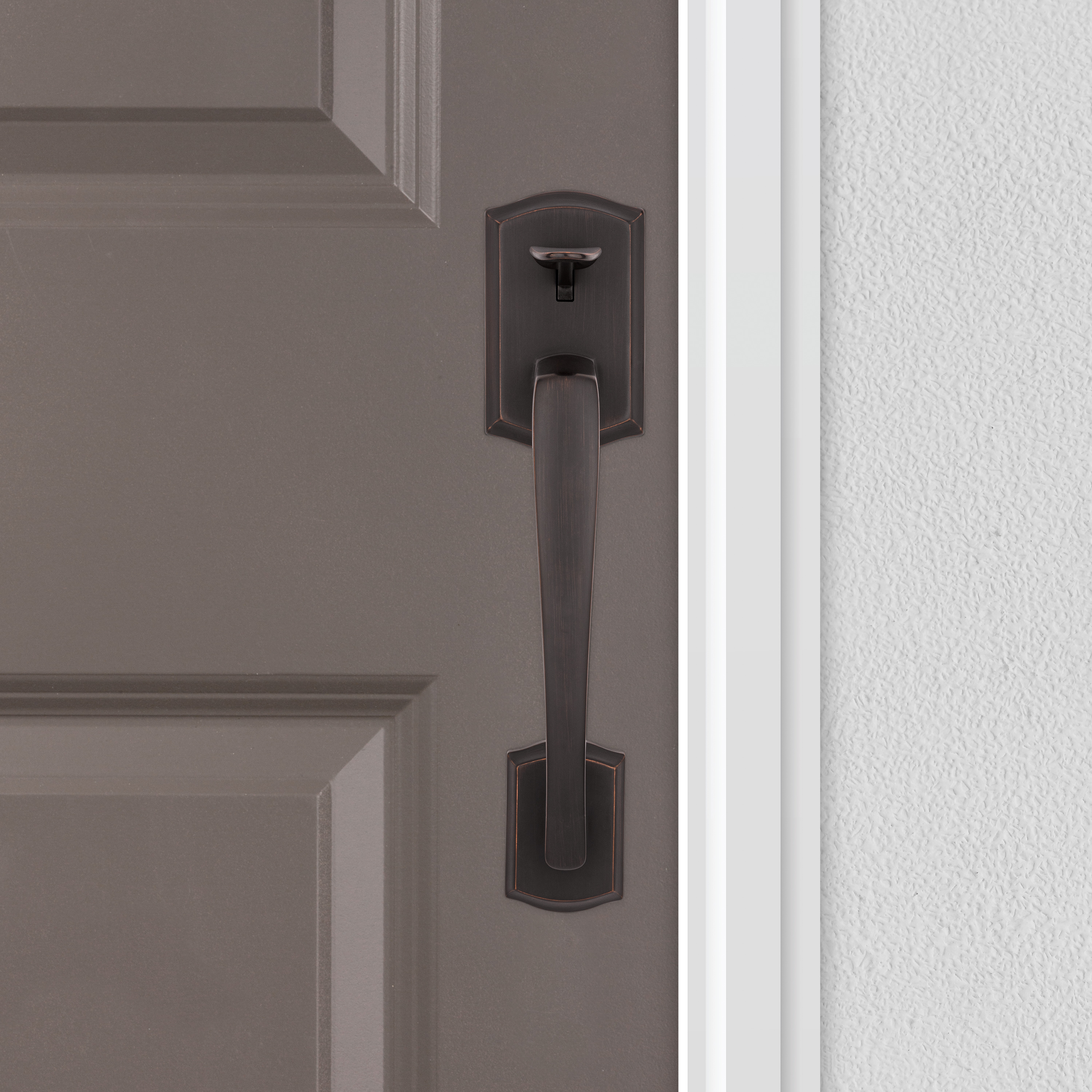Step up to designer styles and superior security with Kwikset Signature Series products. The Prescott handleset has an elegant but modest appearance that will bring charm to any home. With traditional contours that provide an attractive look and comfortable feel when entering the front door.