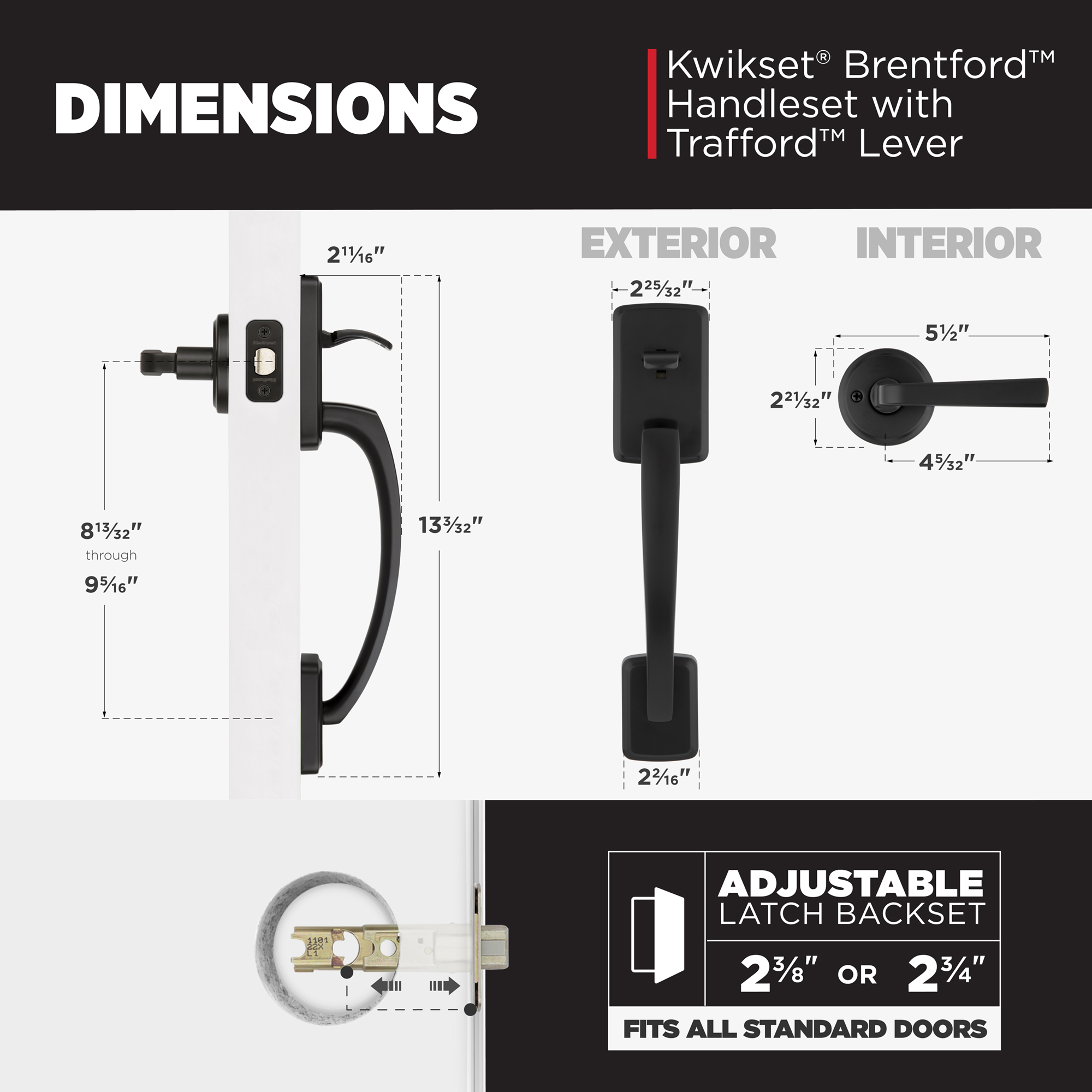 - Handleset and Interior Lever: Use on exterior front doors for added security and style, combine with a Kwikset electronic or mechanical deadbolt (sold separately)