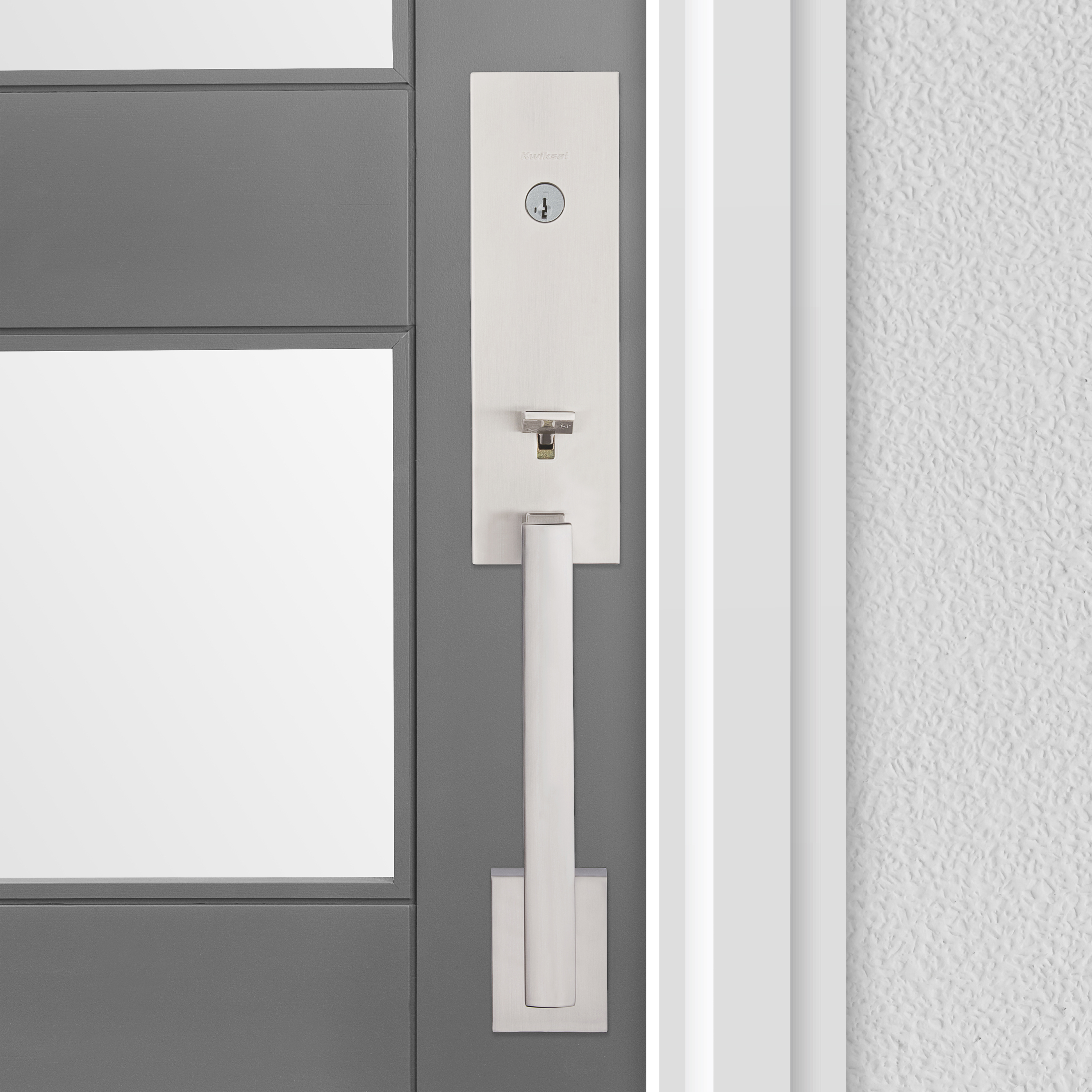Step up to designer styles and superior security with Kwikset Signature Series products. The Vancouver handleset has a clean, low profile design. With this sleek contemporary style, you make a bold statement right at the front door. The latch bolt is operated by the thumb piece on the outside and the grip on the inside. The deadbolt is operated by a key on the outside and a thumb turn on the inside.