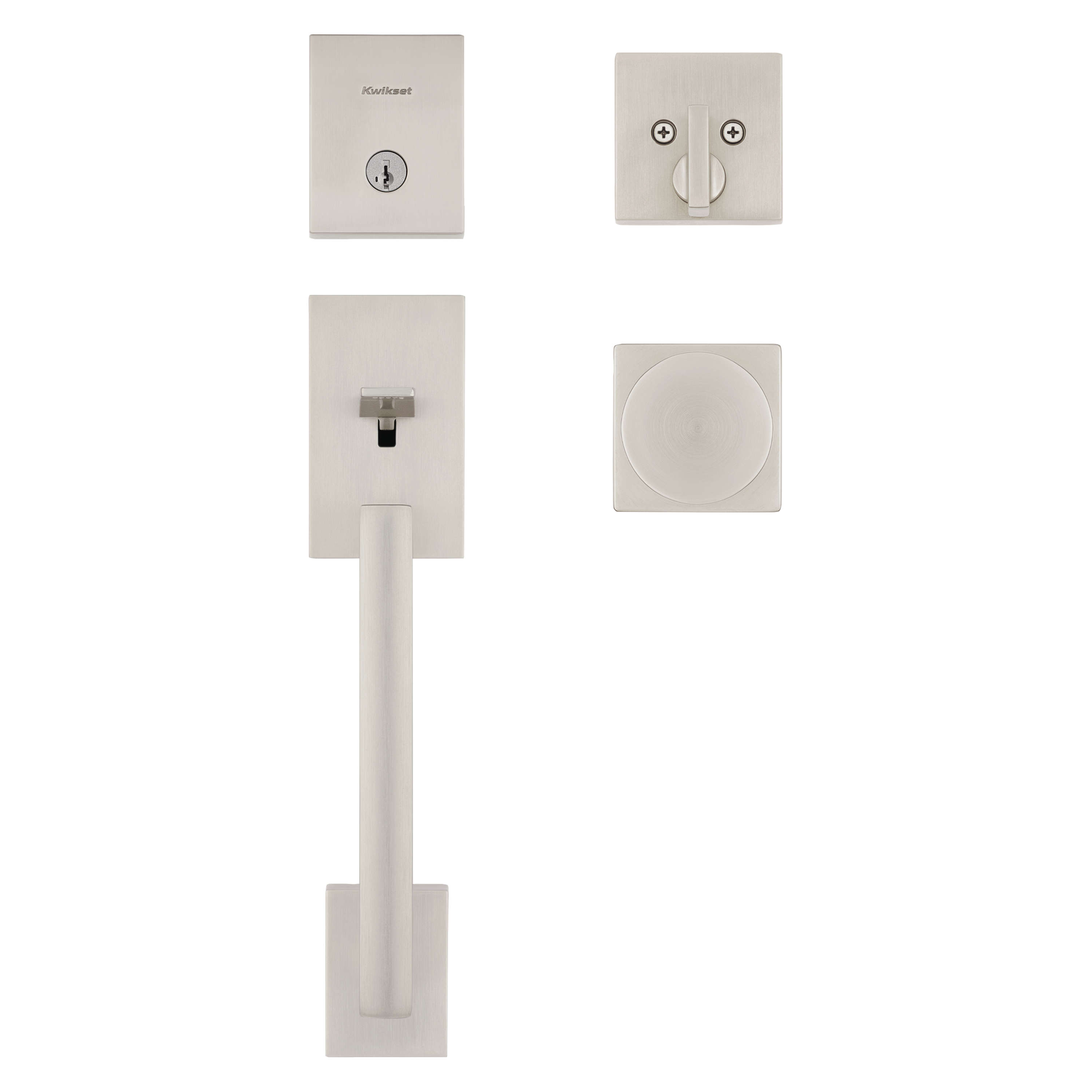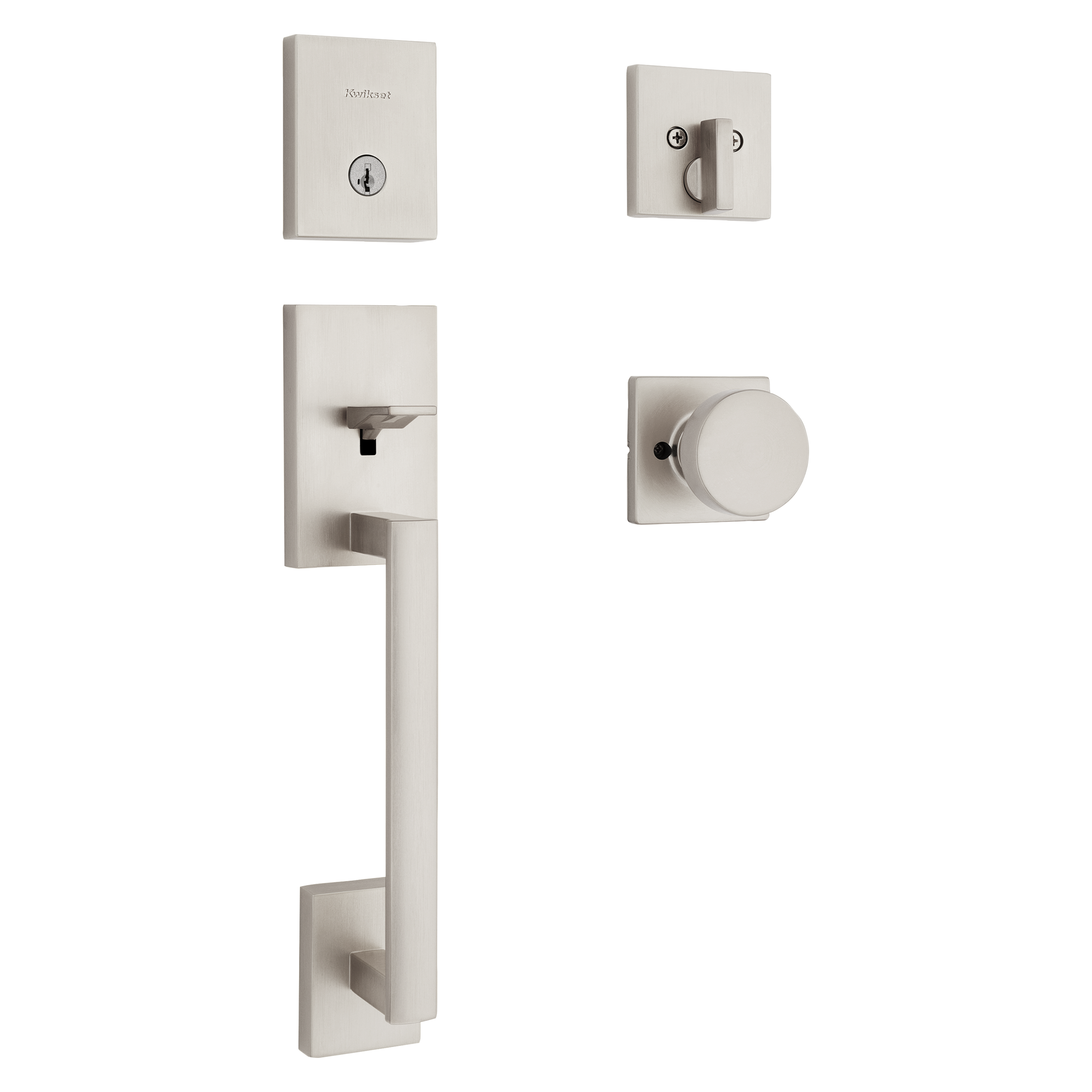 San Clemente Single Cylinder Low Profile Handleset w/ Square Pismo Knob featuring SmartKey Security™ in Satin Nickel