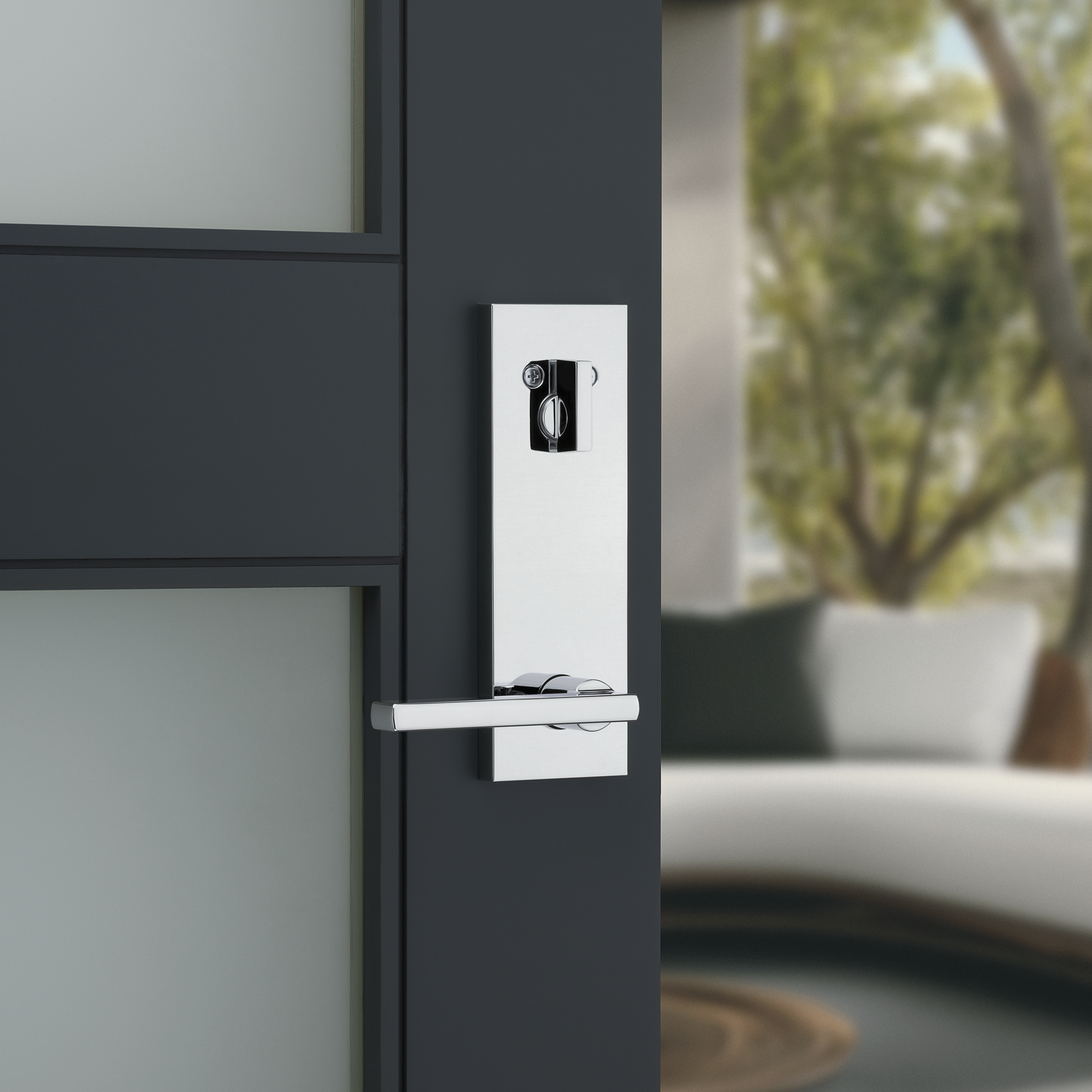 - Oversized Interior Lever: Interior features a full plate that connects the deadbolt turn piece and lever for a seamless and luxurious appearance