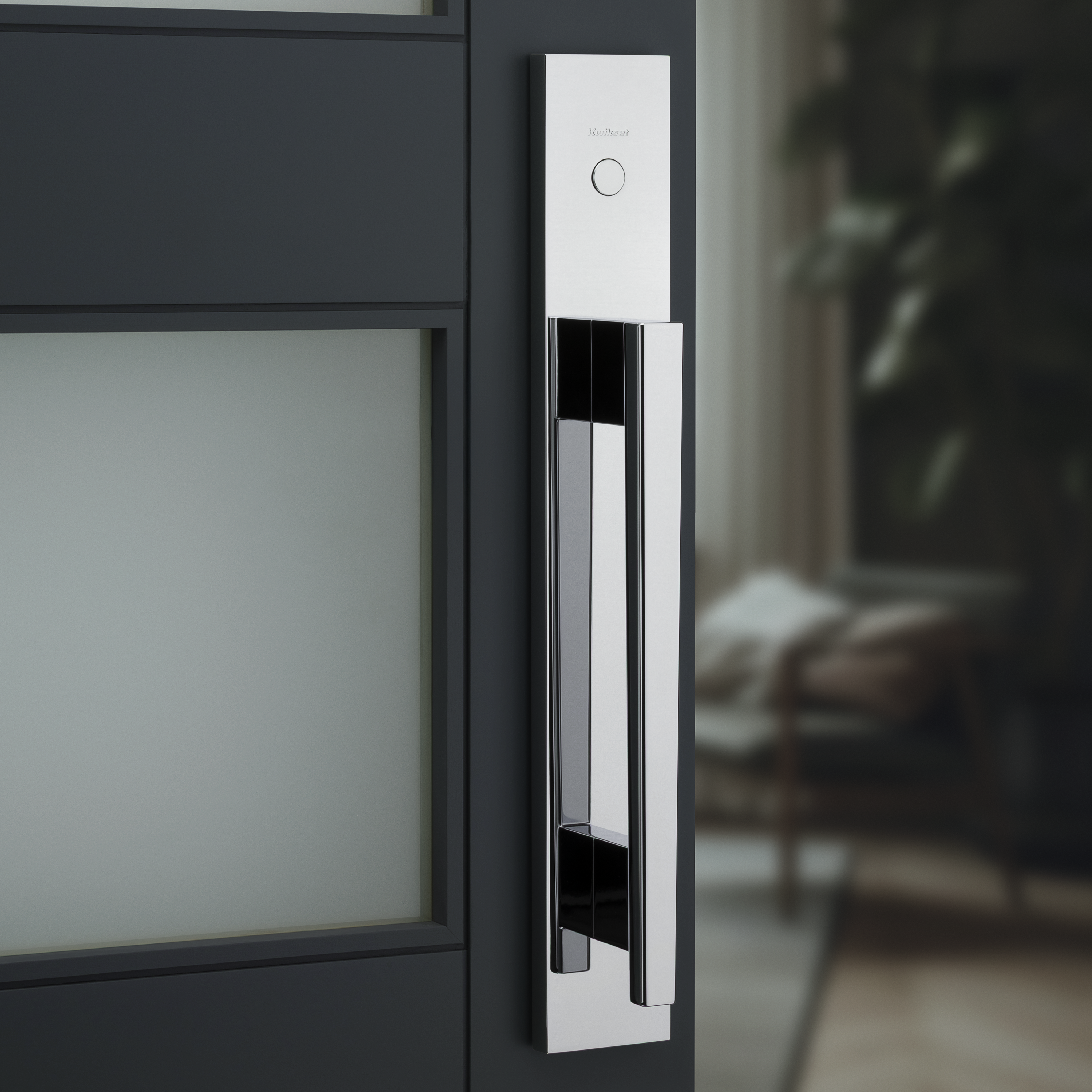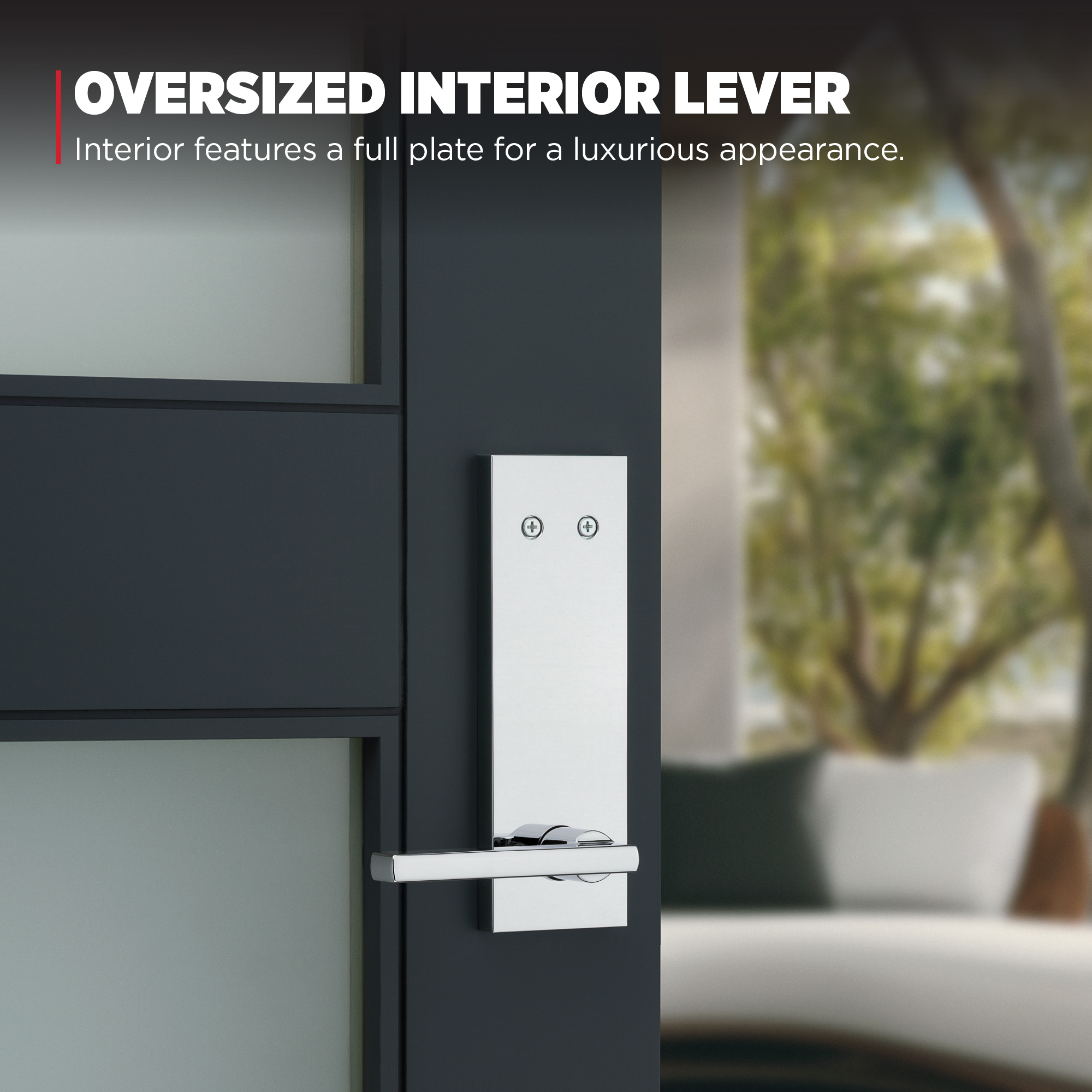 Caerus™ transforms doors into modern style statements. Designed with an oversized backplate, no thumbpiece and KwikSlide™ technology, the handleset is sleek, innovative and intuitive to use — simply slide the grip down to open the door. Experience effortless operation and affordable luxury every day.
