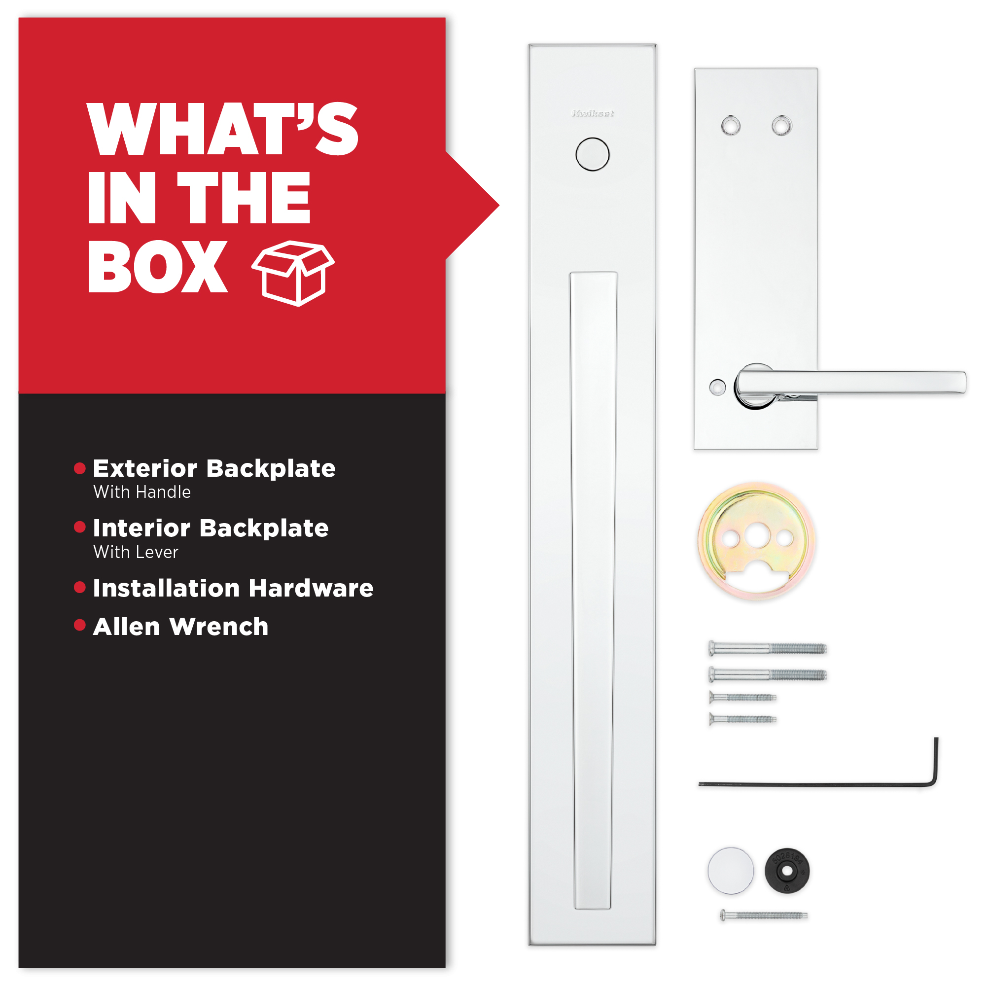 Box Includes: Exterior backplate with handle, interior backplate with lever and installation hardware