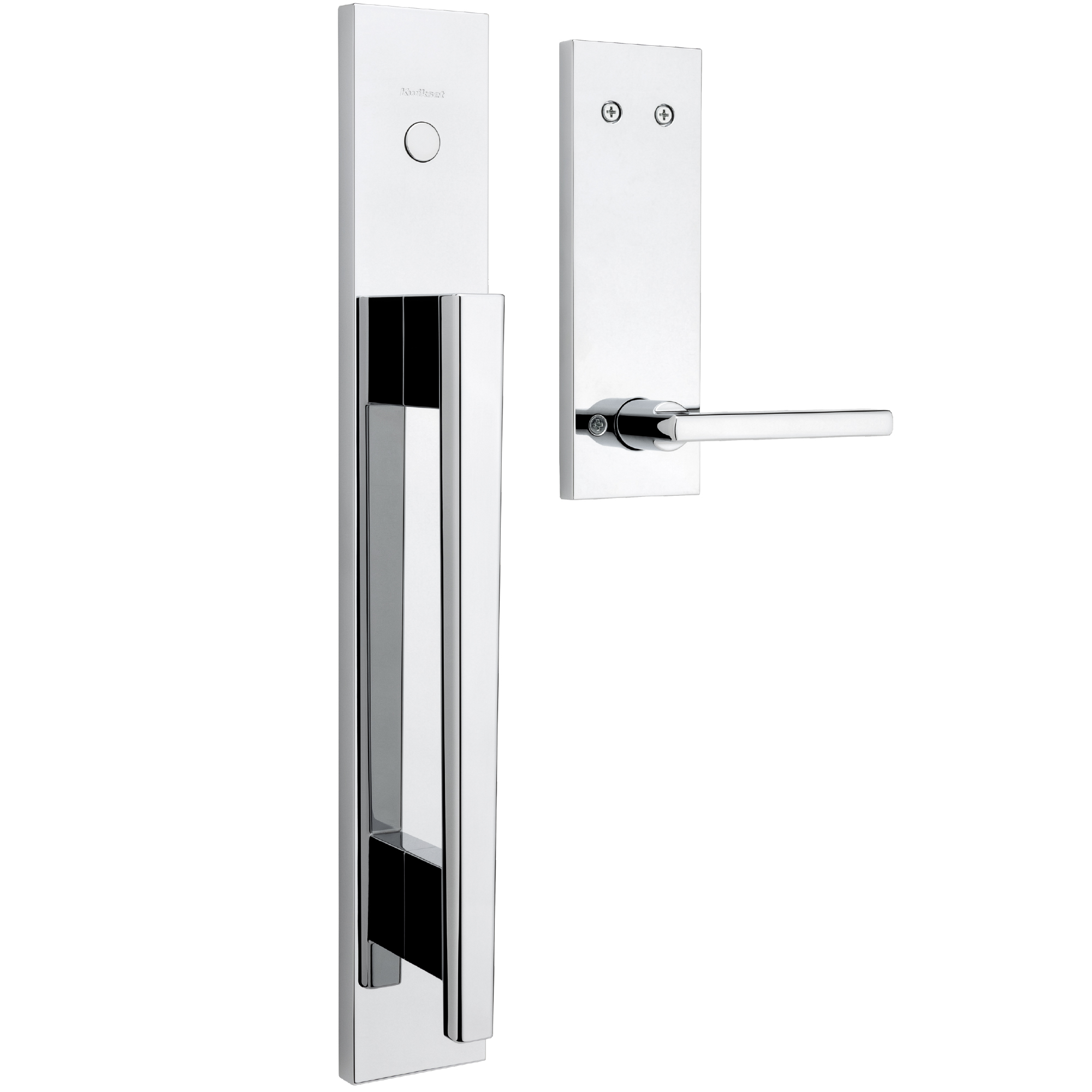 Inactive Dummy HANDLESET: Non-functioning, for use on exterior double doors, recommended for front doors, combine with the Kwikset Caerus™ 818 single cylinder handleset to complete your front door