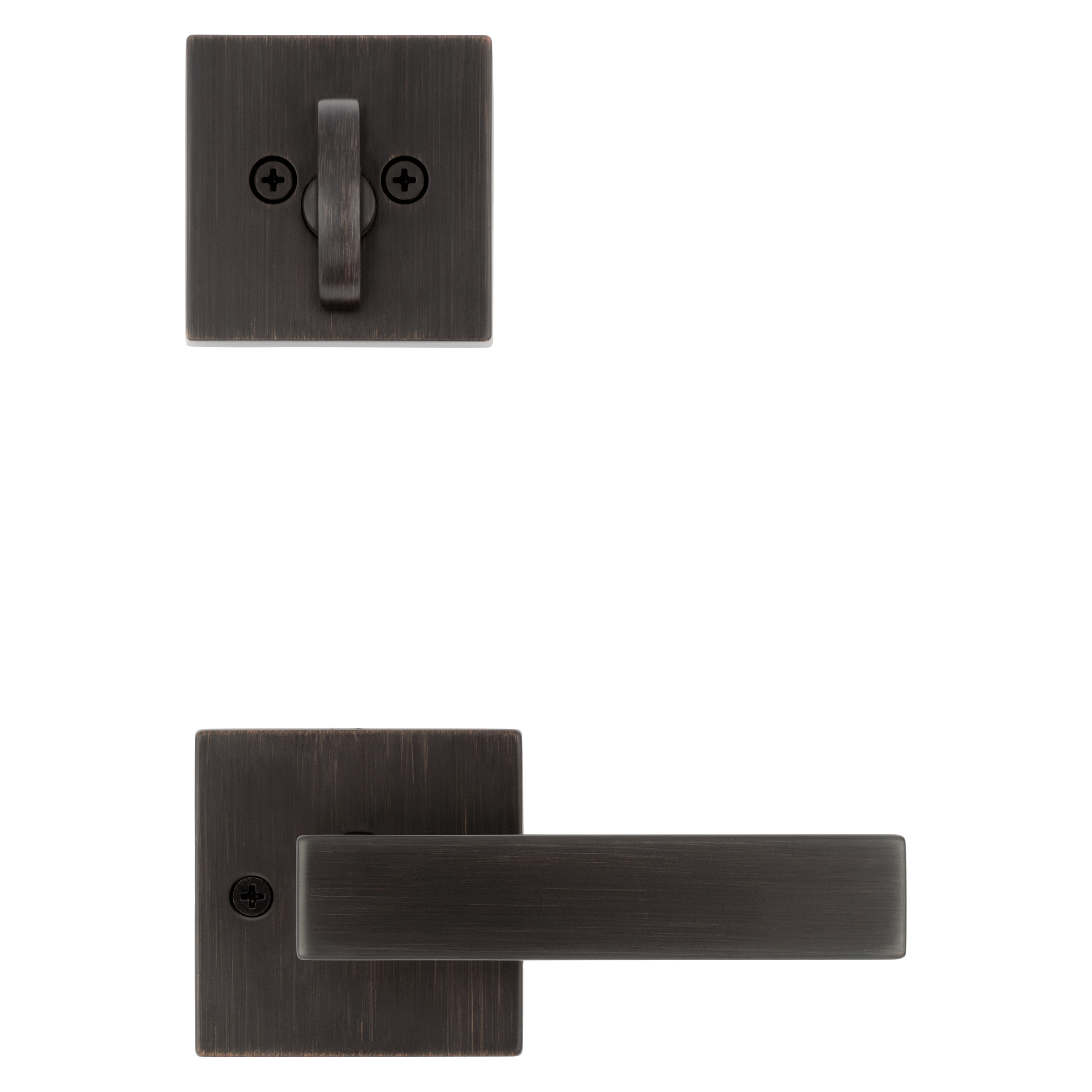966 Single Cylinder Interior Pack w/ Square Rose Singapore Lever Handlesets in Venetian Bronze