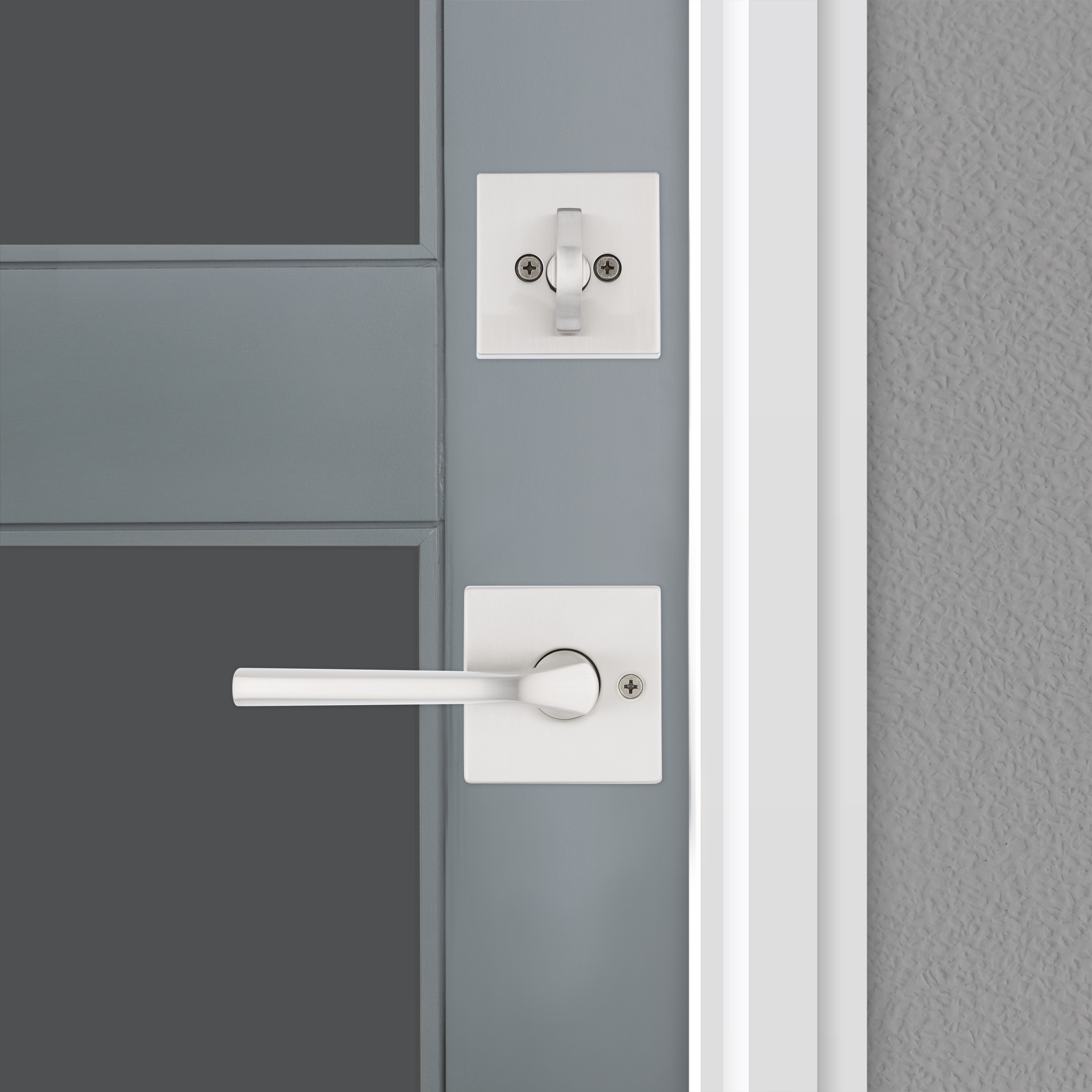 966 Single Cylinder Interior Pack w/ Square Rose Lisbon Lever Handlesets in Satin Nickel