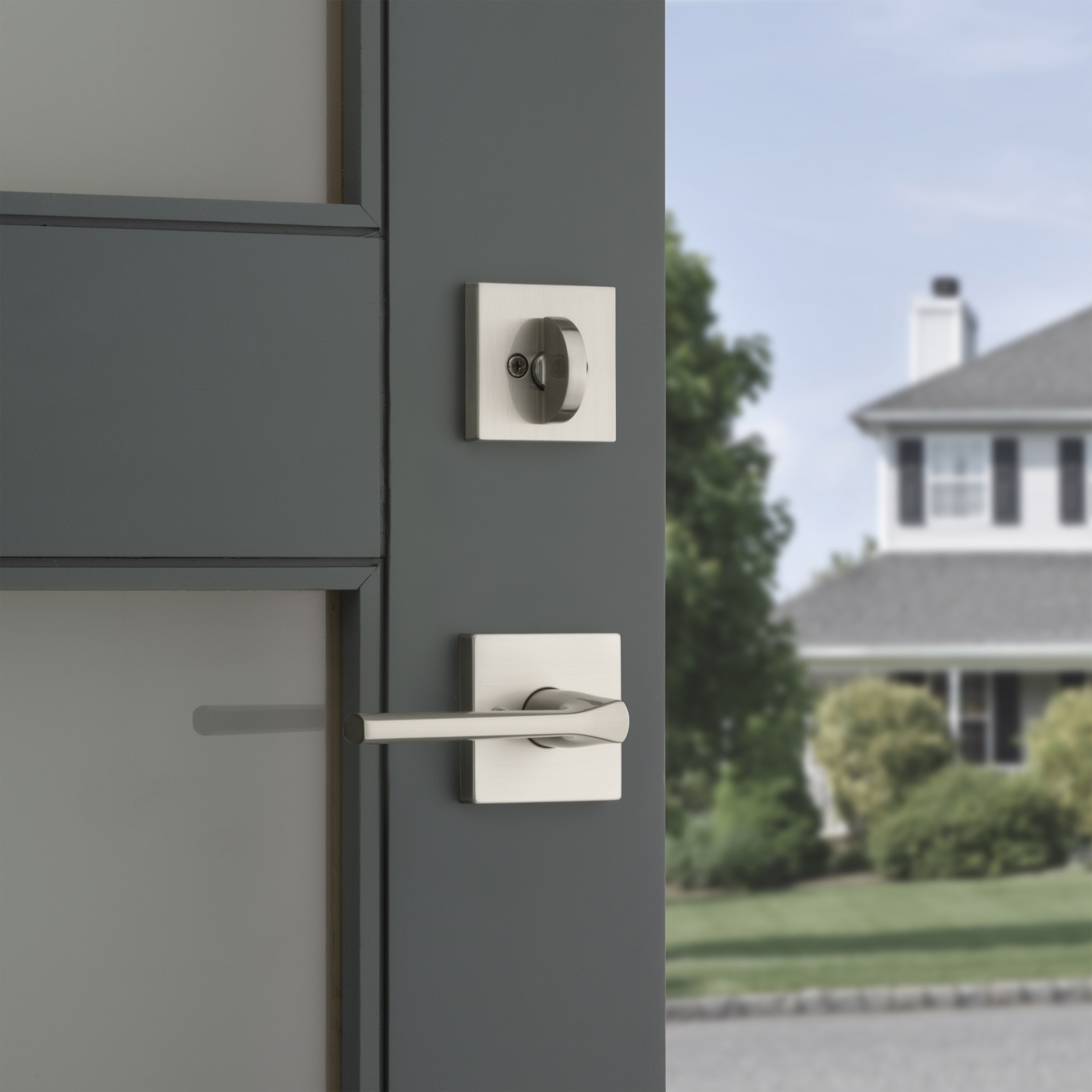 Step up to designer styles and superior security with Kwikset Signature Series products. Lisbon is the quintessential example of contemporary design. The unique thumb rest is precision-crafted for ergonomic comfort and the sleek, tapered contour of the lever brings simple sophistication to any contemporary setting.