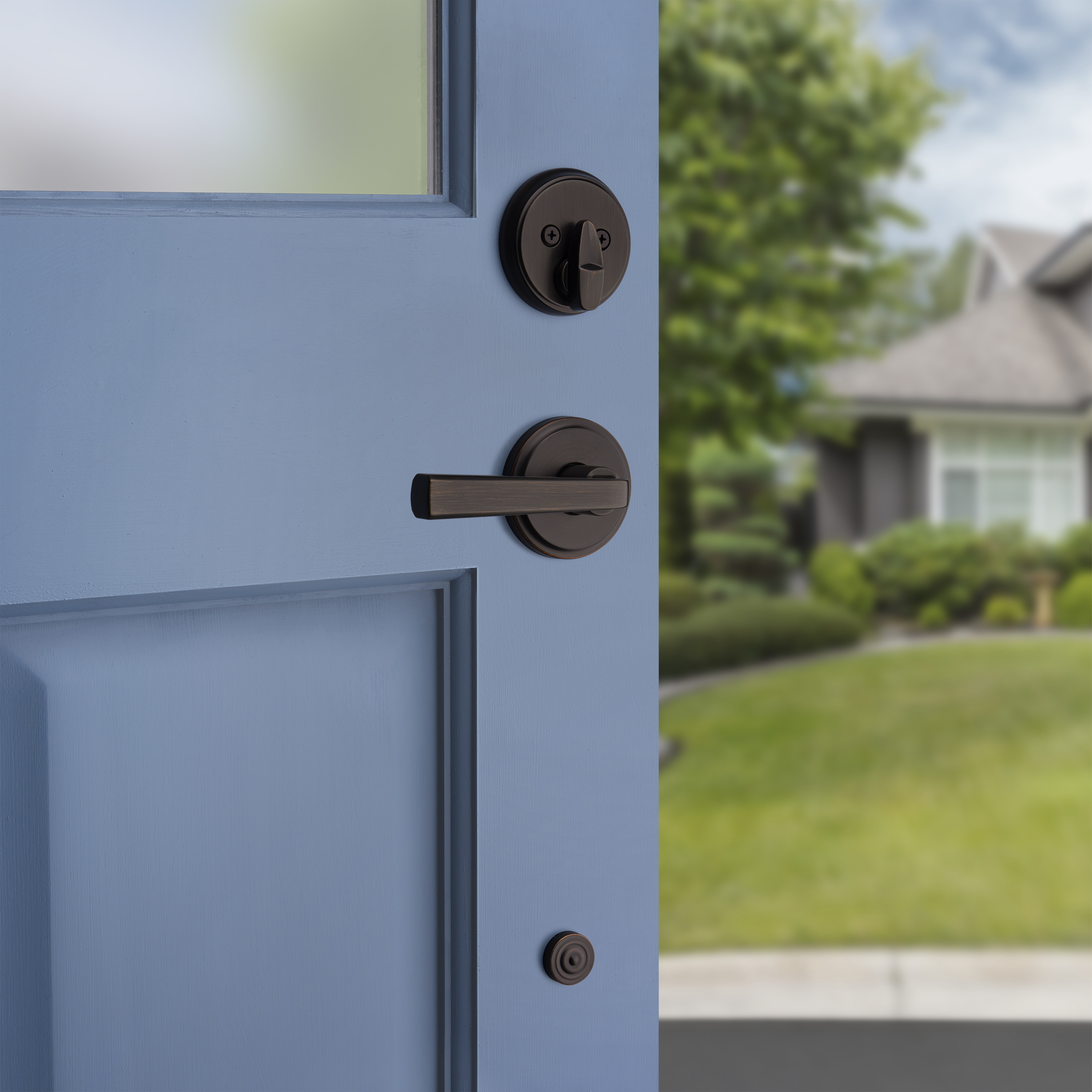 Step up to designer styles and superior security with Kwikset Signature Series products. Elevate your space with the timeless Trafford™ family. The unique soft curve adds a sophisticated touch to any home aesthetic, while the designer rosette imparts a warm and welcoming feel to your doors. Create your desired look with three premium finishes, then let our bump- and pick-resistant SmartKey® Security protect what matters most. Adorn your interior and exteriors with Trafford™ levers, and enjoy our highest level of security, easiest installation and peace of mind.