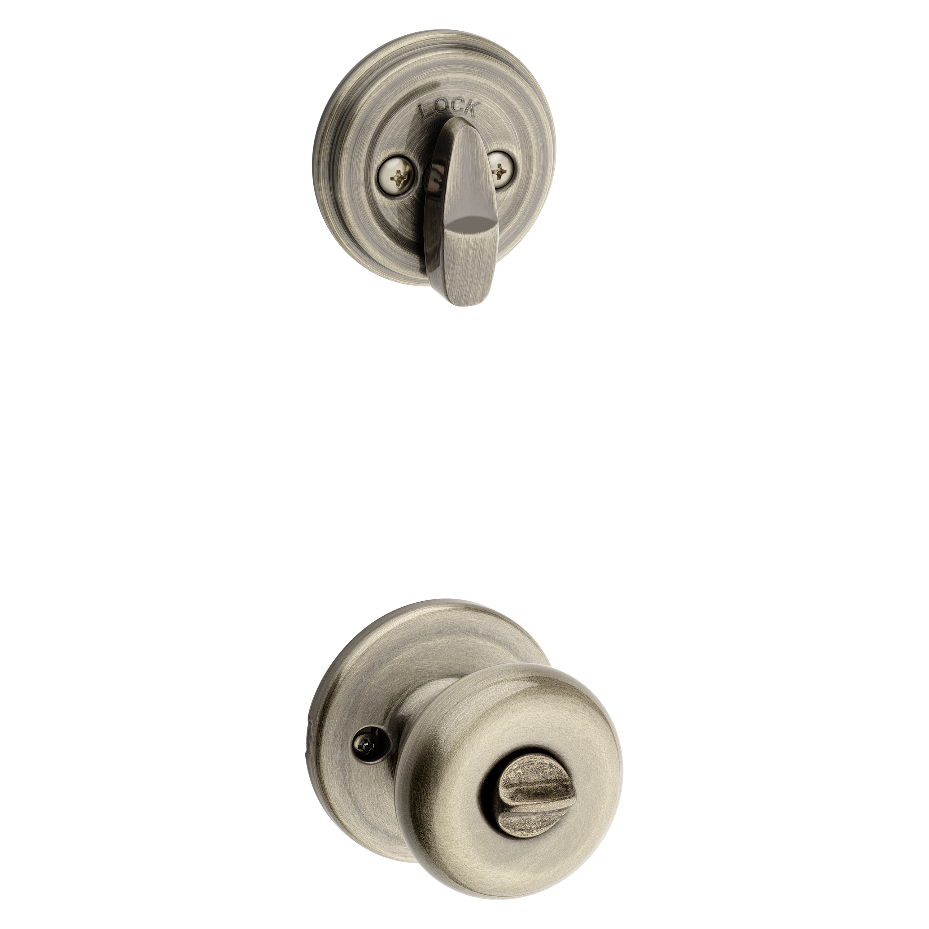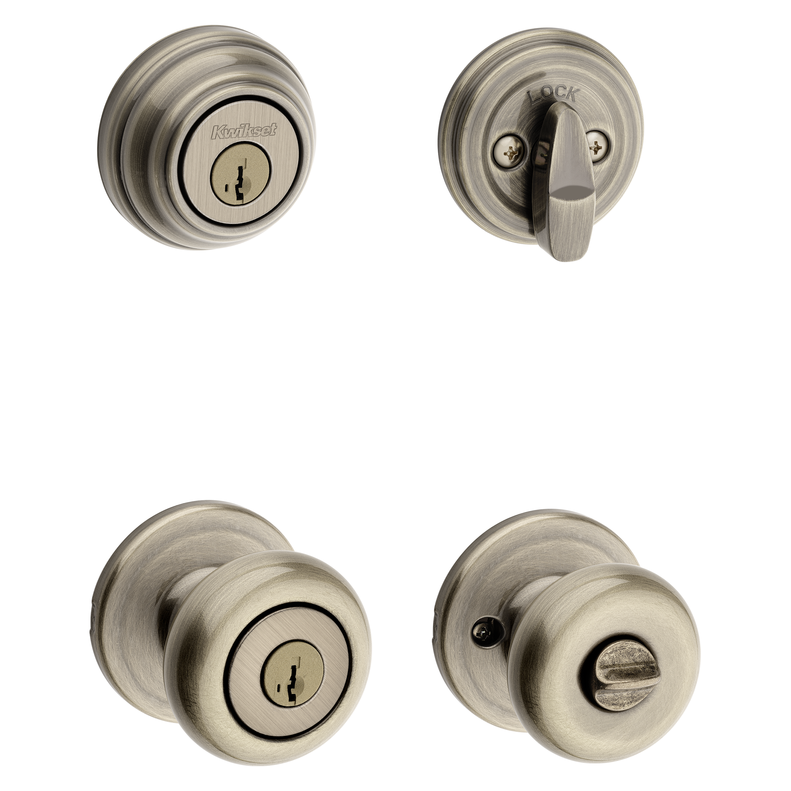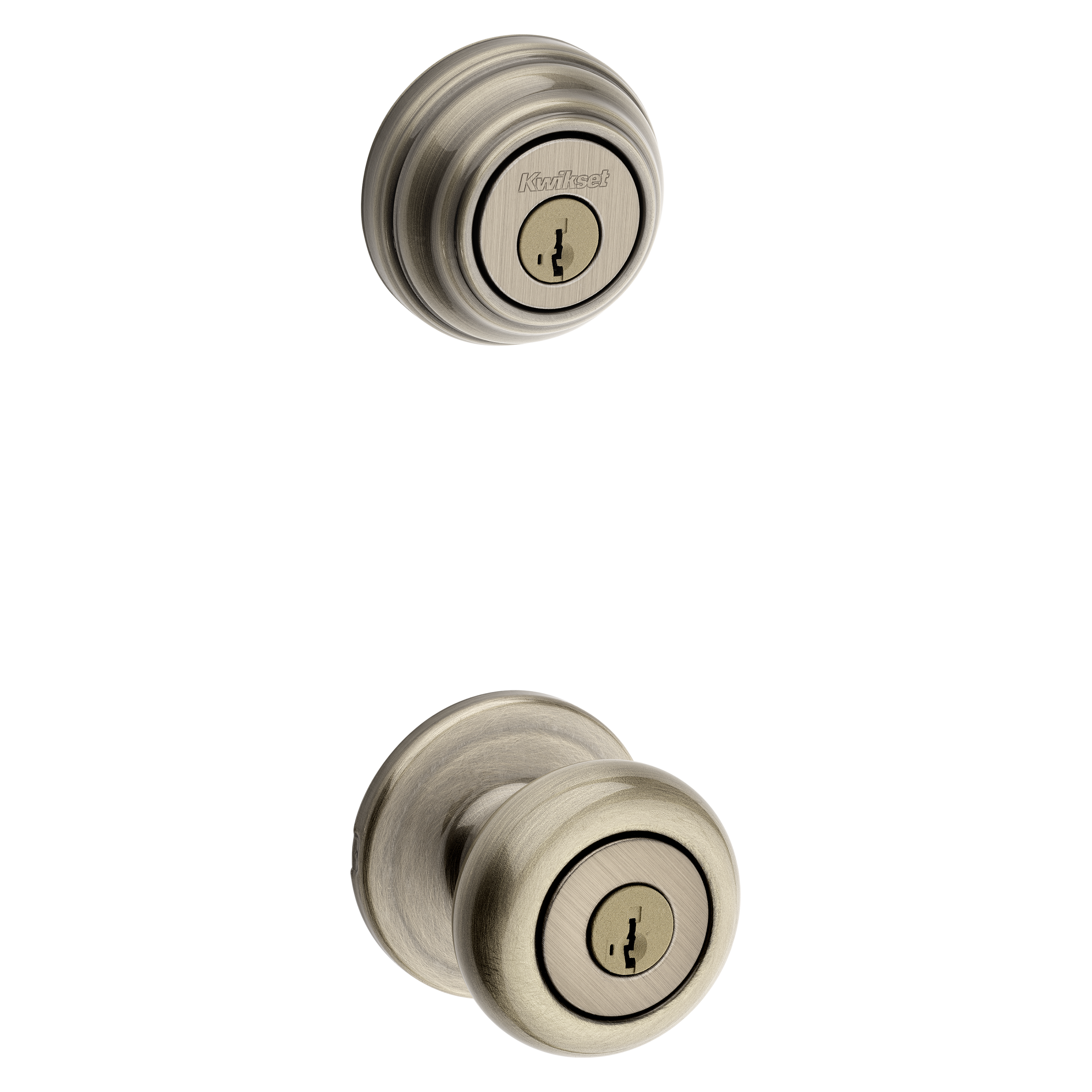 991 Juno Keyed Entry Knob and Single Cylinder Deadbolt Combo Pack featuring SmartKey Security™ in Antique Brass