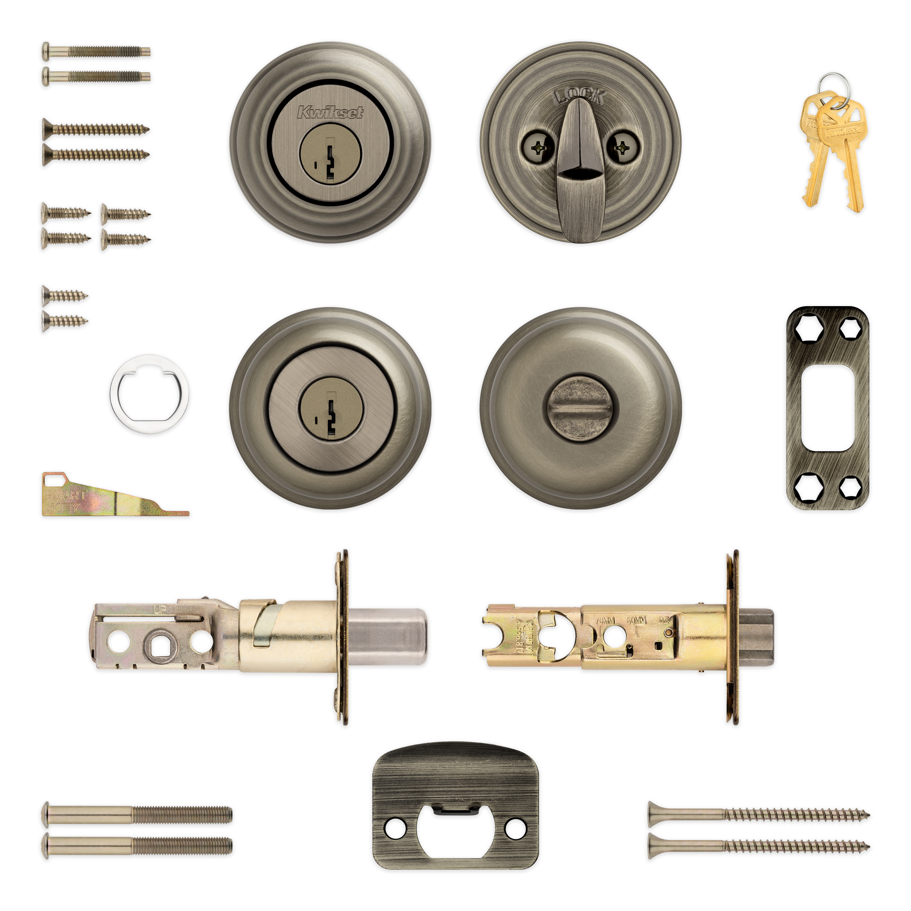 SmartKey Security™ re-key technology is compatible with Kwikset (KW1) keyway or (SC1) keyway options