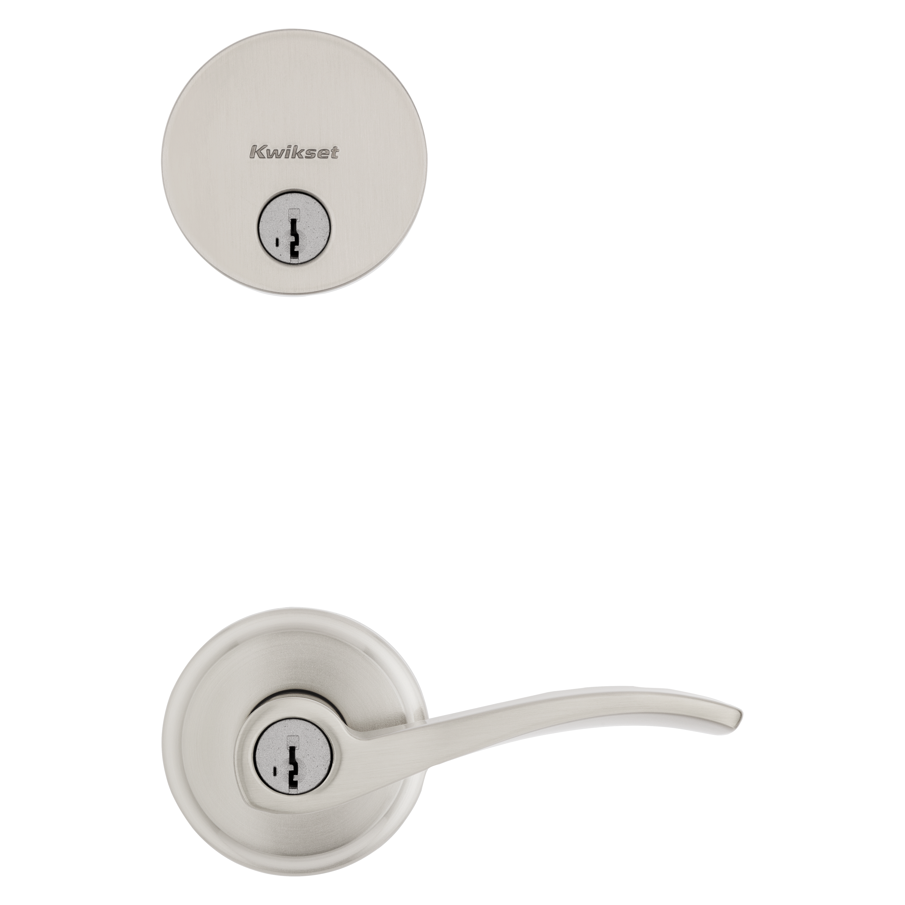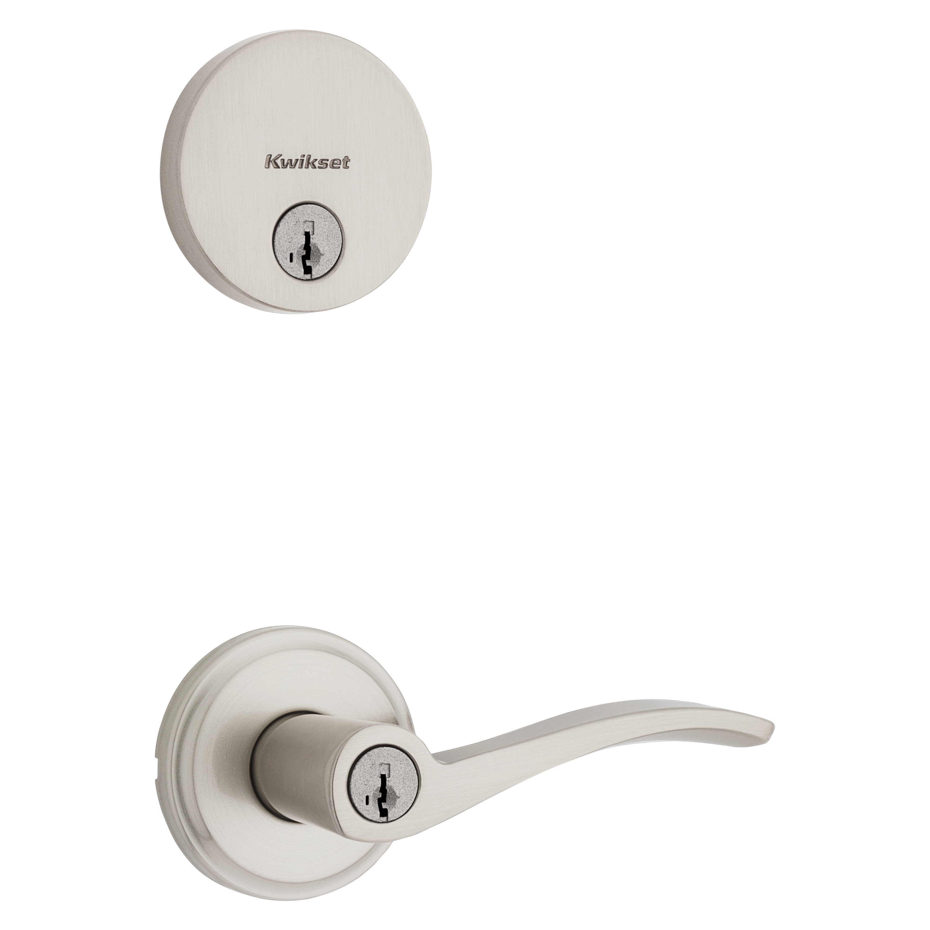 991 Sedona Keyed Entry Lever and Single Cylinder Deadbolt Combo Pack featuring SmartKey Security™ in Satin Nickel