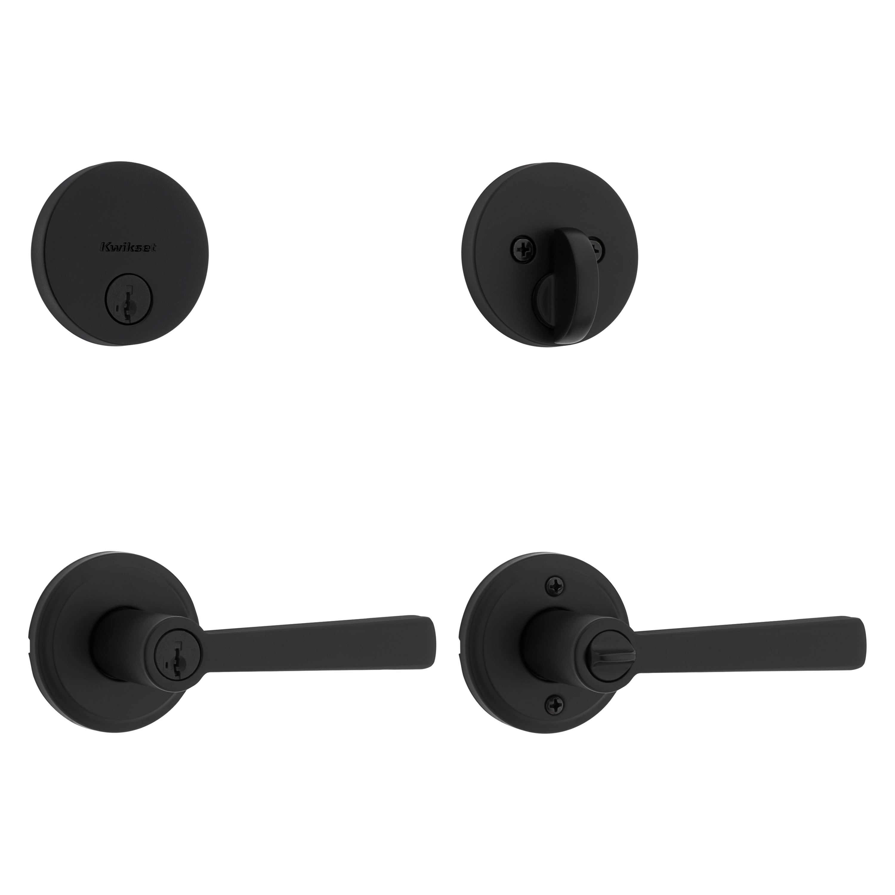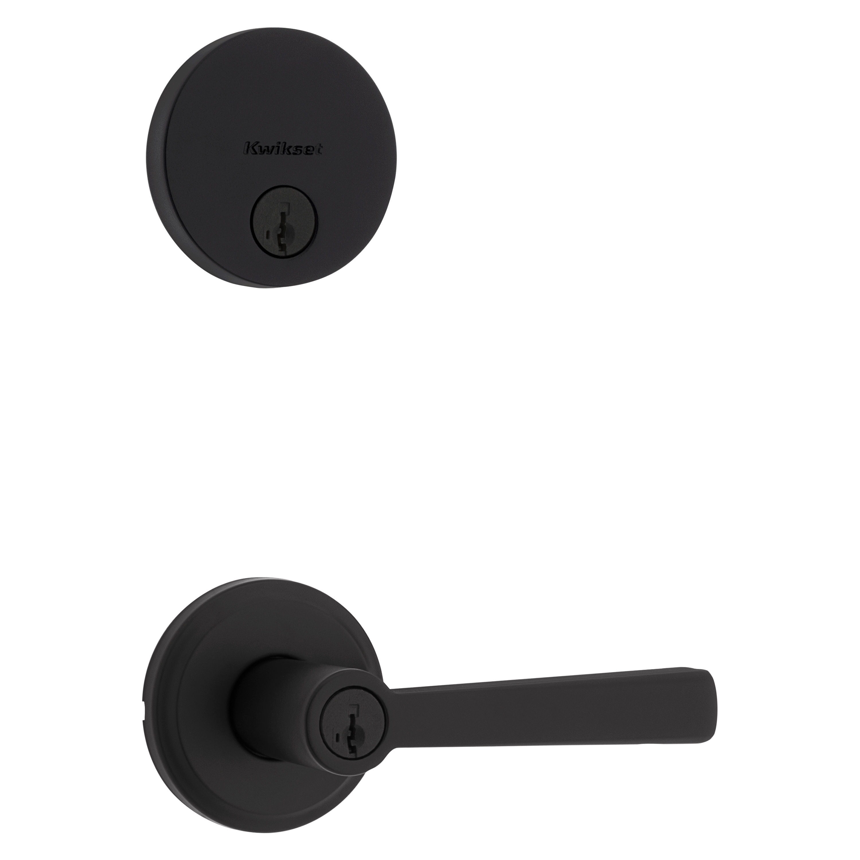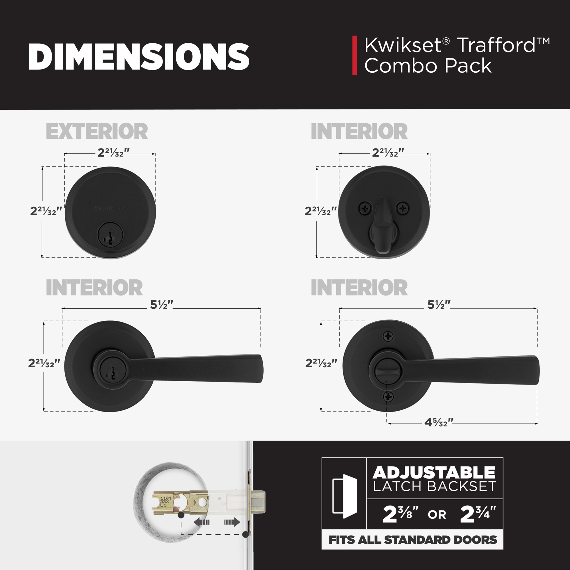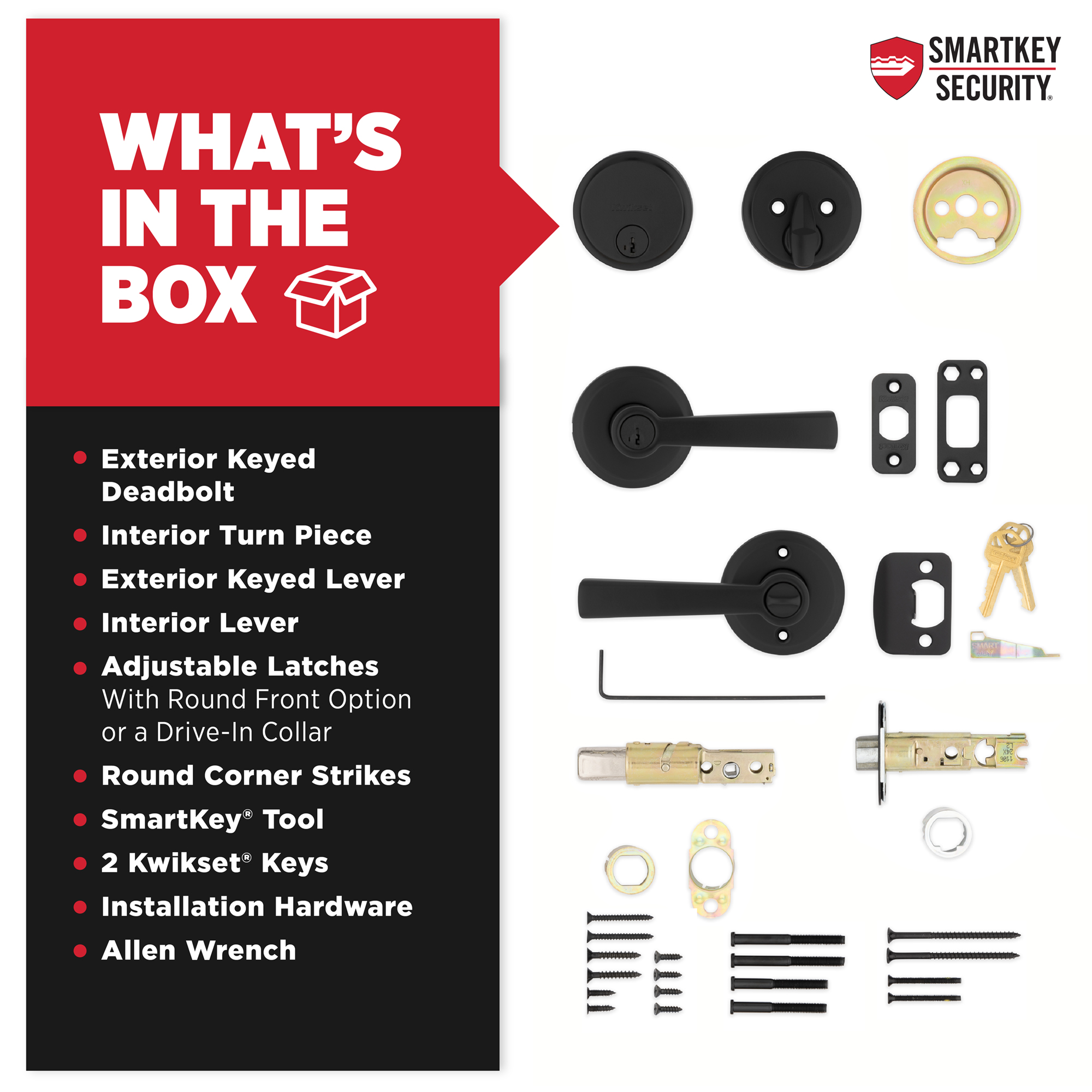 991 Trafford Keyed Entry Lever and Single Cylinder Deadbolt Combo Pack featuring SmartKey Security™ in Matte Black