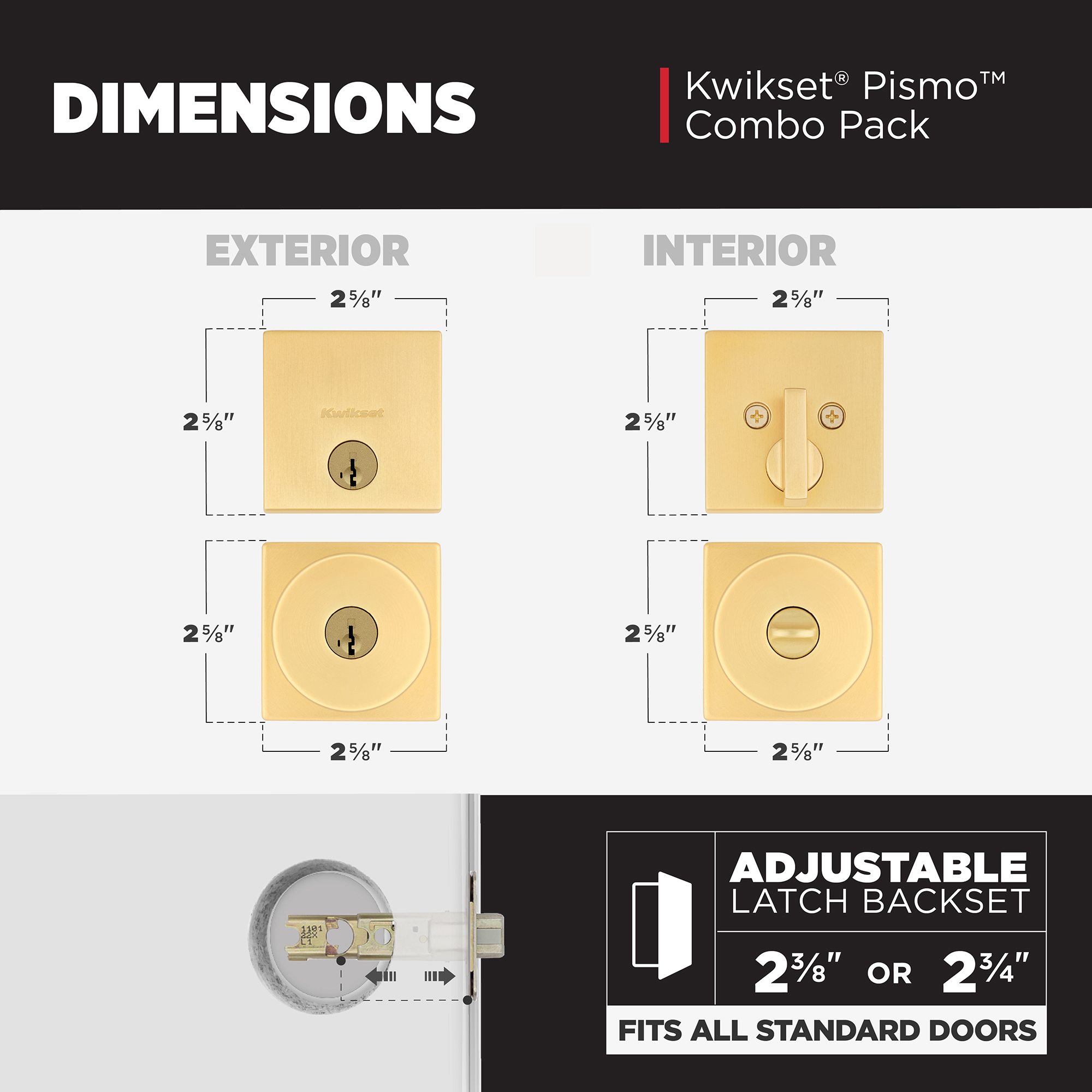 - Adjustable Latch: By sliding the adjustment pin during installation, the latch backset can be adjusted to either 2-3/8" or 2-3/4" in order to fit all standard door preparations