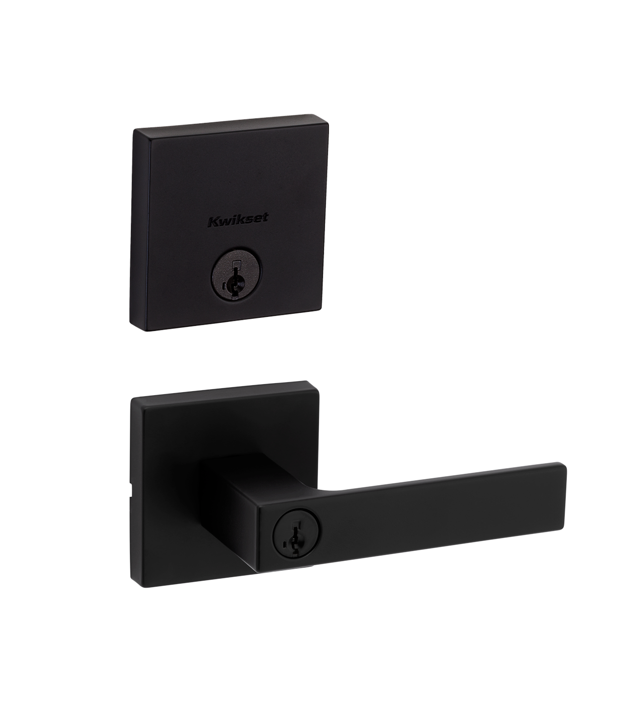 Singapore Keyed Entry Square Door Lever with Deadbolt Combo Pack in Matte Black featuring SmartKey Security