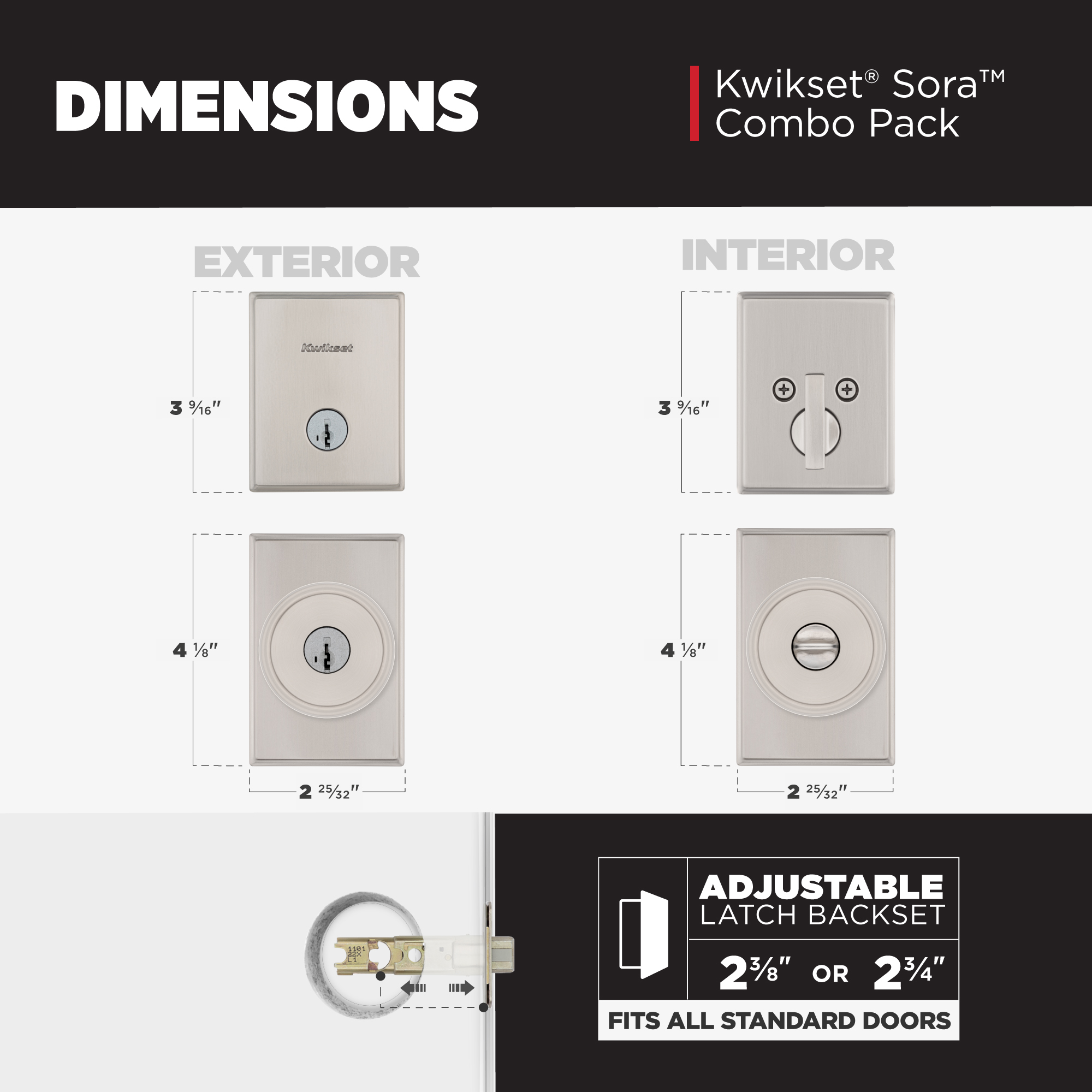 991 Sora Keyed Entry Knob and Single Cylinder Deadbolt Combo Pack featuring SmartKey Security™ in Satin Nickel
