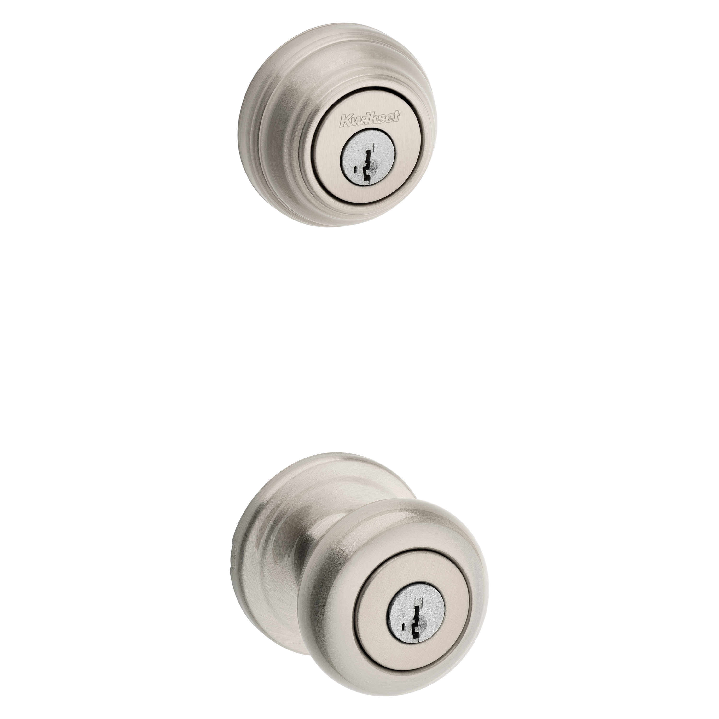 992 Juno Keyed Entry Knob and Double Cylinder Deadbolt Combo Pack featuring SmartKey Security™ in Satin Nickel