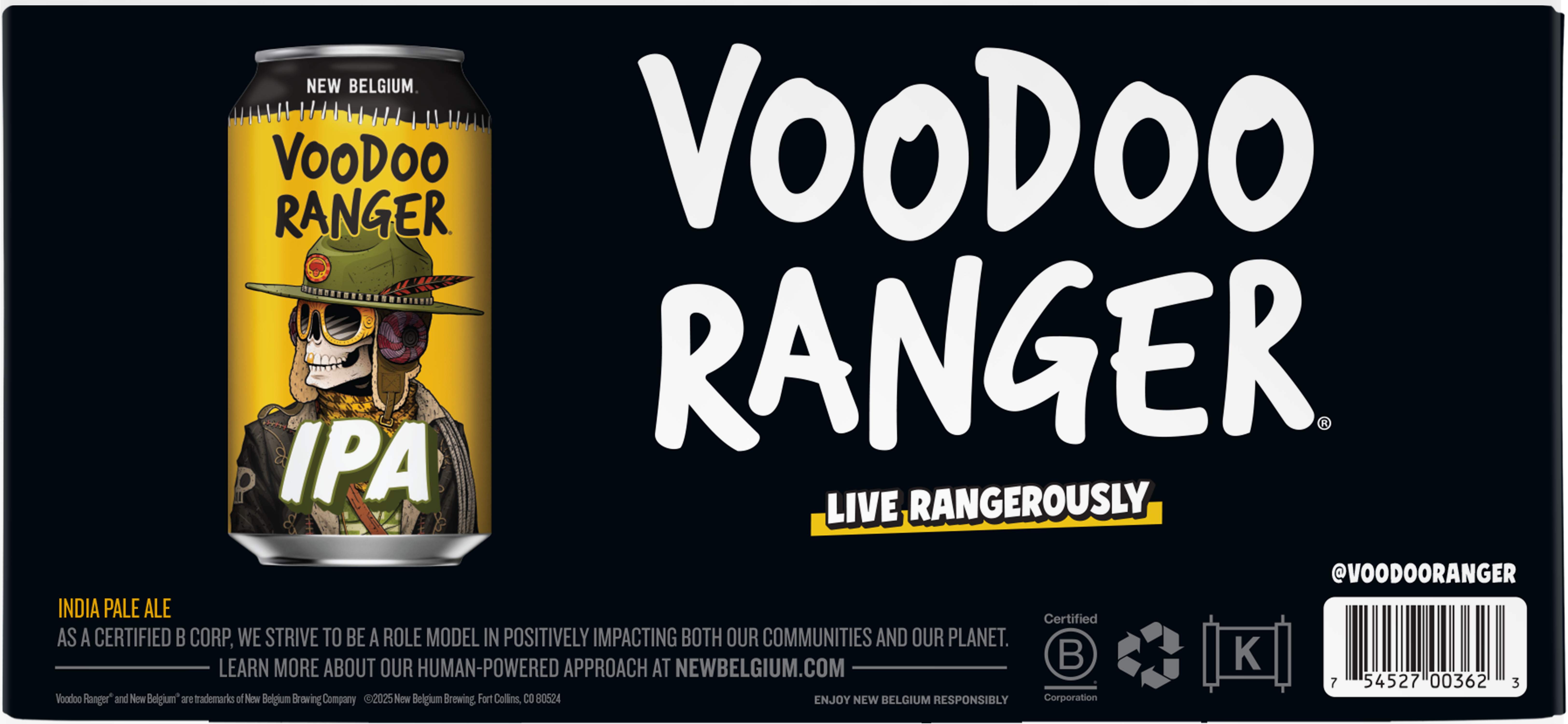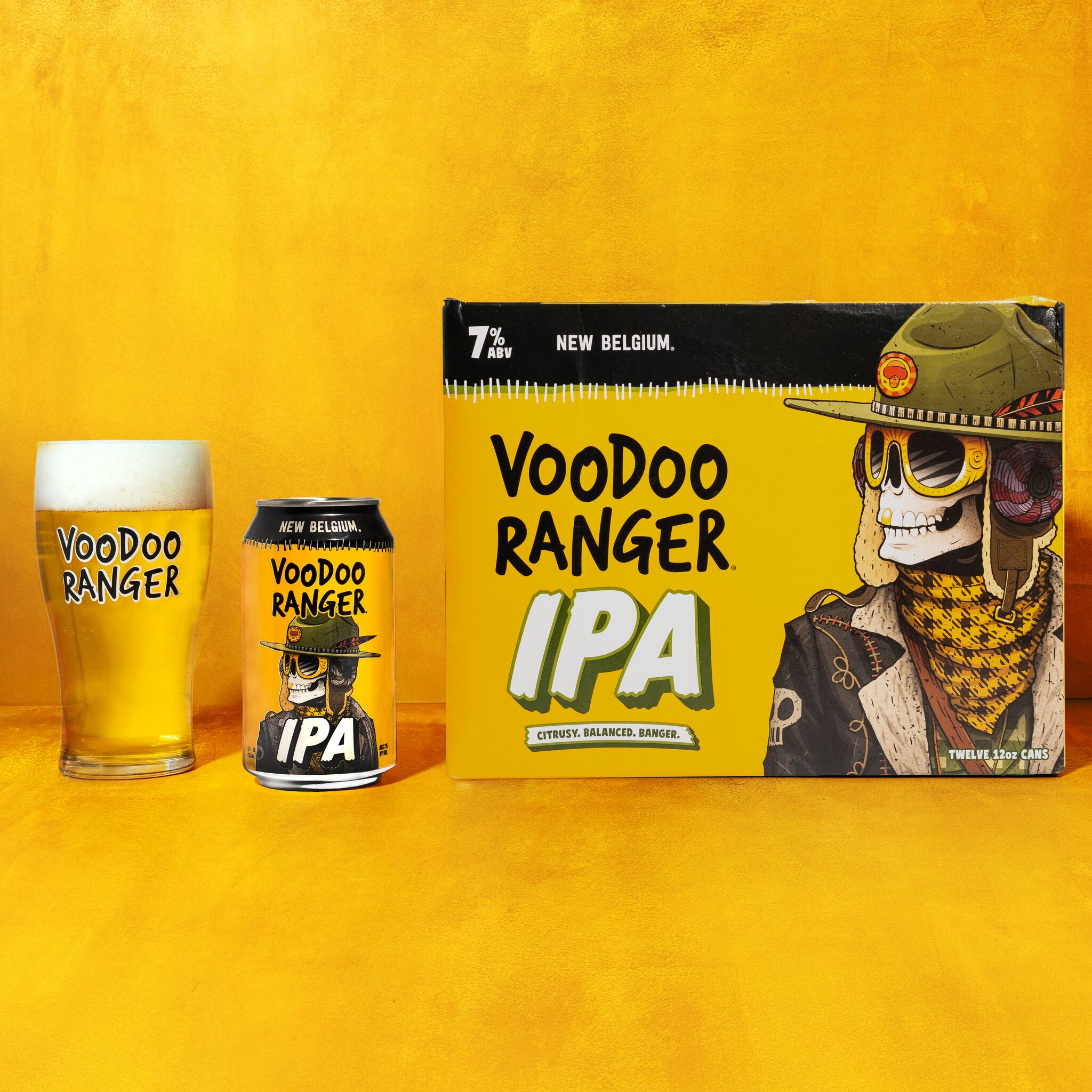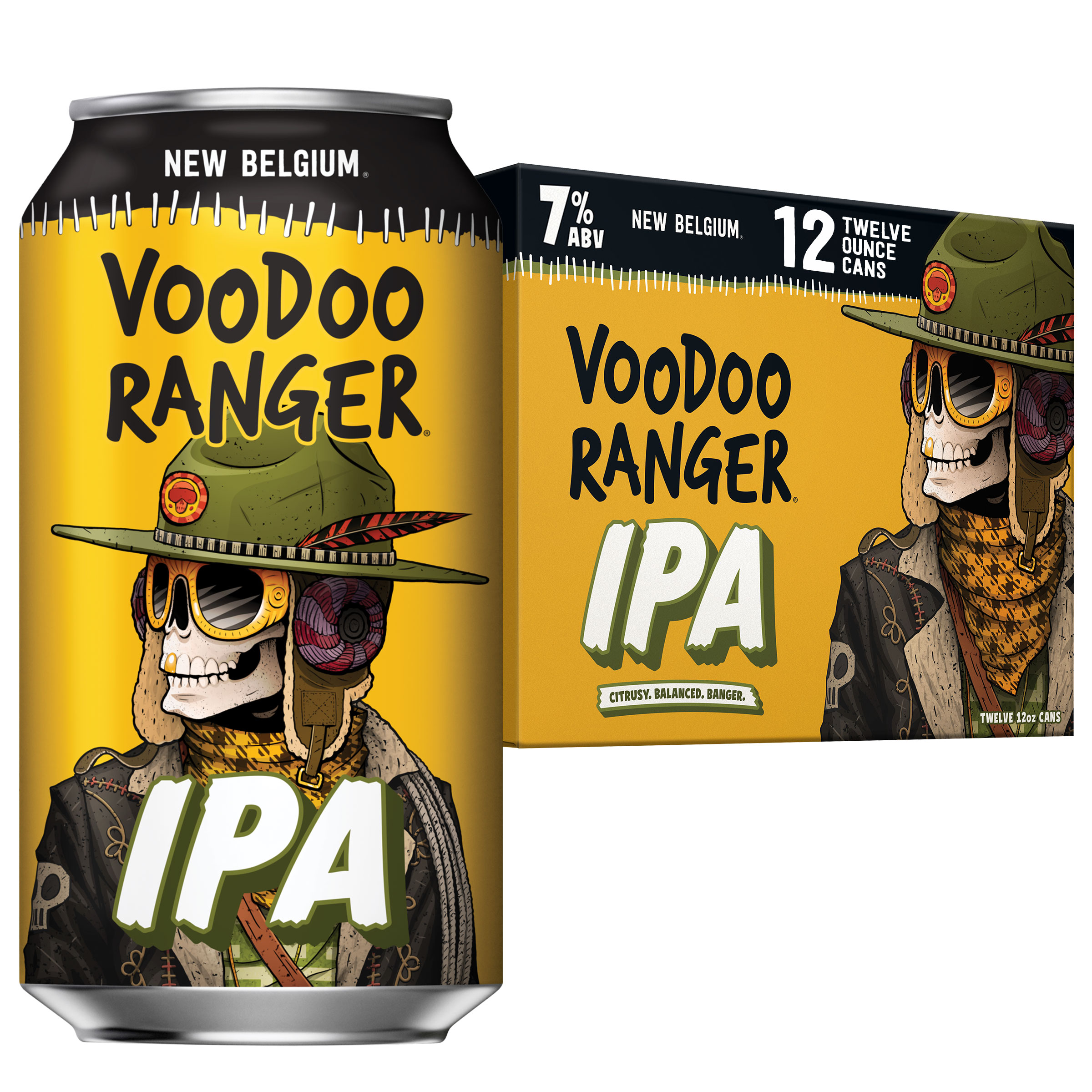 Voodoo Ranger IPA is a beer bursting with tropical aromas and fruit flavors from Mosaic and Amarillo hops. This juicy, golden IPA is perfectly bitter with a refreshing, sublime finish. It's a classic craft beer that's equal parts hoppy and bright. Crafted with precision by skilled brewers, Voodoo Ranger IPA is the embodiment of hoppy artistry. Its well-balanced profile caters to both seasoned hop-heads and newcomers to the IPA scene. Plus, it has a 7% ABV, making it a fan-favorite beer on the Voodoo Ranger roster. If you’re looking for innovative IPAs that are hop forward, bold, and occasionally hazy, the Voodoo Ranger fam has your back. Brewed by New Belgium Brewing, a certified B-Corp and proud member of 1% for the Planet. UOM is 12 fluid ounces. Count per pack: twelve pack, cans.