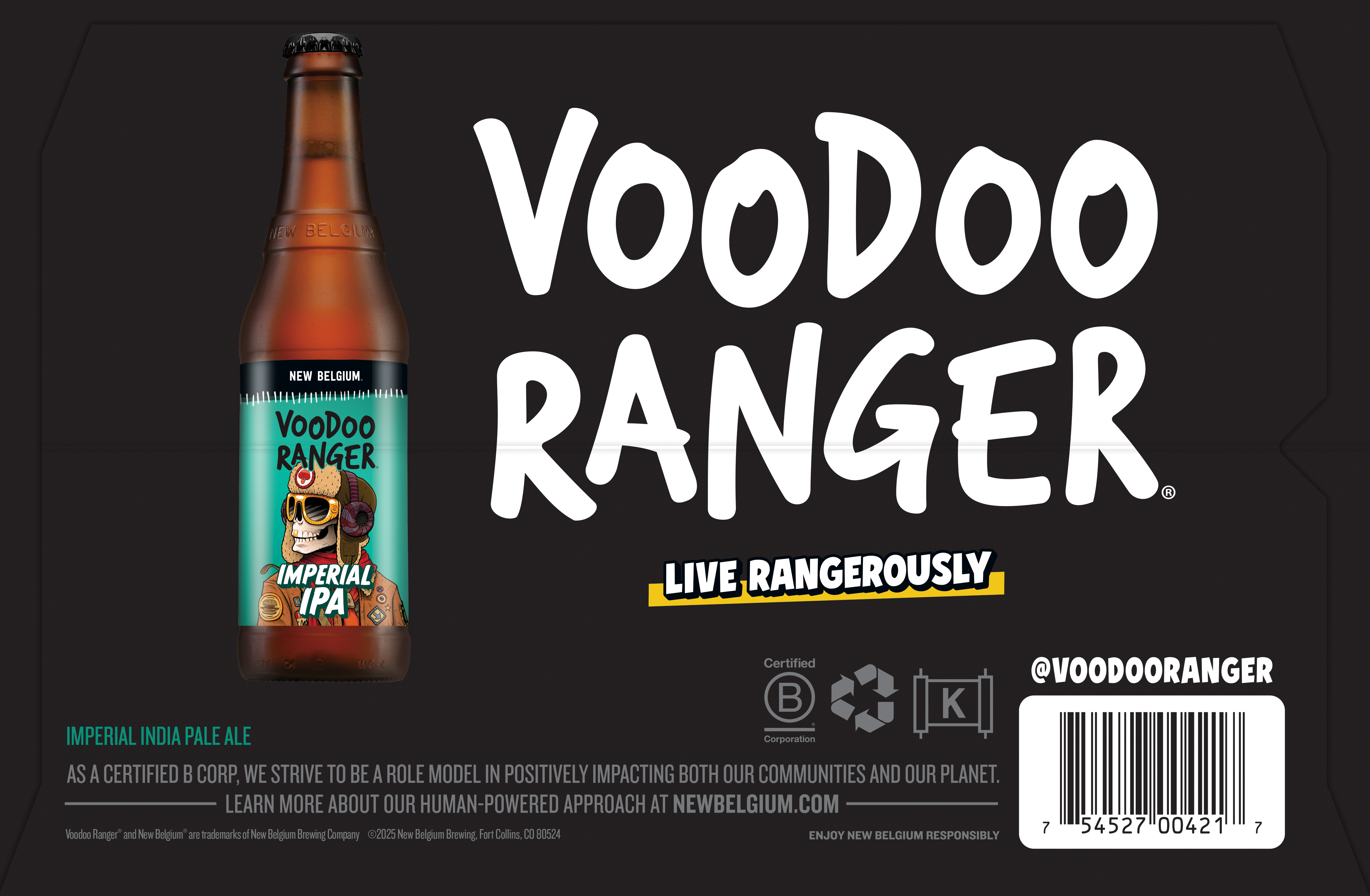 Voodoo Ranger Imperial IPA is a beer crafted with a rare blend of choice hops. It features an explosion of fresh-cut pine and citrus flavors. This premium craft beer is bold yet balanced, brewed with a mix of Delta, Bravo, Centennial, Cascade, Calypso, and Mosaic hops. It’s a rich, classic, and complex beer that’s likely to become your new go-to IPA. Plus, with a 9% ABV, Voodoo Ranger Imperial is basically IPA royalty. Brewed by New Belgium Brewing, a certified B-Corp and proud member of 1% for the Planet. If you’re looking for innovative IPAs that are hop forward, bold, and occasionally hazy, the Voodoo Ranger fam has your back. UOM is 12 fluid ounces. Count per pack: six pack, bottles.