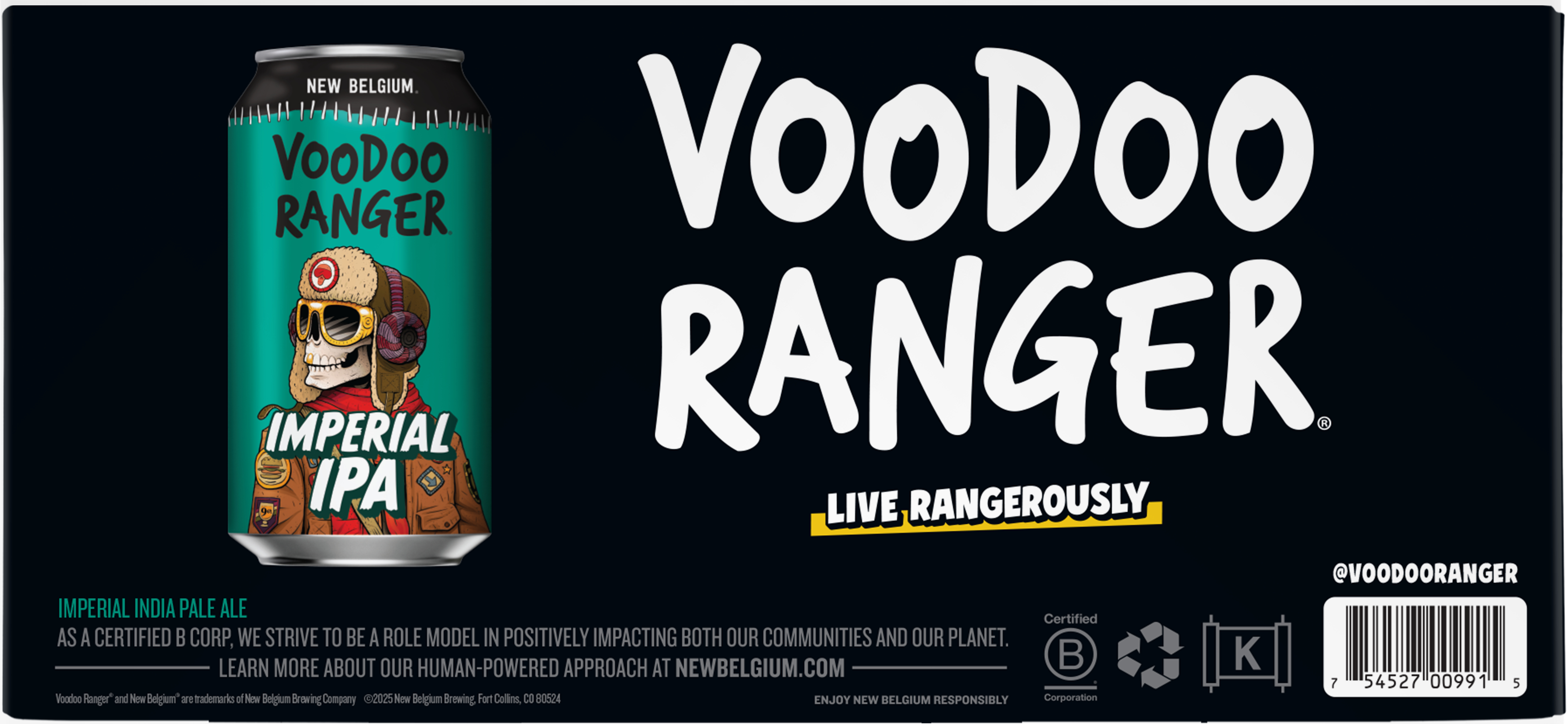 Voodoo Ranger Imperial IPA is a beer crafted with a rare blend of choice hops. It features an explosion of fresh-cut pine and citrus flavors. This premium craft beer is bold yet balanced, brewed with a mix of Delta, Bravo, Centennial, Cascade, Calypso, and Mosaic hops. It’s a rich, classic, and complex beer that’s likely to become your new go-to IPA. Plus, with a 9% ABV, Voodoo Ranger Imperial is basically IPA royalty. Brewed by New Belgium Brewing, a certified B-Corp and proud member of 1% for the Planet. If you’re looking for innovative IPAs that are hop forward, bold, and occasionally hazy, the Voodoo Ranger fam has your back. UOM is 12 fluid ounces. Count per pack: twelve pack, cans.