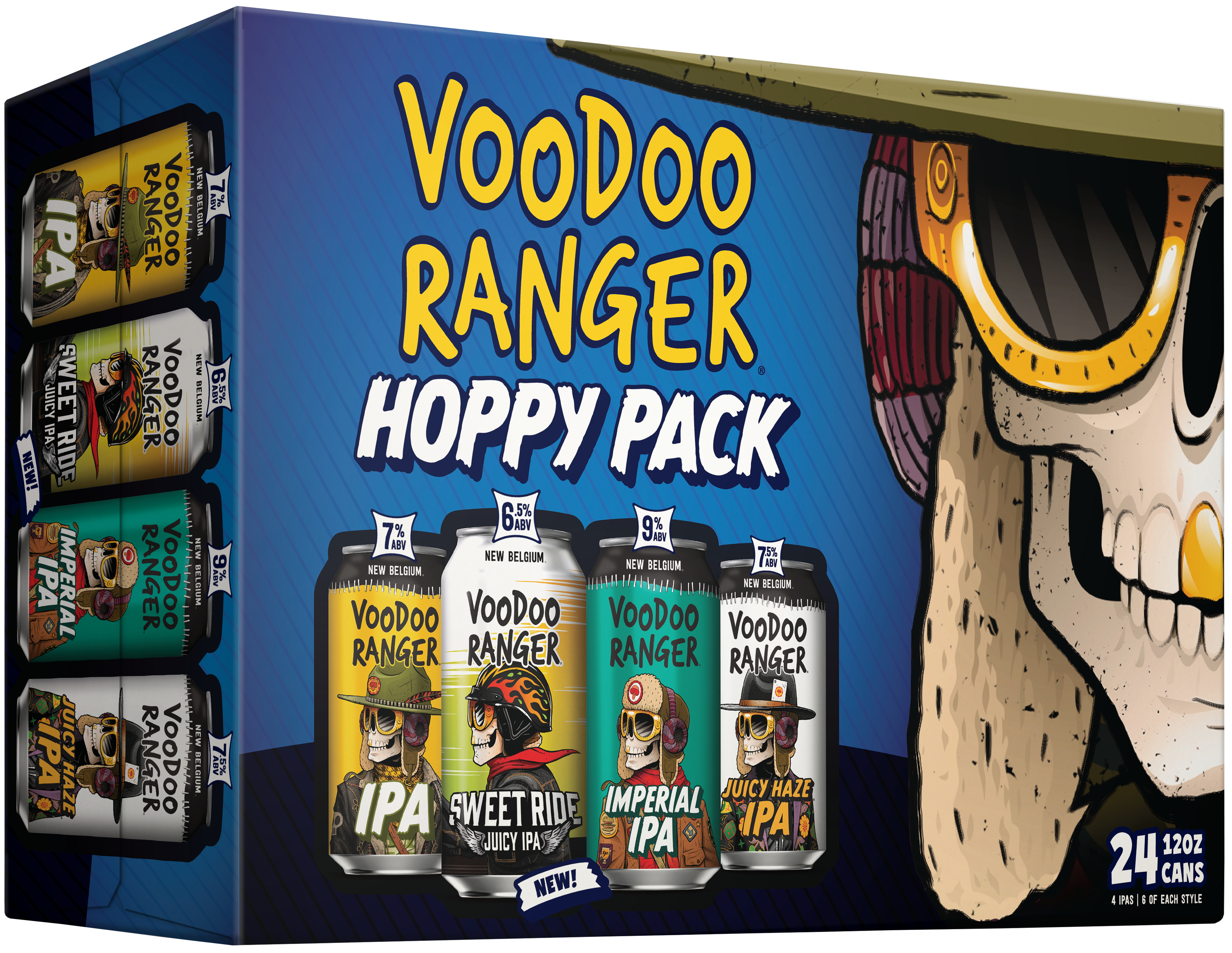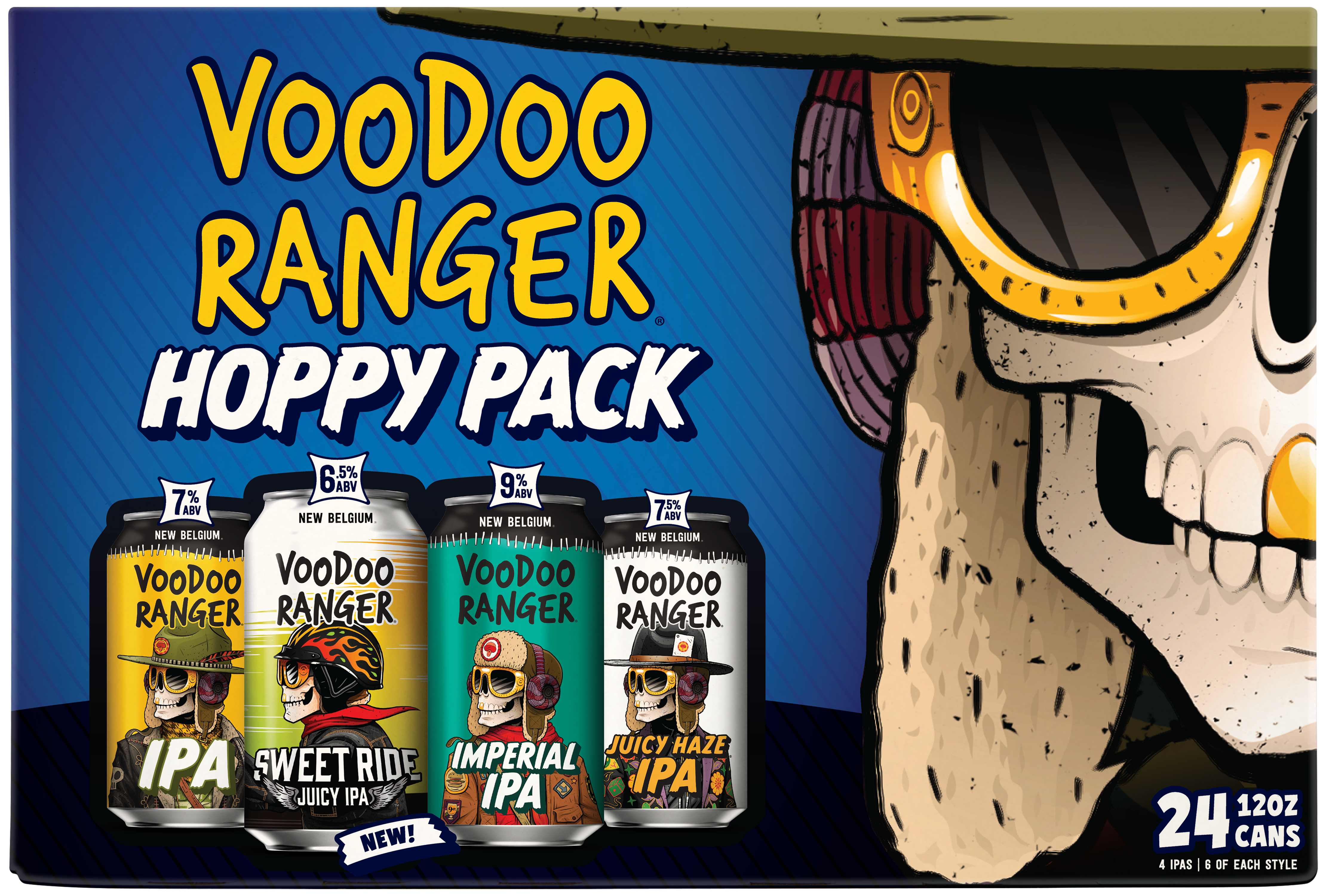 Voodoo Ranger Hoppy Variety Pack has a perfect mix of fan favorites and exclusive releases. These premium craft beers are innovative, hoppy and delicious. It's the perfect pack for those who seek a bit of adventure in their beer choices. Whether you're an IPA enthusiast, Voodoo Ranger die-hard, or just hop curious, there's something in this variety pack for you. Who knows, maybe you’ll even find your new favorite beer. Will it be a hazy IPA with fruit-forward flavors? There’s only one way to find out (aka drink up)! Please note, it’s possible that you may get a different Voodoo Ranger Variety pack than the one shown on the website if your store is transitioning from one variety pack to another. ABV varies. Brewed by New Belgium Brewing, a certified B-Corp and proud member of 1% for the Planet. UOM is 12 fluid ounces. Count per pack: twenty-four pack, cans.