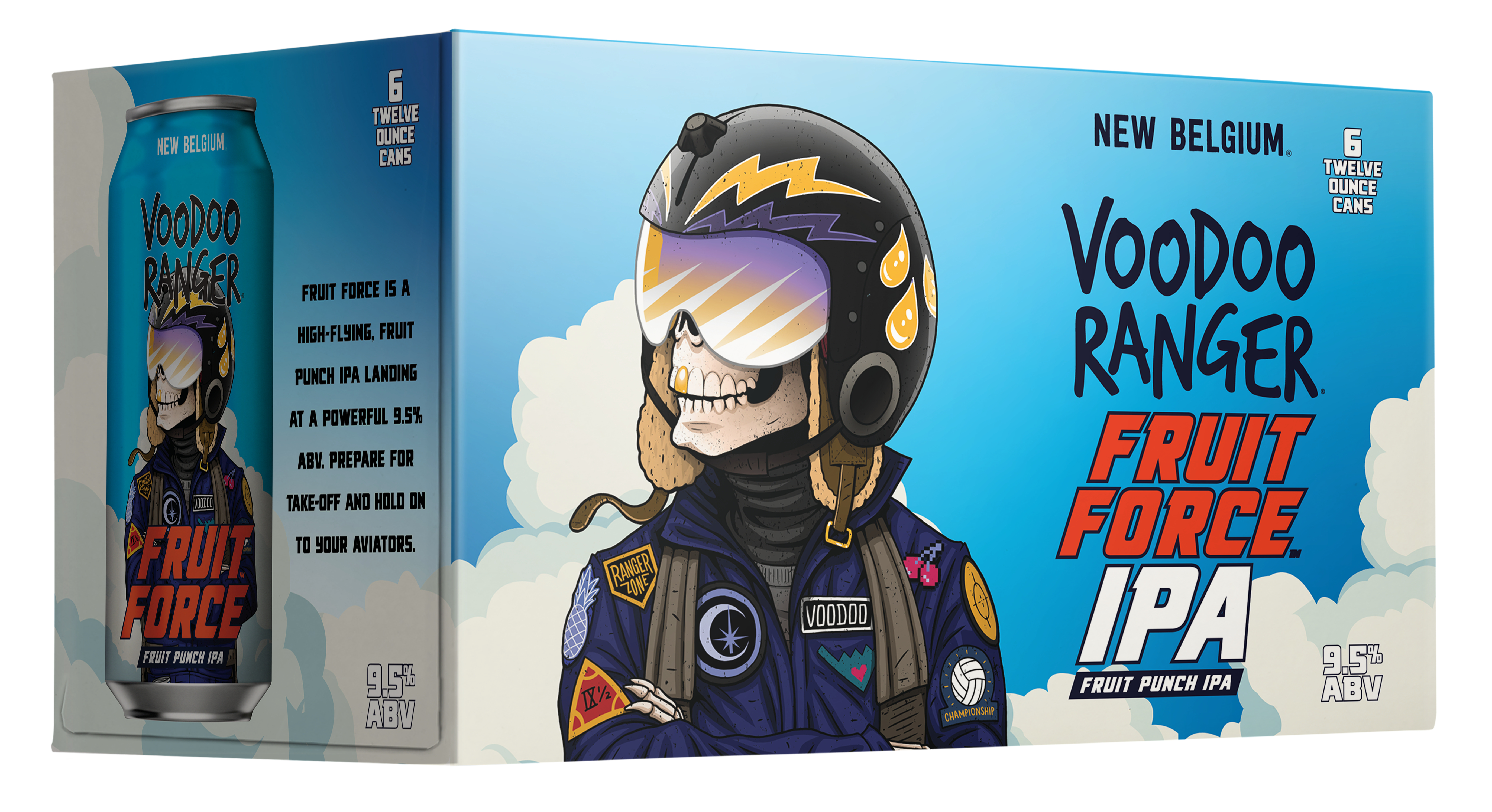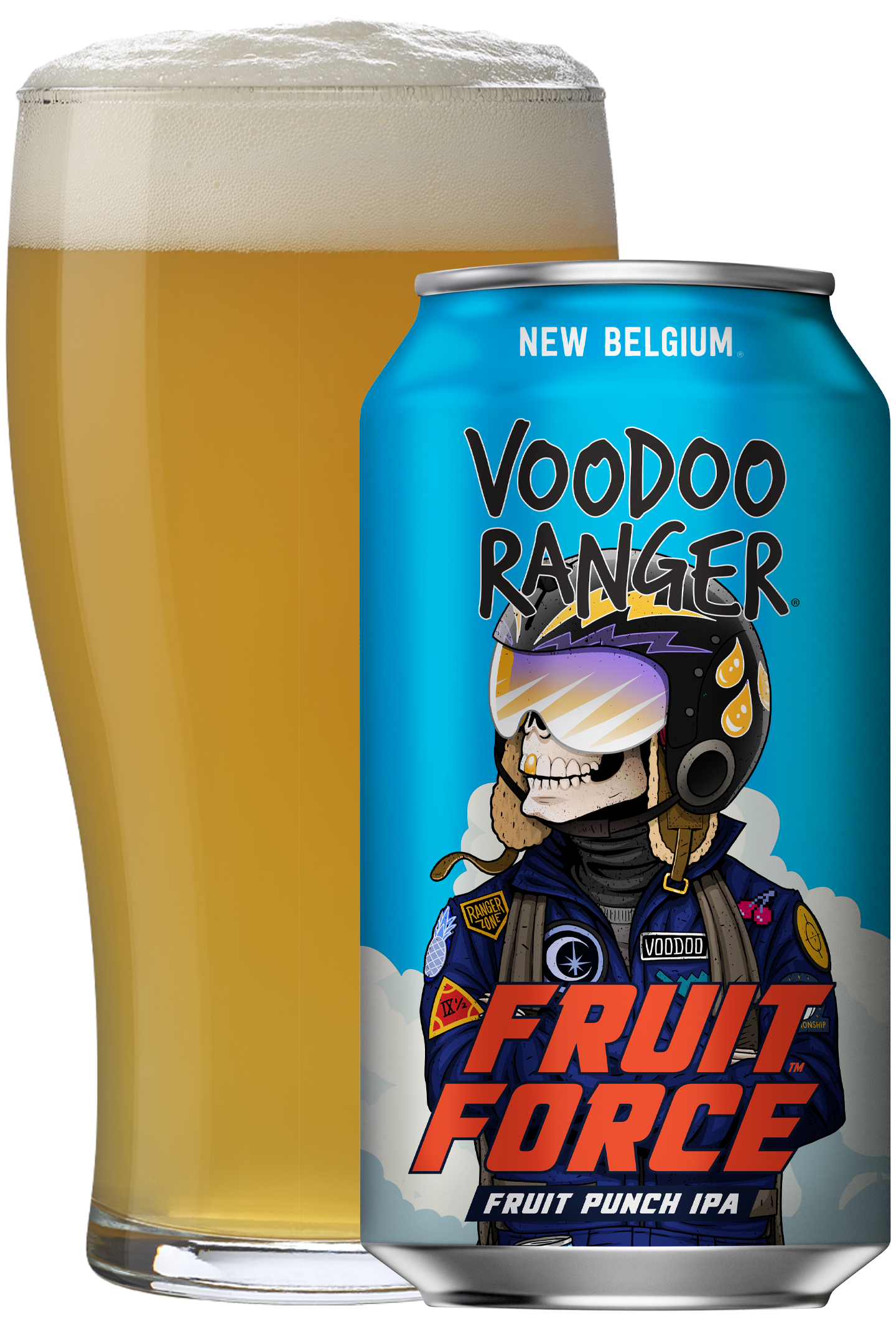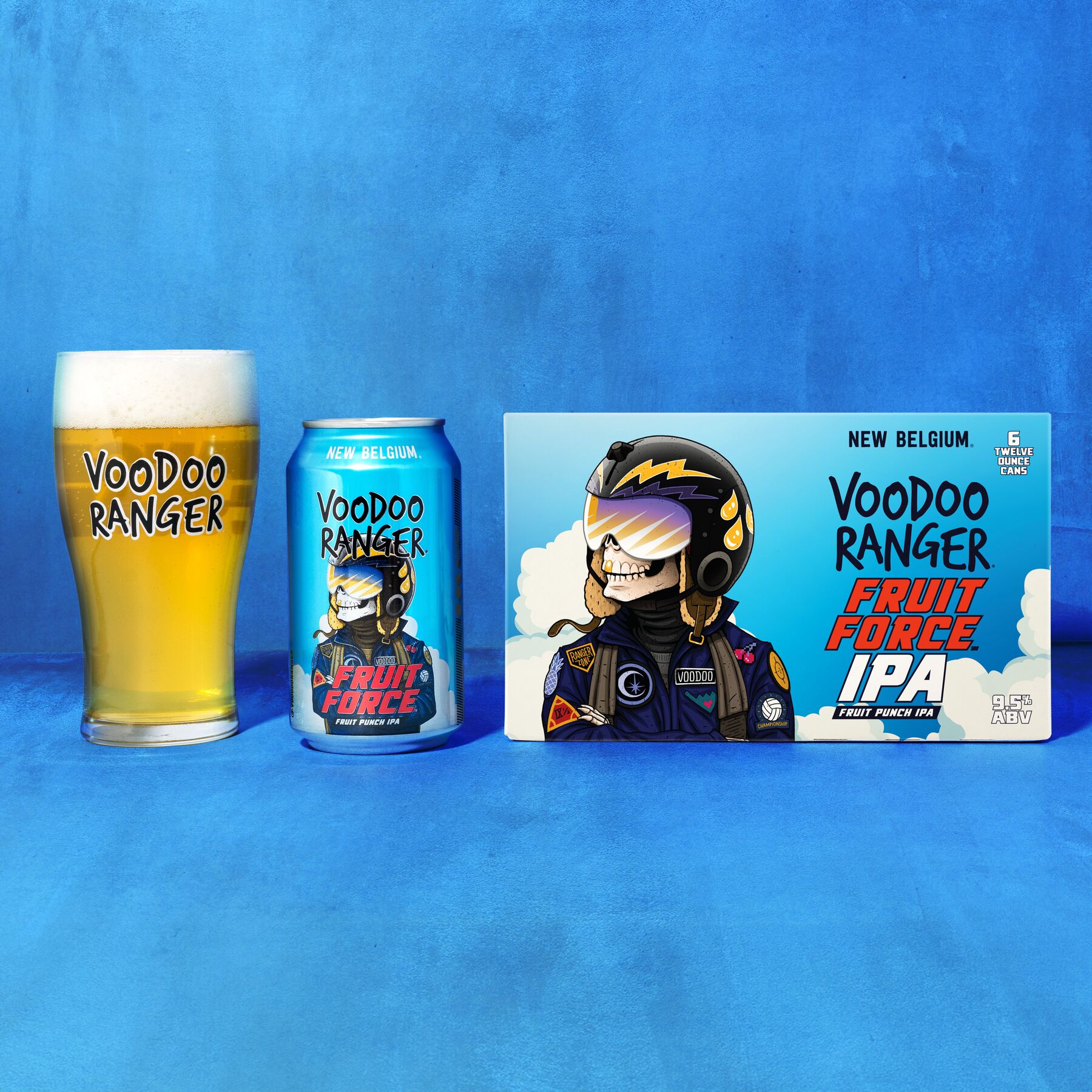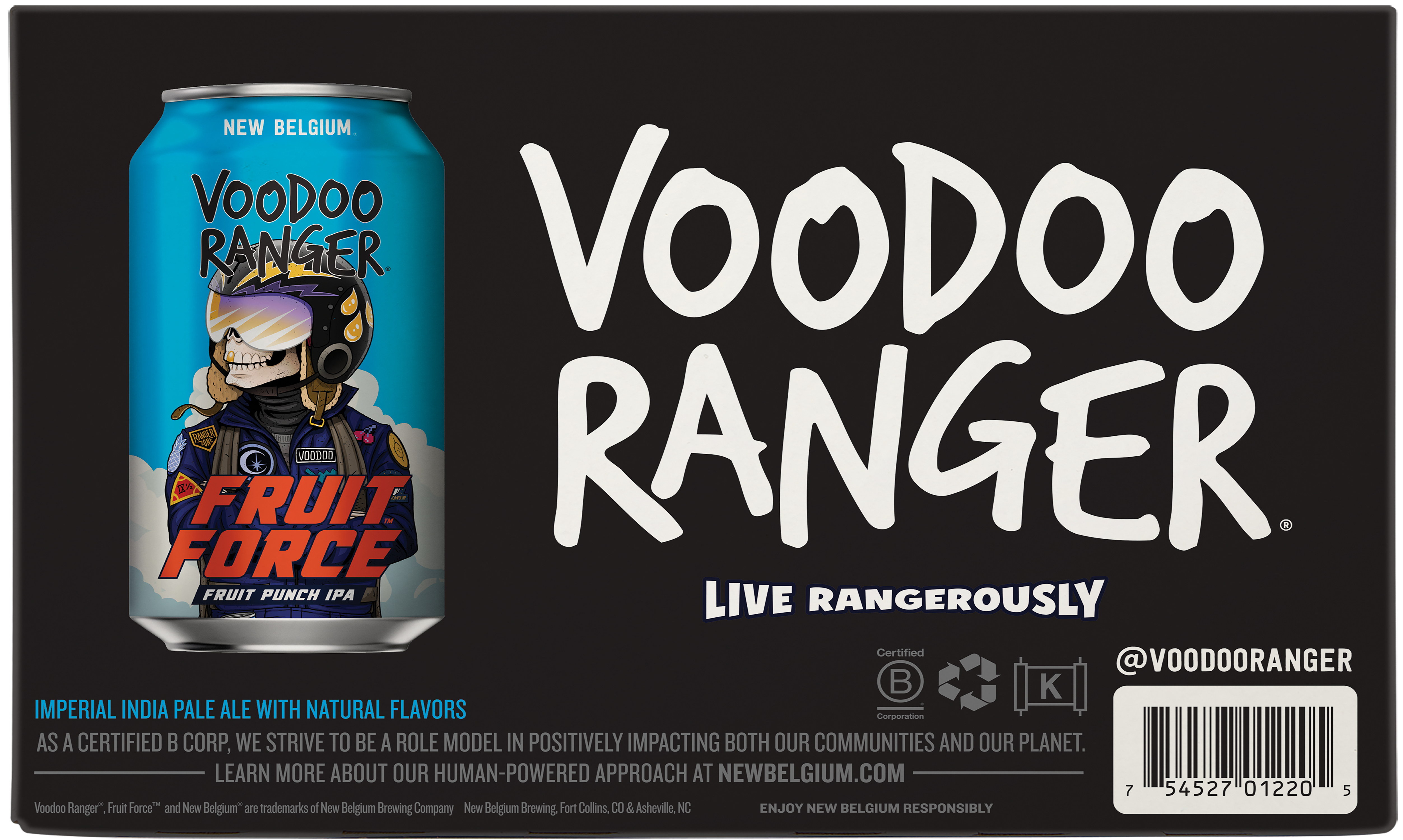 Voodoo Ranger Fruit Force is an American-style Hazy Imperial IPA with a fruit-forward hop aroma and flavor. This premium hoppy IPA has a soaring 9.5% ABV and finishes with an incredible, fresh fruit punch twist. The first sip also delivers a wave of juicy citrus and tropical fruit notes that are complemented by a subtle yet delicious haziness. Fruit Force boasts a lighter and brighter body compared to most other hazy IPAs, with just a hint of fruity sweetness. If you’re looking for innovative craft IPAs that are hop forward, bold, and occasionally hazy, the Voodoo Ranger fam has your back. Brewed by New Belgium Brewing, a certified B-Corp and proud member of 1% for the Planet. UOM is 12 fluid ounces. Count per pack: six pack cans.