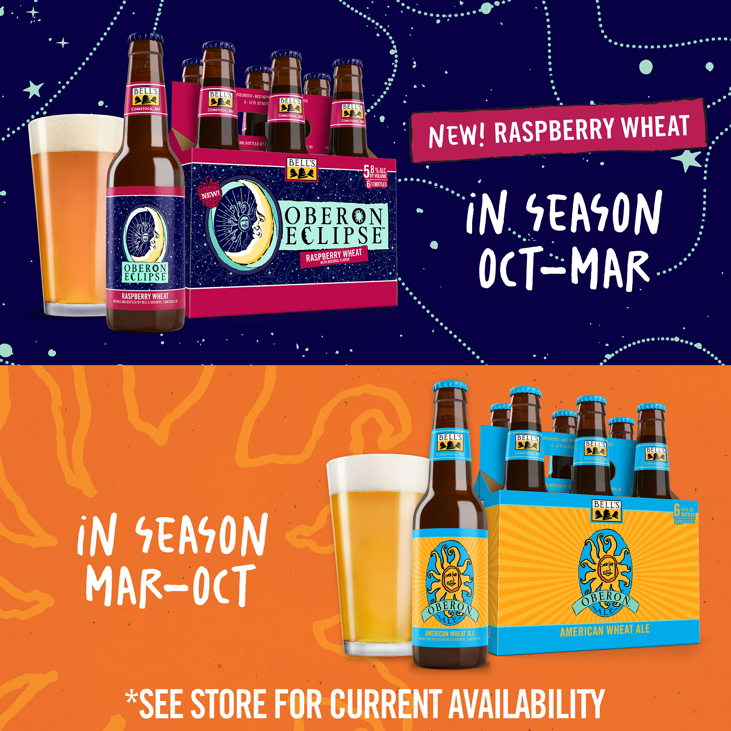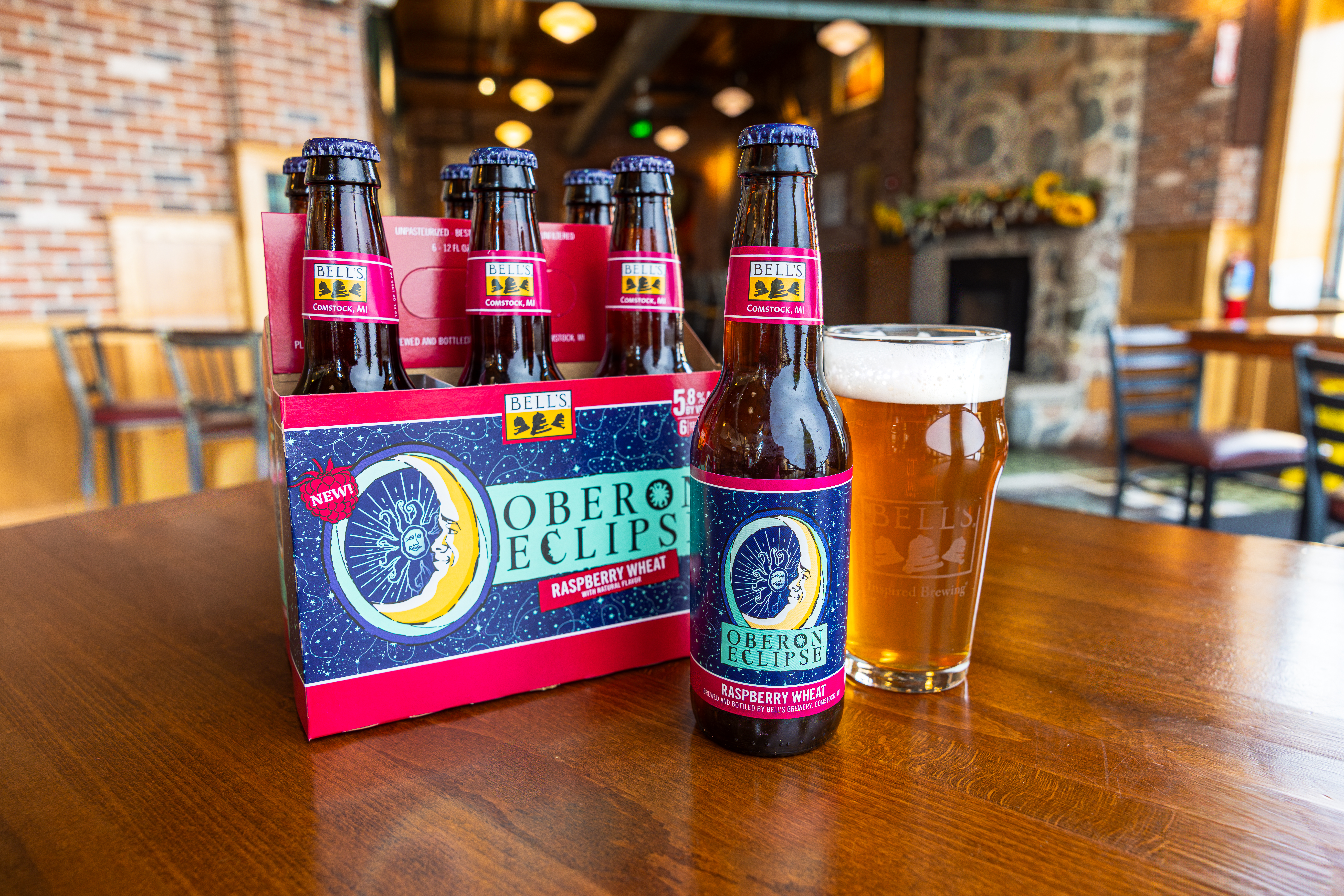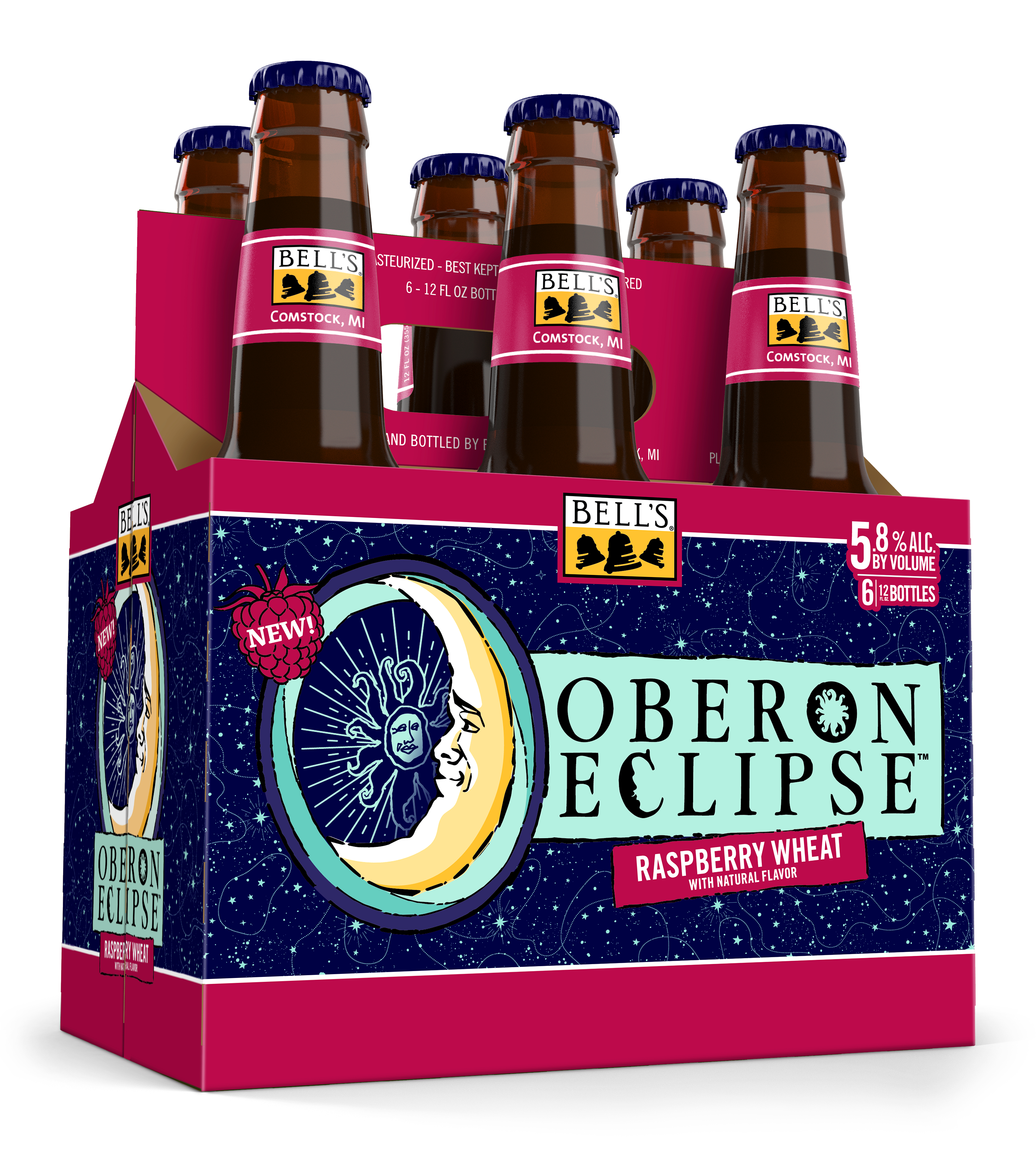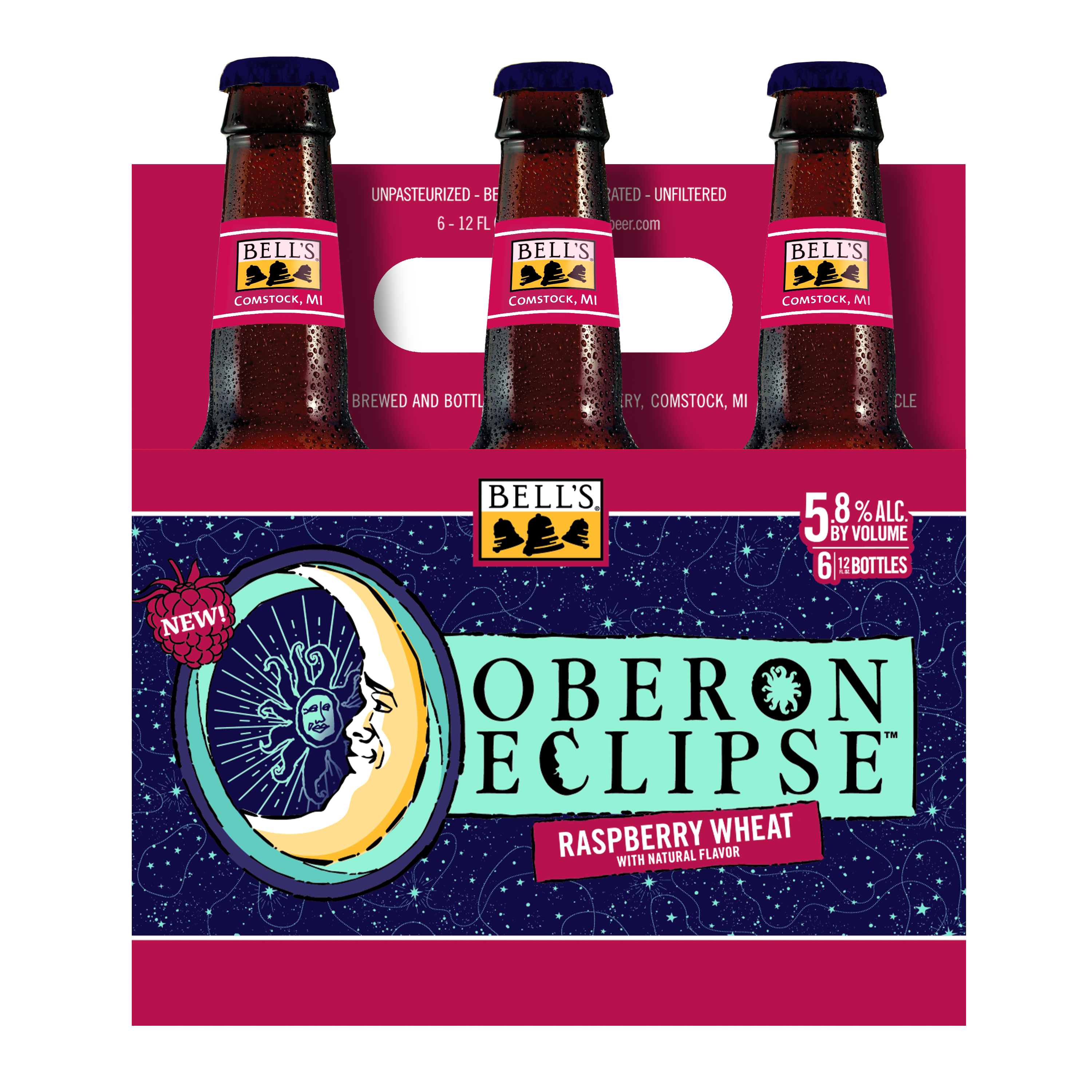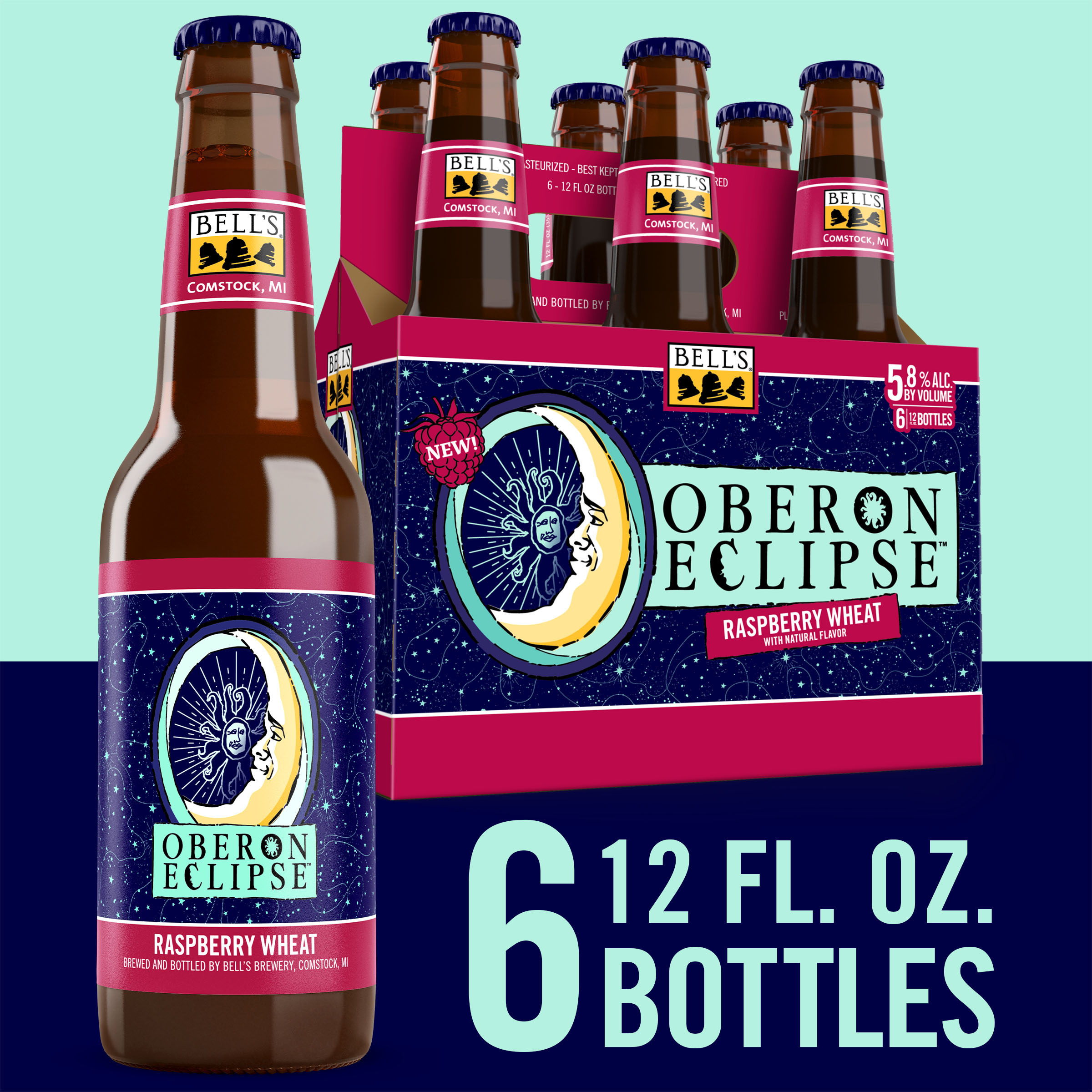 When the sun sets early, you've gotta make your own sunshine. Oberon Raspberry Eclipse is the latest incarnation of Bell’s Brewery’s Oberon family. A seasonal Raspberry Wheat Ale fermented with our signature house ale yeast, it contains subtle notes of bright raspberry that complement the wheat malt, giving it the perfect balance. Easy-drinking and refreshing, it's the perfect beer for cozy nights spent in good company. Shine on. 5.8% ABV. Brewed by Bell’s Brewing, which has been creating high quality craft beers in Michigan since 1985. UOM is 12 fluid ounces. Count per pack: six bottles. This release is seasonal, so get sipping while you can! Please note, it’s possible that you may get a different beer than the one shown on the website if your store is transitioning from Oberon Eclipse to Oberon.