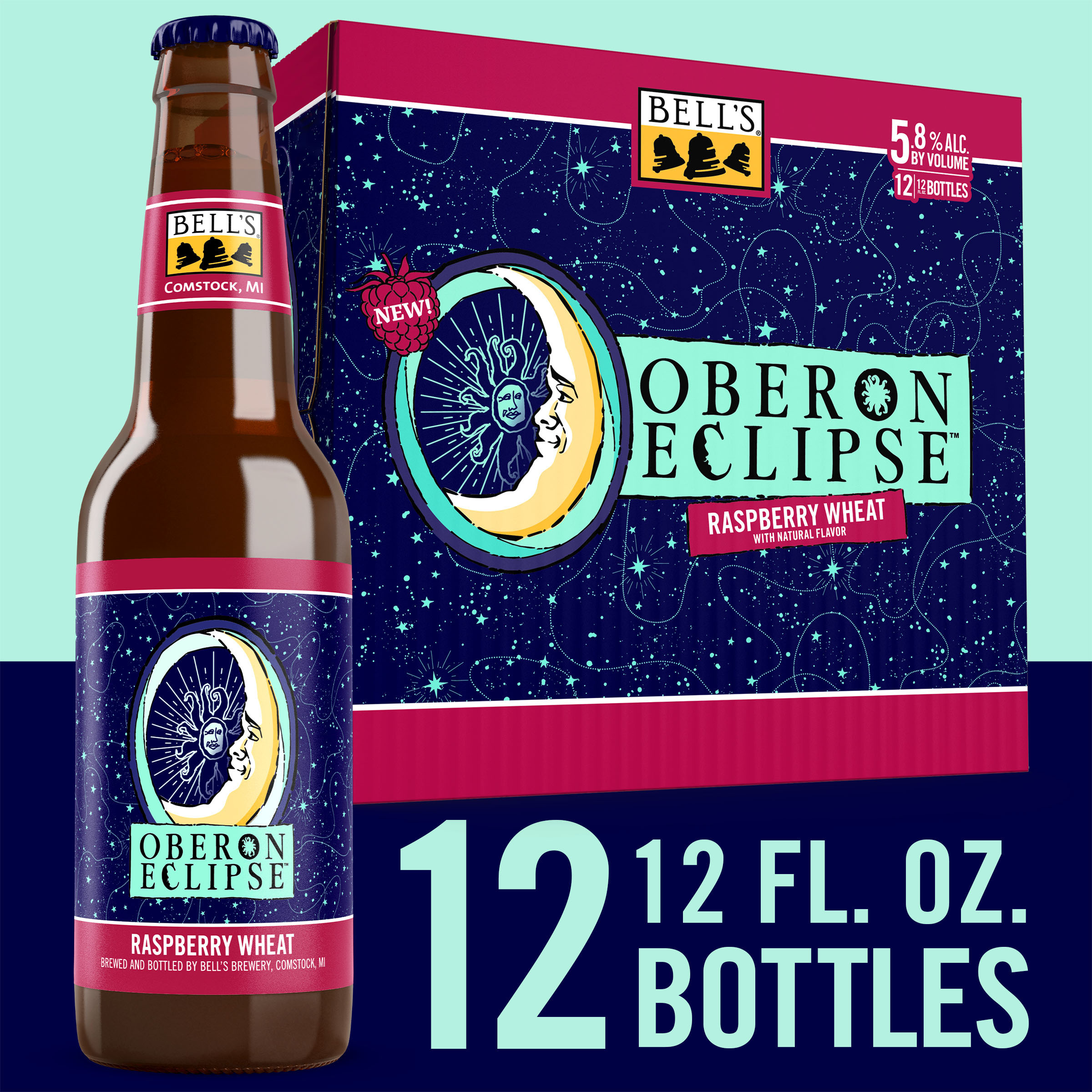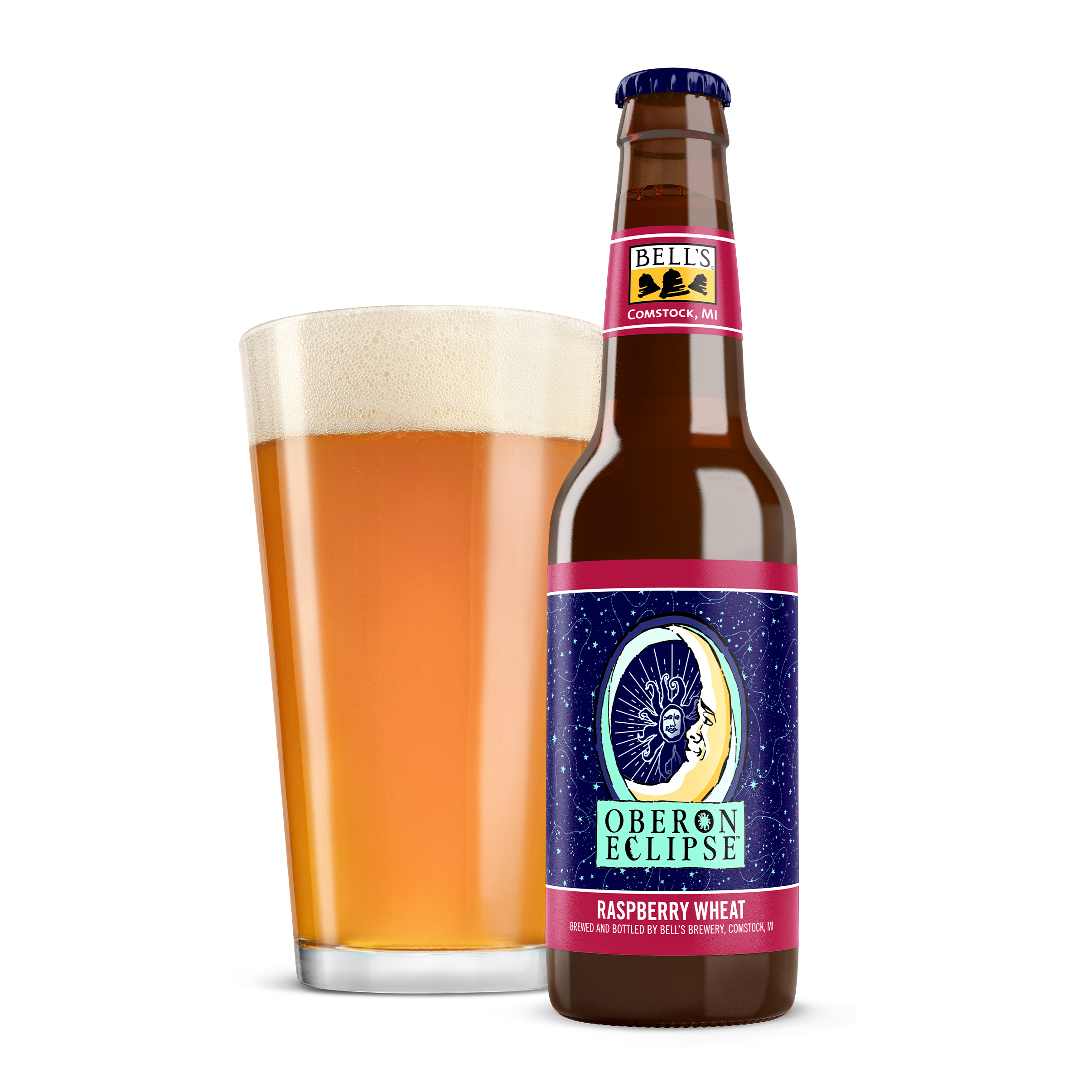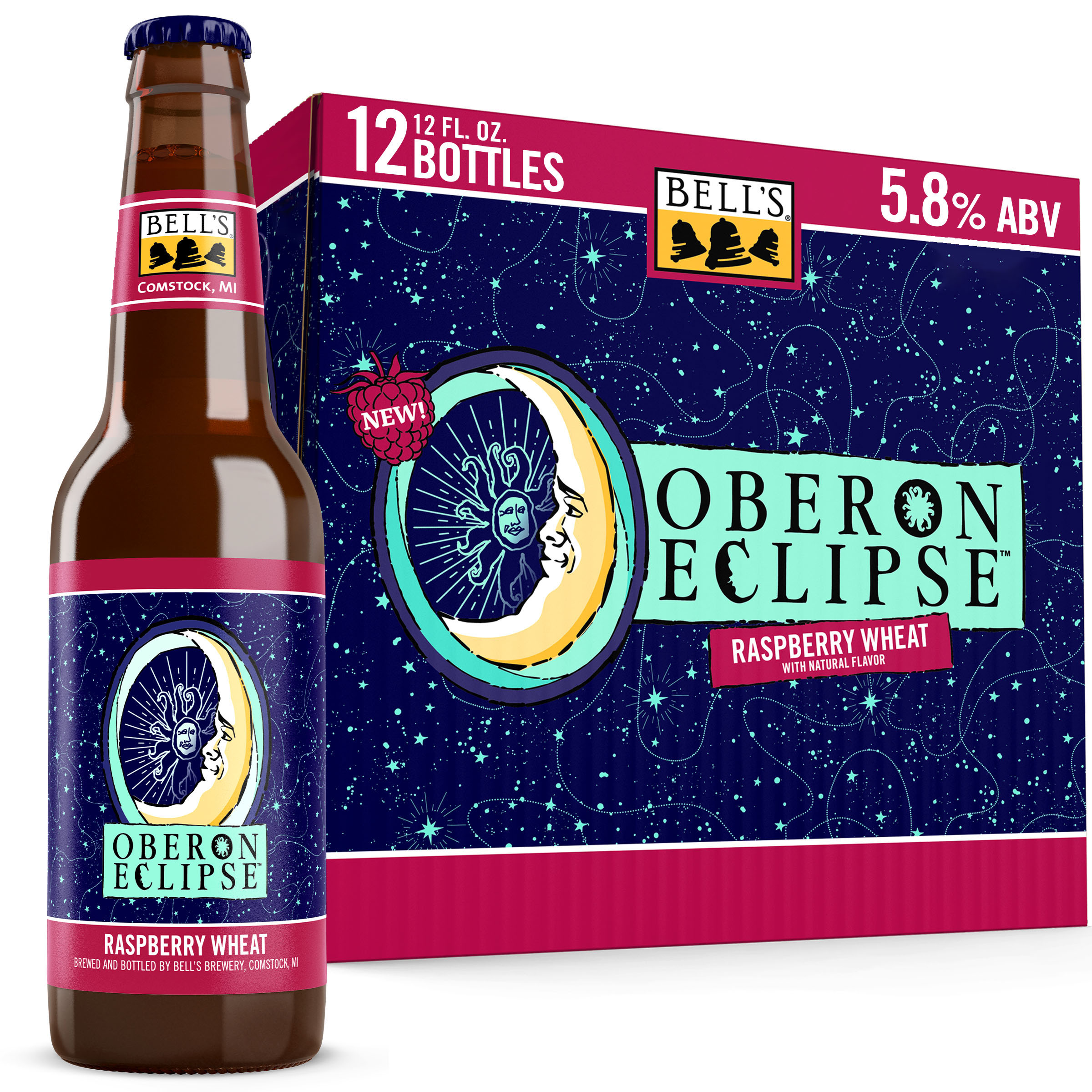 When the sun sets early, you've gotta make your own sunshine. Oberon Raspberry Eclipse is the latest incarnation of Bell’s Brewery’s Oberon family. A seasonal Raspberry Wheat Ale fermented with our signature house ale yeast, it contains subtle notes of bright raspberry that complement the wheat malt, giving it the perfect balance. Easy-drinking and refreshing, it's the perfect beer for cozy nights spent in good company. Shine on. 5.8% ABV. Brewed by Bell’s Brewing, which has been creating high quality craft beers in Michigan since 1985. UOM is 12 fluid ounces. Count per pack: twelve bottles. This release is seasonal, so get sipping while you can! Please note, it’s possible that you may get a different beer than the one shown on the website if your store is transitioning from Oberon Eclipse to Oberon.